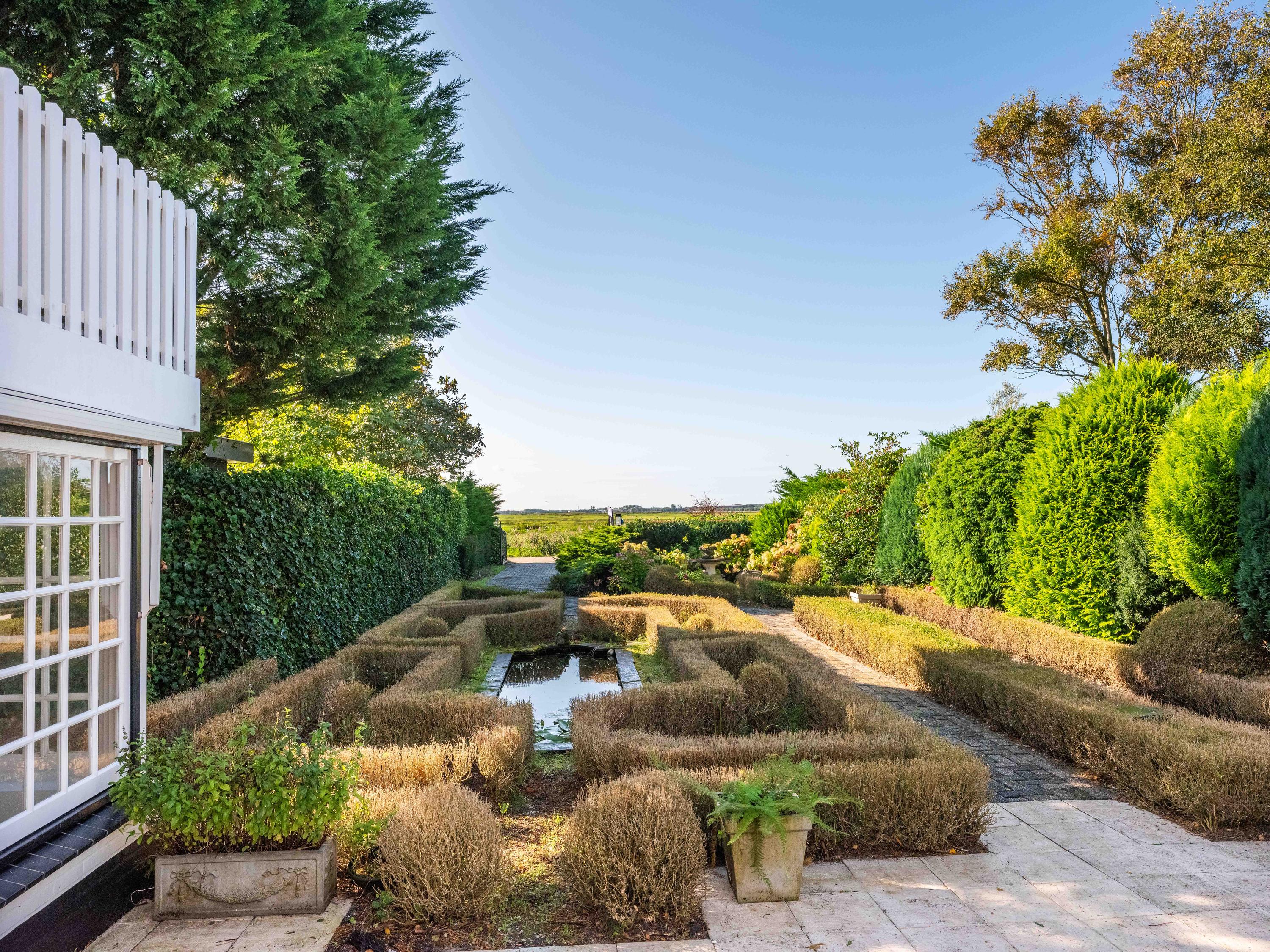 Doordat de woning helemaal achter op het perceel staat is de voortuin zeer royaal te noemen en biedt deze verassend veel privacy. We vinden er een heerlijk terras gelegen op het zuid/westen, waardoor er in de zomermaanden tot laat van de zon en de zonsondergang genoten kan worden. Voor op het perceel is parkeergelegenheid voor meerdere auto's en het geheel wordt afgesloten met een elektrische poort.