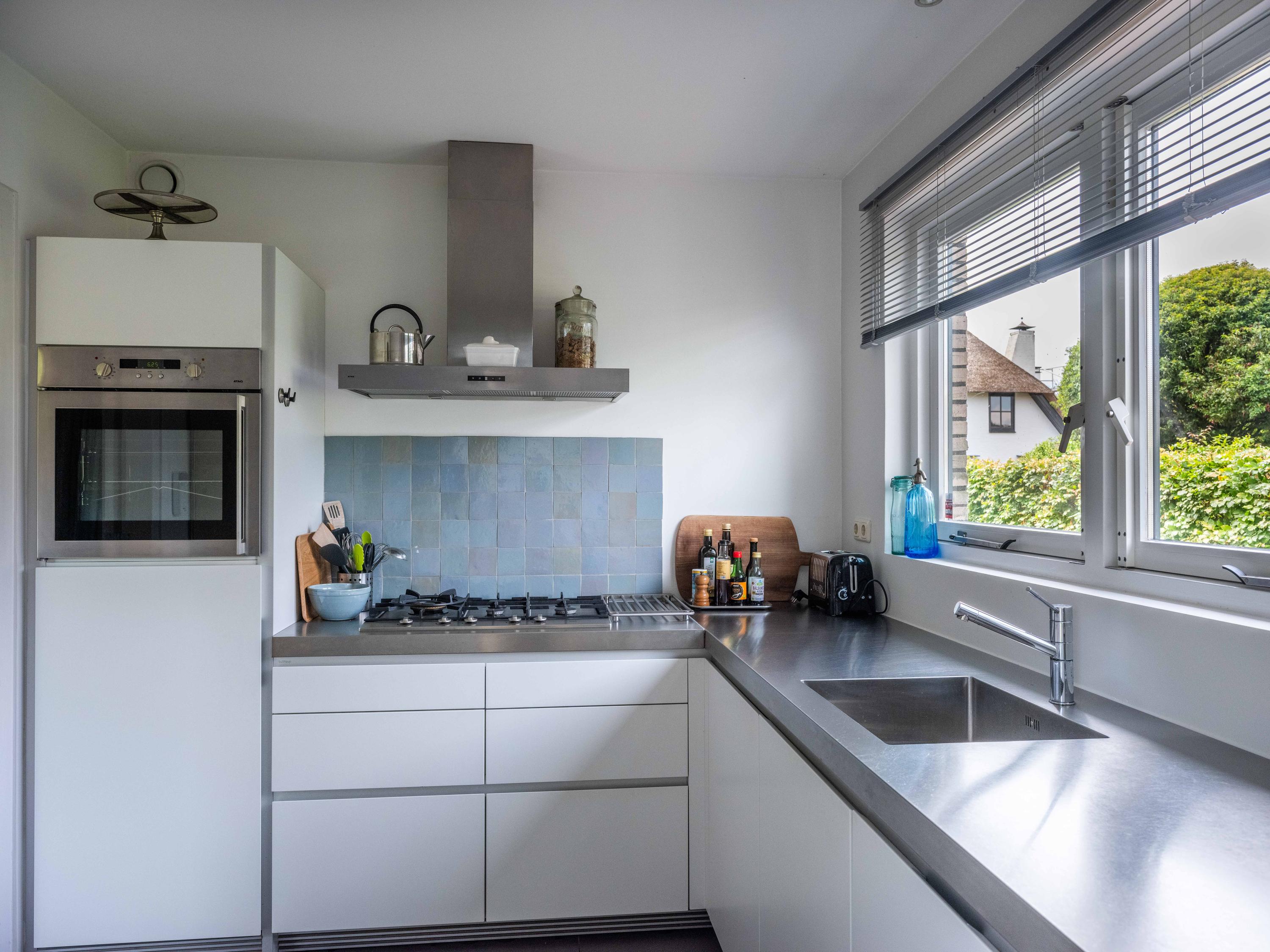 De Bulthaup keuken is uitgerust met een Atag oven, 5-pits gasfornuis, vaatwasser en koelkast. Via een tussenhal met toegang tot de tuin bereikt u een grote berging, voorheen een garage. Deze is voorzien van een water en elektra aansluiting.