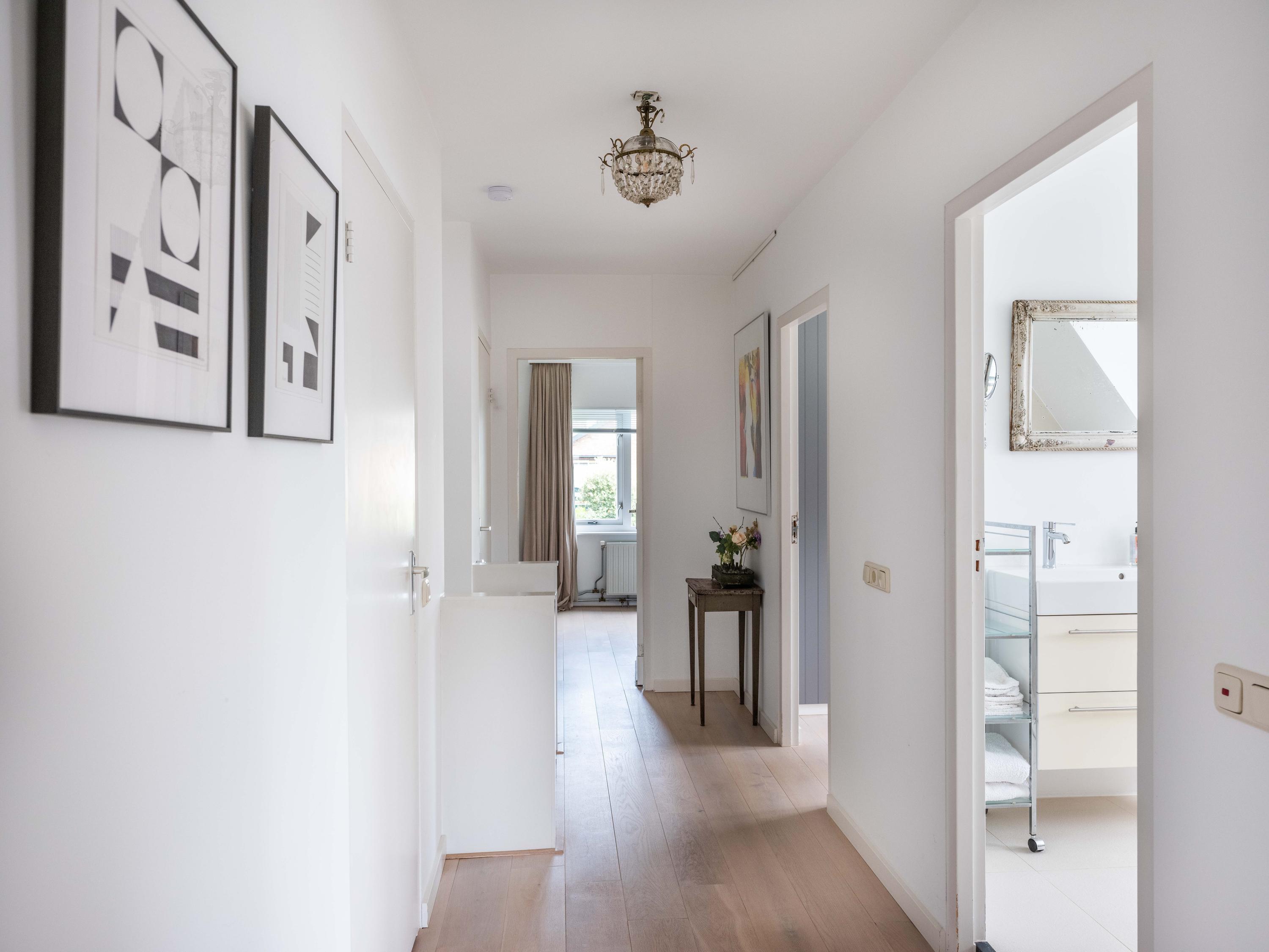 Op de eerste verdieping zijn twee ruime slaapkamers (waarvan één met airco) en een derde, kleinere slaapkamer. De badkamer heeft een dubbele wastafel, ligbad en inloopdouche. Op deze verdieping vindt u ook een ruim toilet en de was-/droogaansluiting. Een vlizotrap leidt naar de zolder die dient als bergruimte en waar de airco en ventilatie-installatie zich bevinden.