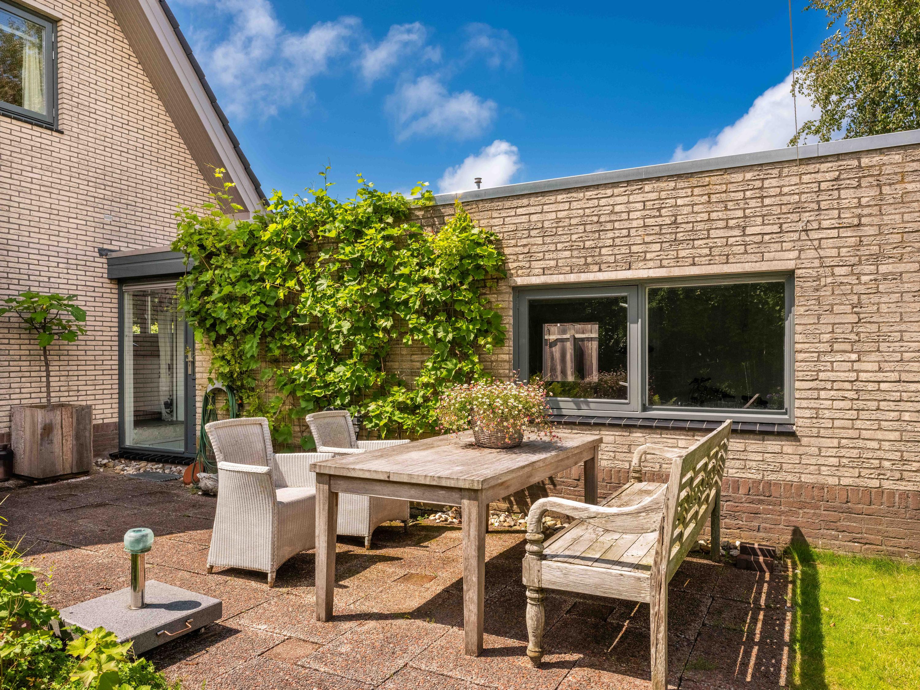 De grote zonovergoten tuin achter het huis, met diverse terrassen en veel privacy, maakt dit huis compleet.
