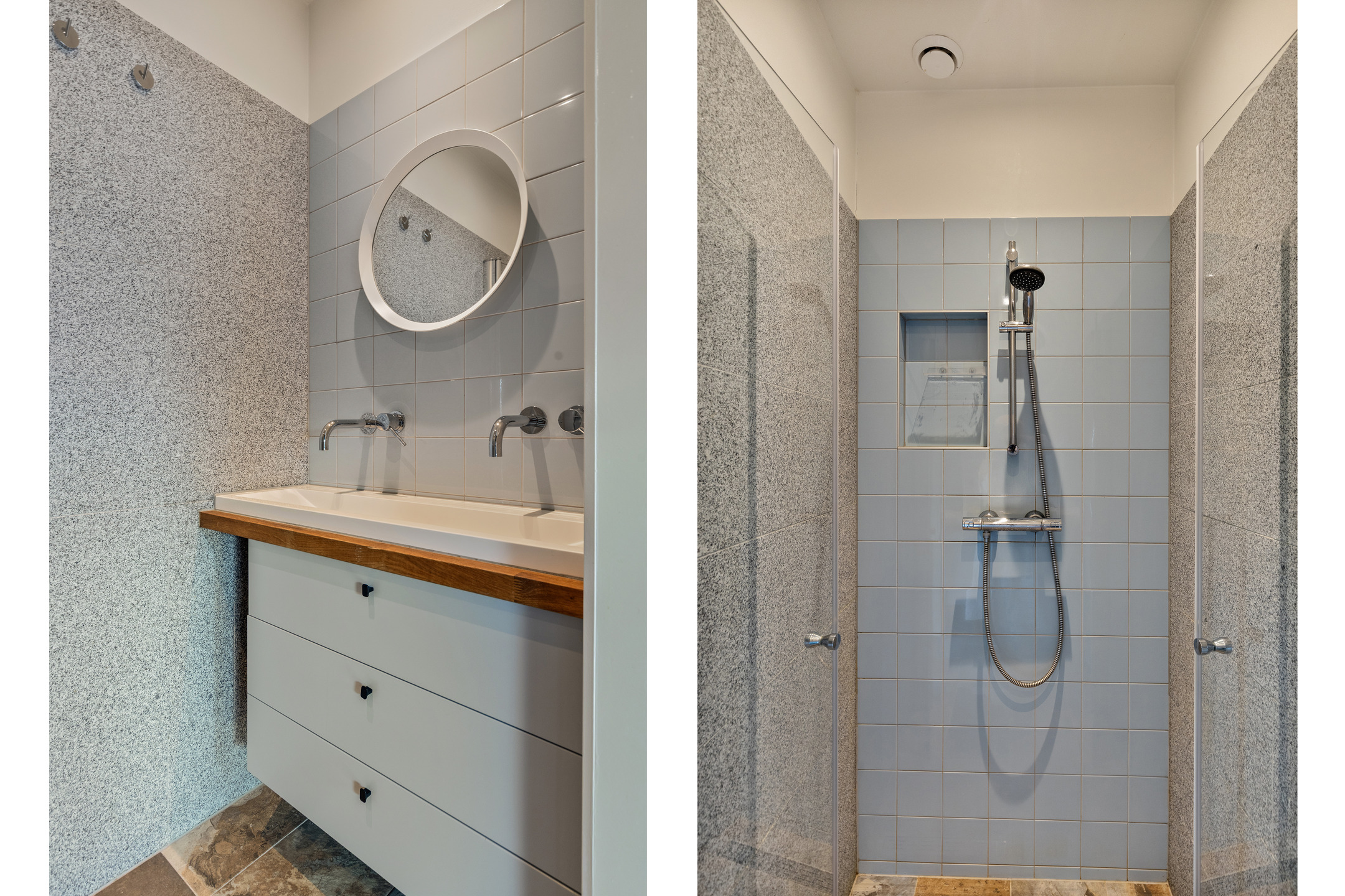 Slaapkamer 3 is aan de voorzijde gelegen, voorzien van twee Velux dakramen en een vaste kast met opstelplaats voor de cv-ketel. Deze kamer beschikt tevens over een eigen badkamer met inloopdouche en wastafelmeubel.