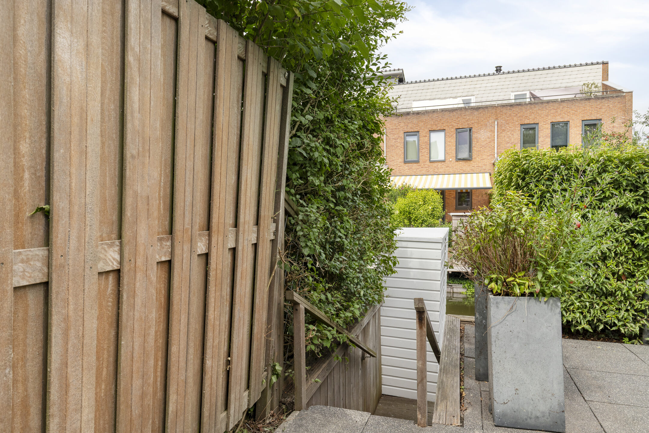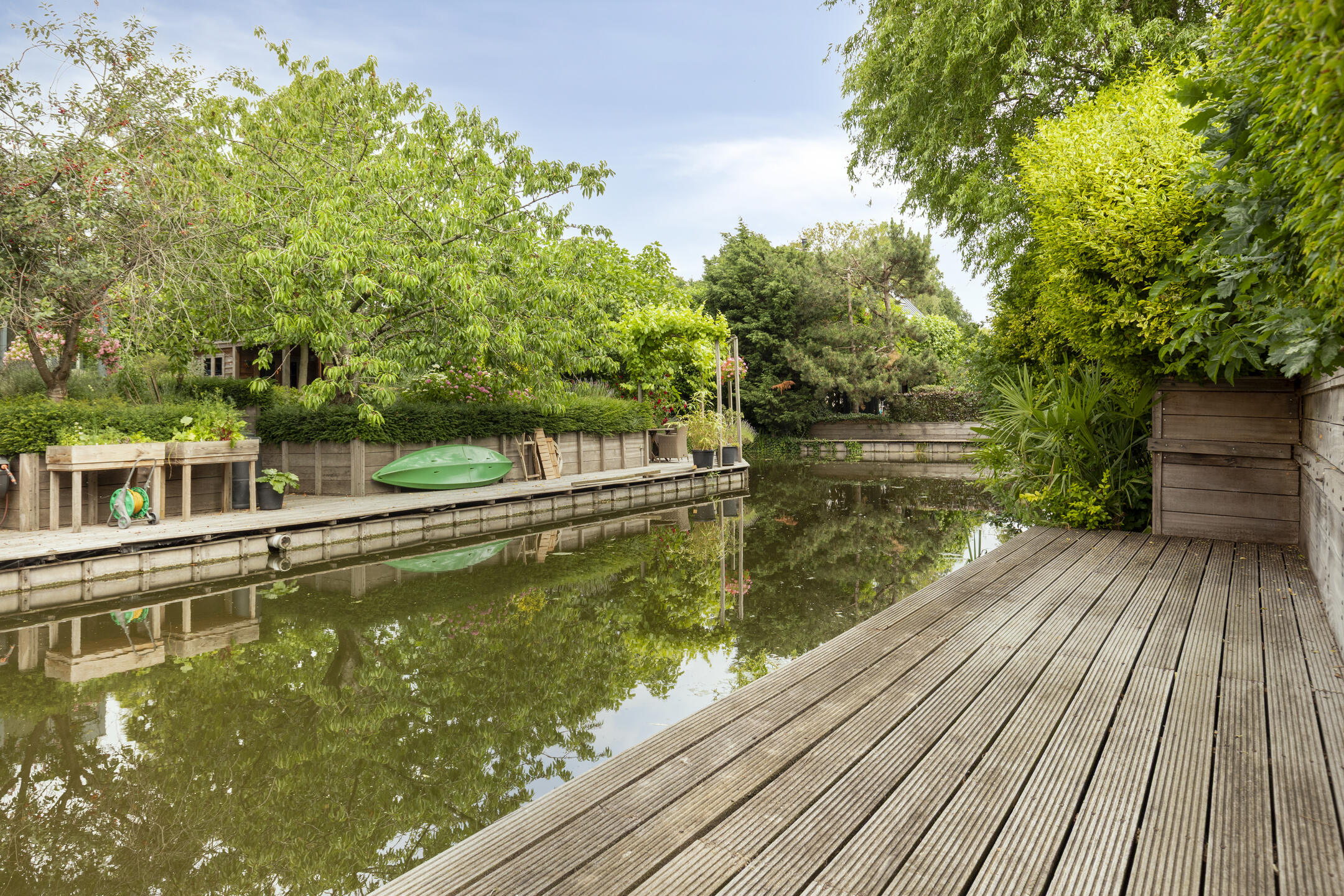 De zonnige achtertuin op het westen is fraai aangelegd en beschikt over meerdere terrassen, een stijlvolle overkapping en een vlonder aan de singel — een heerlijke plek om te ontspannen tot in de late uurtjes. Aan de voorzijde is parkeergelegenheid voor drie auto’s op eigen terrein en directe toegang tot de garage.