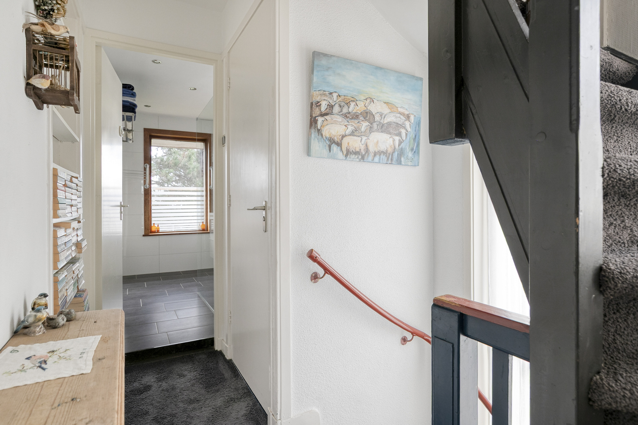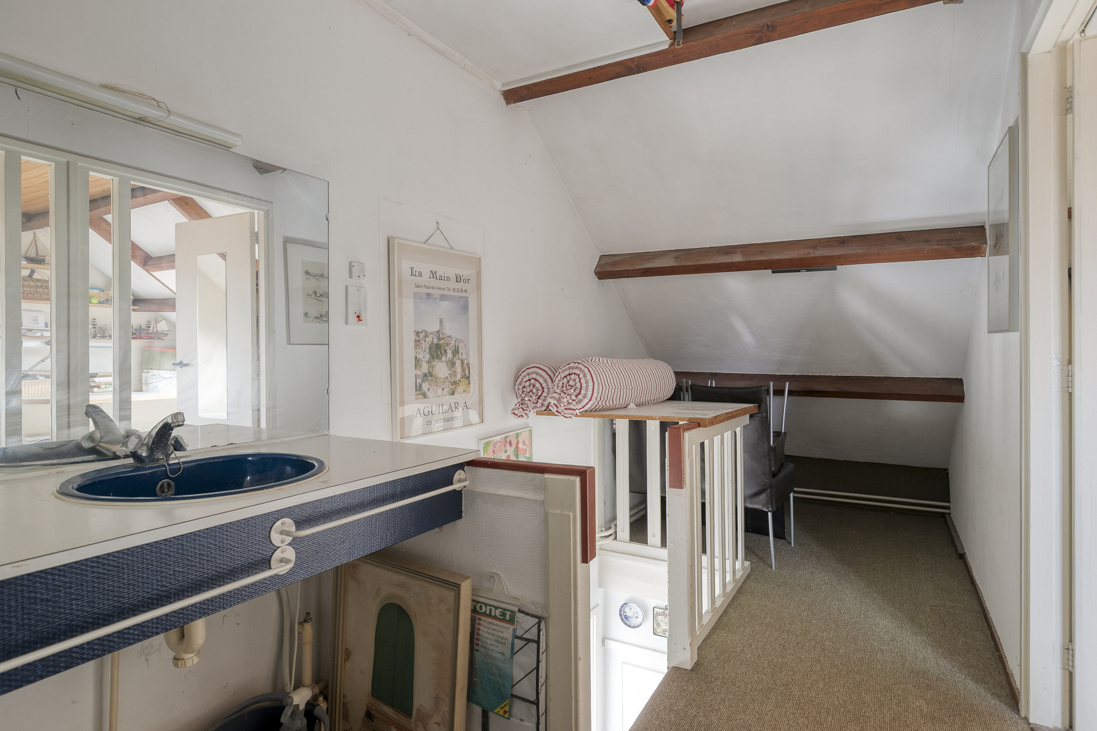 Overloop met wastafel en toegang tot de tweede slaapkamer.