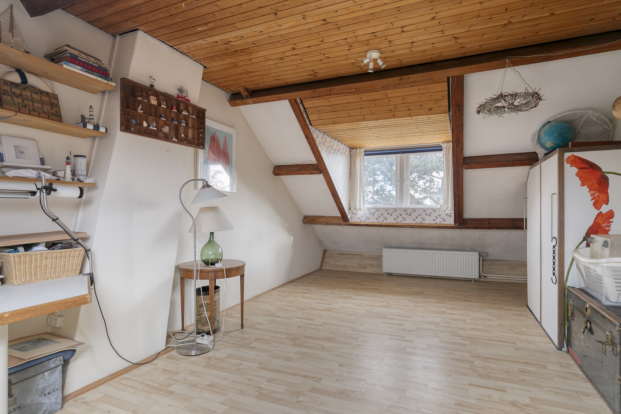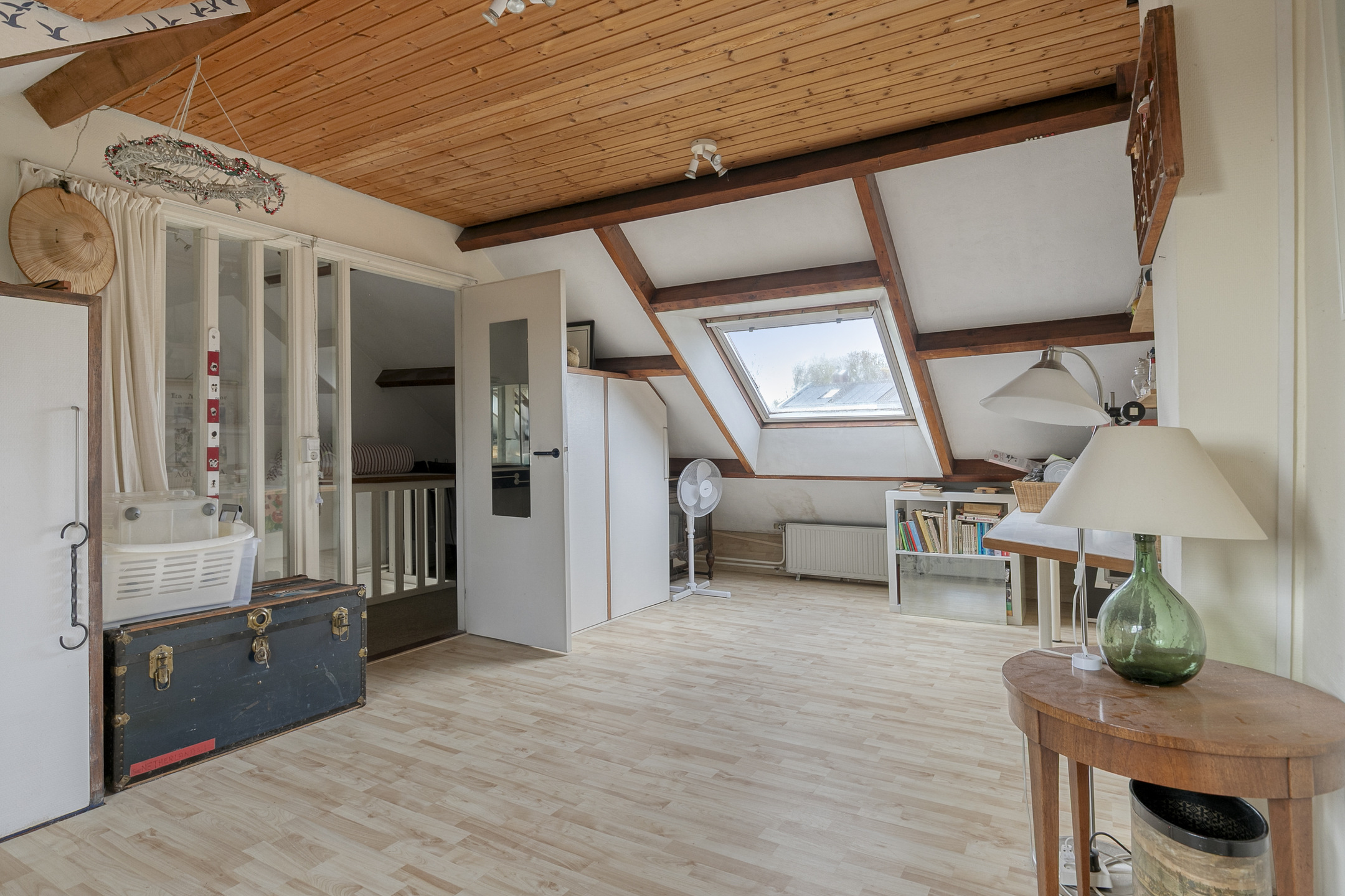 De ruime tweede slaapkamer (voorheen ook twee kamers) is voorzien van een dakkapel en biedt eveneens de mogelijkheid om de kamer weer te splitsen. Er is ruimte voor een extra badkamer op de overloop.