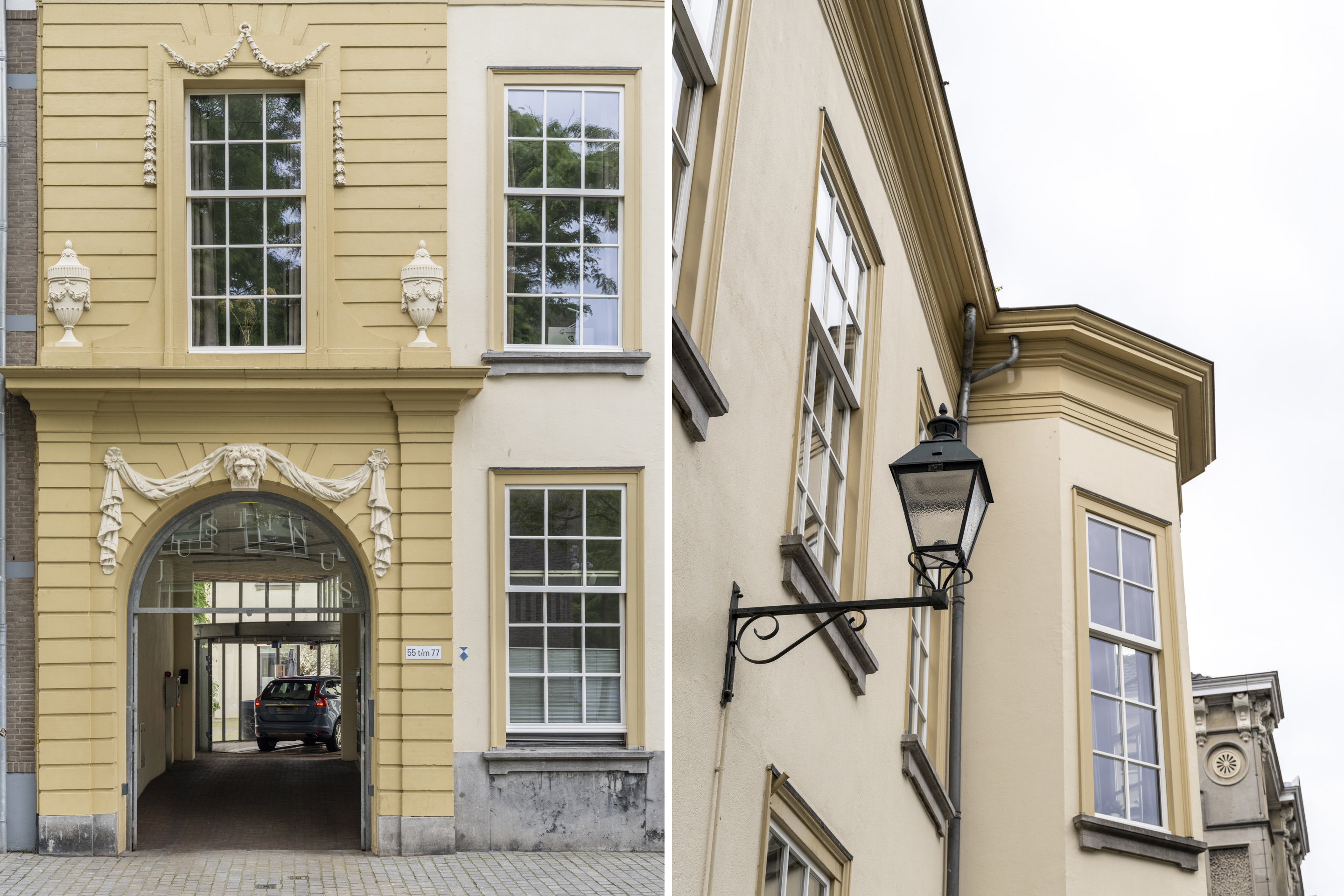 • Justinus van Nassau was één van de natuurlijke zonen van Willem van Oranje. Het pand, waarvan de historie terug gaat tot omstreeks 1500, ligt te midden van historische gebouwen die in de geschiedenis van Nederland een prominente betekenis hebben gehad. De huidige U-vorm van het gebouw is in ca. 1550 tot stand gekomen door samenvoeging van twee 'hofhuizen'. In 1790 krijgt het gebouw z'n huidige Lodewijk XVI stijl, en is omstreeks 2001 volledig gerenoveerd in twaalf sfeervolle appartementen met een gemeenschappelijke binnentuin;