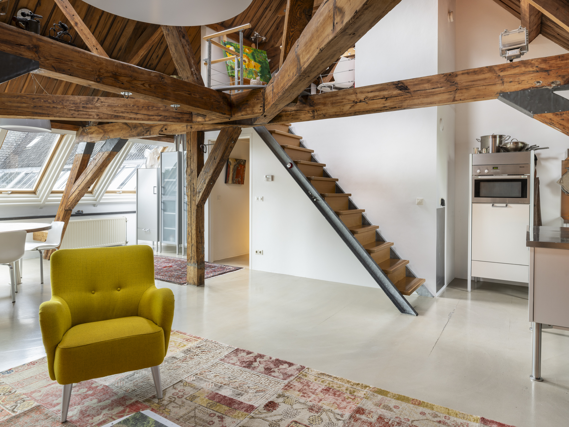 • Het appartement beschikt over een unieke en monumentale kapconstructie met maximale hoogte van ca. 6 meter;