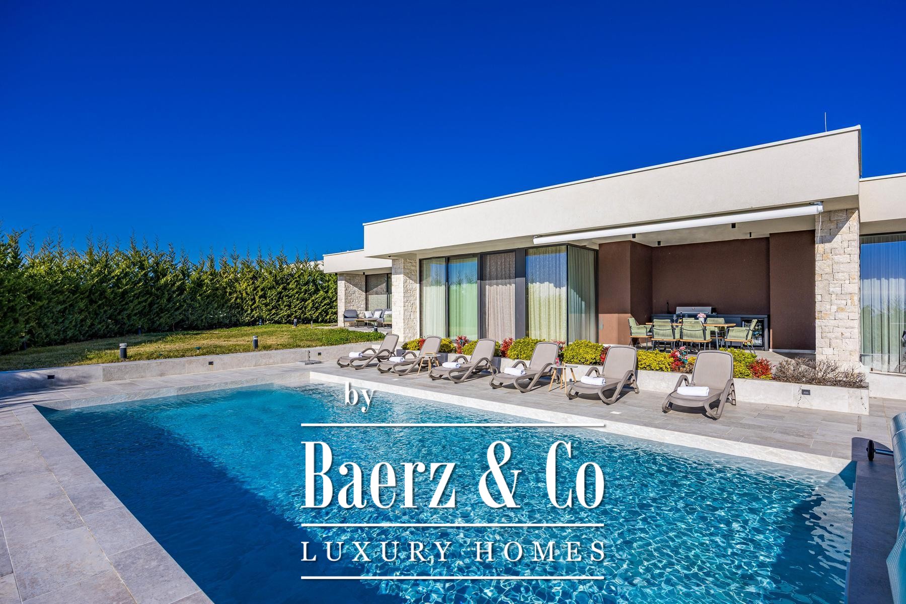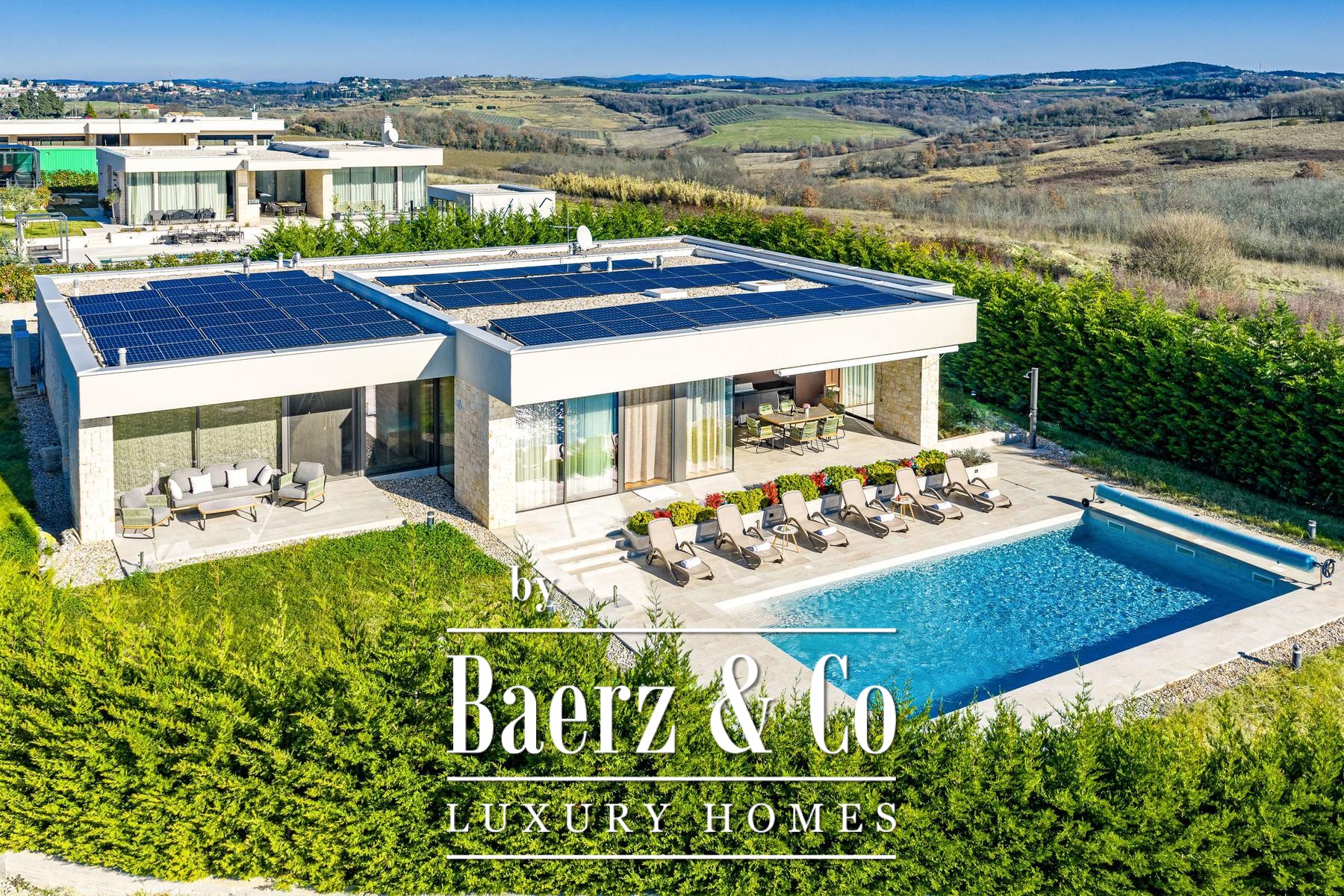 Villa Brtonigla verwelkomt u in het hart van Istrië, waar hedendaags design en ingetogen luxe samenkomen. Deze villa in Brtonigla beslaat 341 m² aan verfijnde leefruimte en is ontworpen voor wie elegantie en rust zoekt. De terrassen bieden panoramisch uitzicht op zee, terwijl grote glazen wanden de lichtrijke interieurs verbinden met een zorgvuldig aangelegde tuin van 760 m².