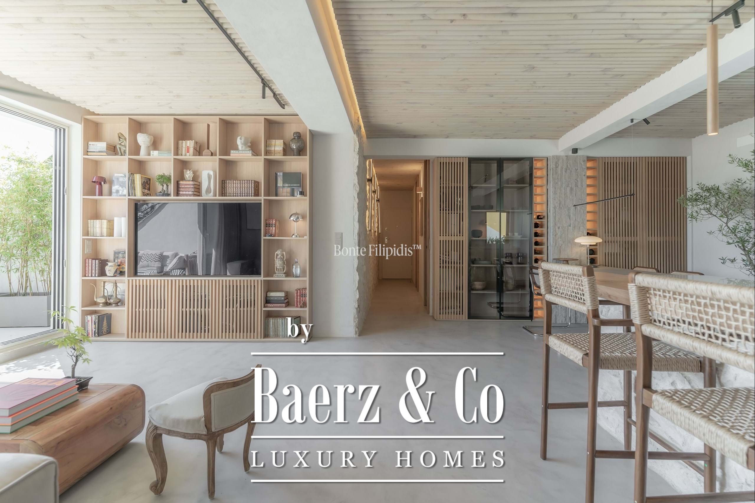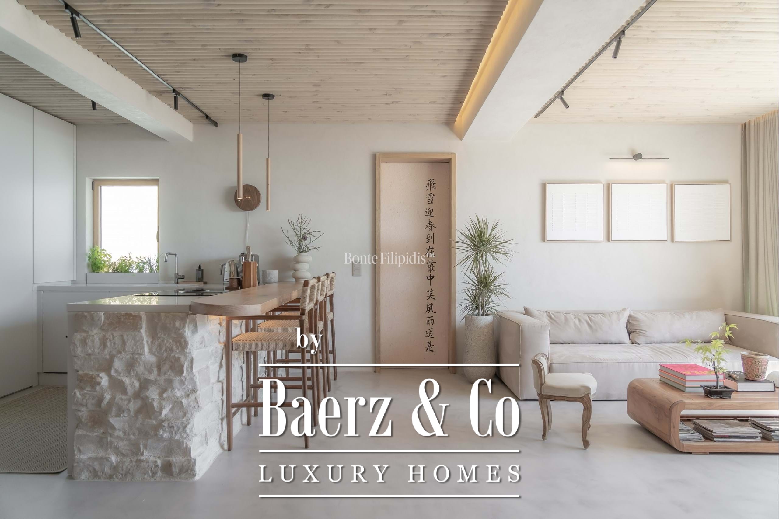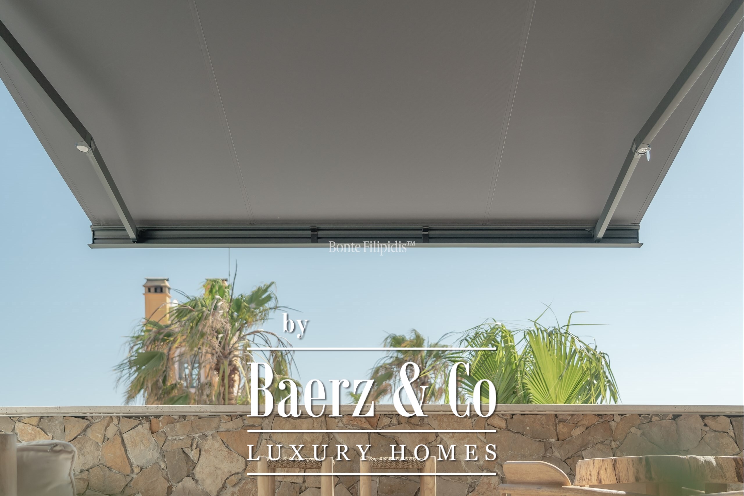 Met een woonoppervlakte van 88 m² sluiten de open woonkamer, eetruimte en keuken naadloos op elkaar aan, voorzien van hoogwaardige afwerking en volledig geïntegreerde apparatuur. De woonkamer leidt naar een terras van 19 m² met bar en een buitendouche om verkoeling te zoeken onder de lucht, met een sereen uitzicht op de baai. In het privégedeelte waarborgt de en-suite slaapkamer privacy, terwijl de tweede slaapkamer met zeezicht een eigen balkon en een aparte, complete badkamer biedt.