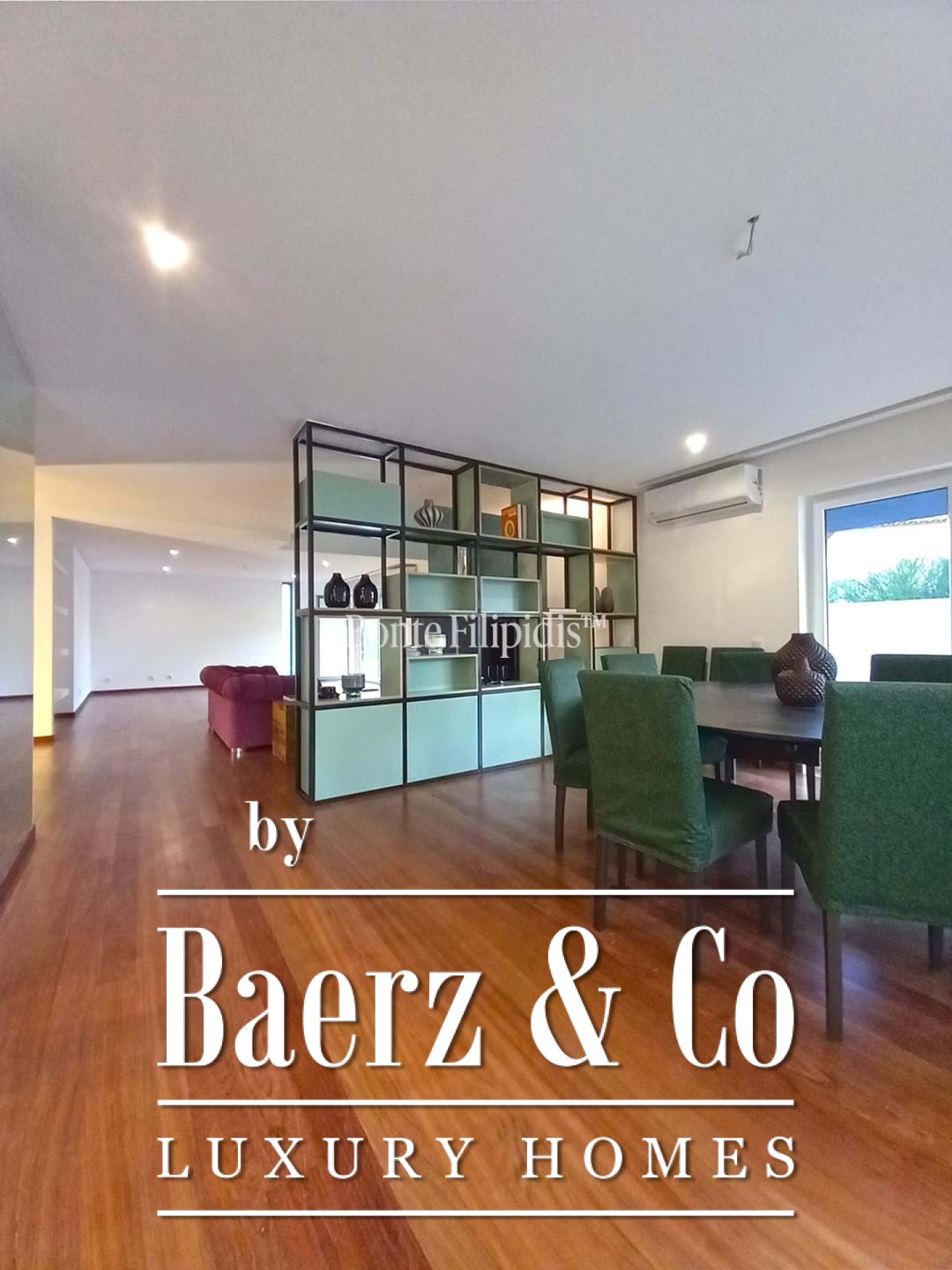 Villa Cascais e Estoril biedt 598 m² aan zorgvuldig vormgegeven woonruimte en belichaamt een harmonie tussen privacy en sociabiliteit. Deze villa met vijf slaapkamers is verdeeld over drie verdiepingen, waarbij het ontwerp evenveel aandacht besteedt aan dagelijks comfort als aan momenten van samenzijn. Bij binnenkomst overheerst een gevoel van ruimtelijkheid; de woonkamer en eetkamer van 65,64 m² openen direct naar 499 m² buitenruimte, waardoor de tuin en het het hele jaar door verwarmde zoutwaterzwembad naadloos worden geïntegreerd. De hoofdverdieping strekt zich uit tot een volledig uitgeruste keuken, een gastentoilet en een slaapkamer met badkamer en suite, met een doordachte doorstroming tussen de sociale zones.