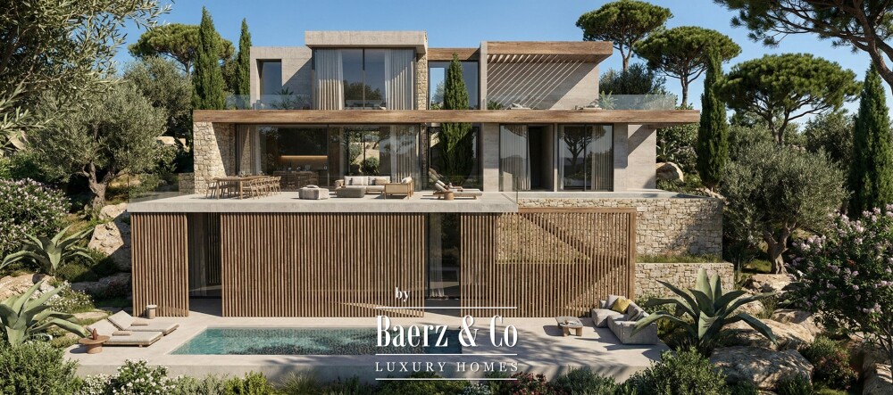 Vijf slaapkamers en zes badkamers bieden zowel ruimtelijkheid als privacy. Op de begane grond zijn de leefruimten zo ingedeeld dat lichtinval en zicht optimaal zijn. Een patio scheidt het woongedeelte van twee rustige slaapkamers. Boven beschikt de master suite over twee privéterrassen met zeezicht, een en suite badkamer en een dressing. Het souterrain biedt flexibiliteit dankzij een extra slaapkamer, multifunctionele ruimte en directe toegang tot de tuin en een privézwembad van 32 m², alles op een royaal perceel van 1.585 m².