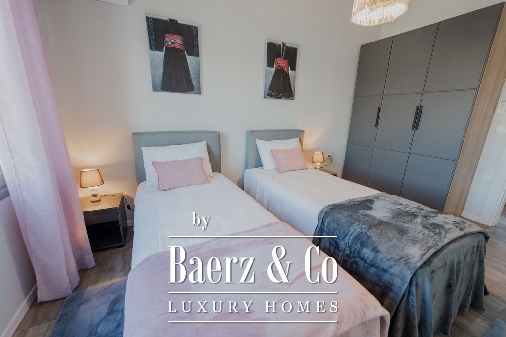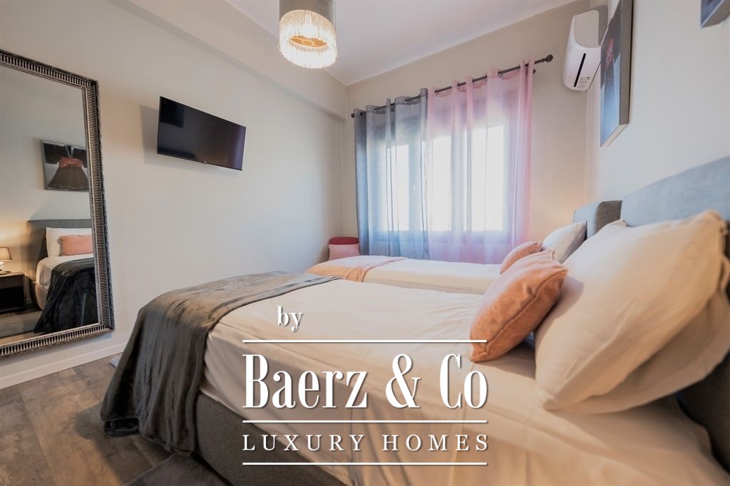 Het appartement is zorgvuldig en volledig gerenoveerd, waarbij hedendaags design wordt gecombineerd met hoogwaardige materialen. De woon- en eetkamer verbreden naar het balkon aan de waterzijde, waardoor natuurlijk licht binnenvalt en dagelijks het uitzicht op de Egeïsche Zee en de zonsondergang wordt omlijst. De aparte, volledig uitgeruste keuken biedt privacy en praktisch comfort, terwijl alle drie de slaapkamers voorzien zijn van royale inbouwkasten en een veilige kluis. Twee badkamers zijn gericht op comfort en helderheid, met moderne afwerkingen die de kwaliteitsbeleving versterken.