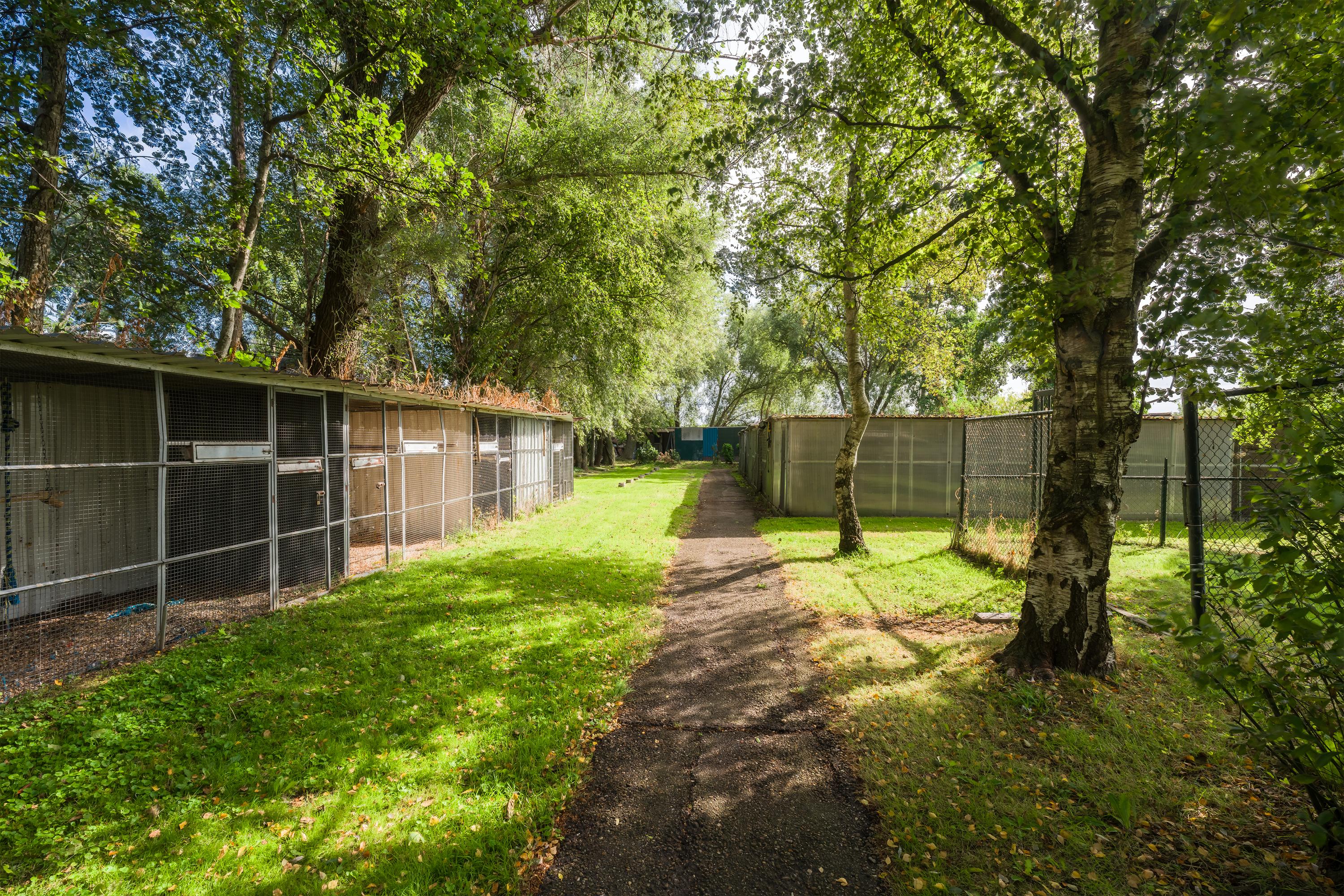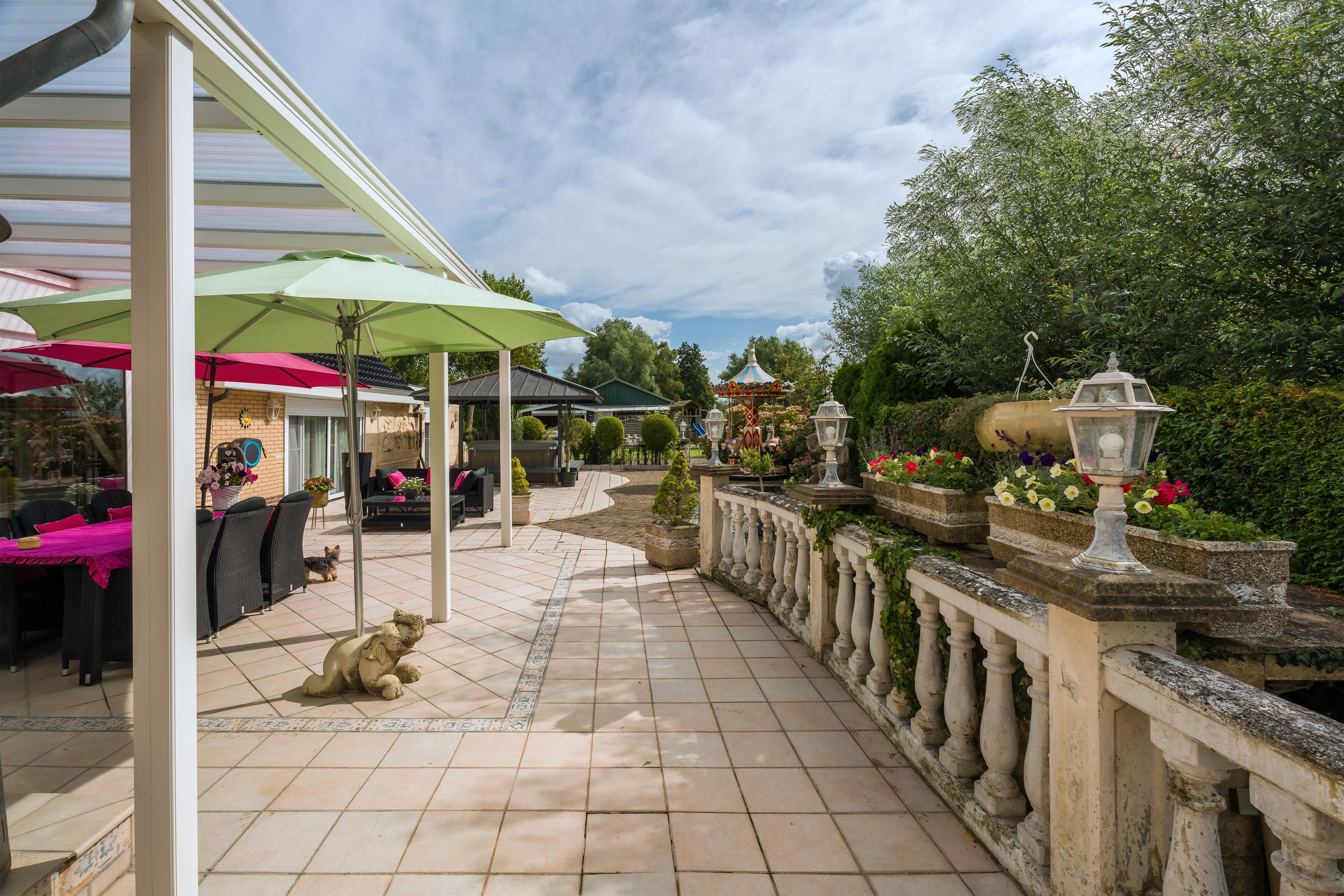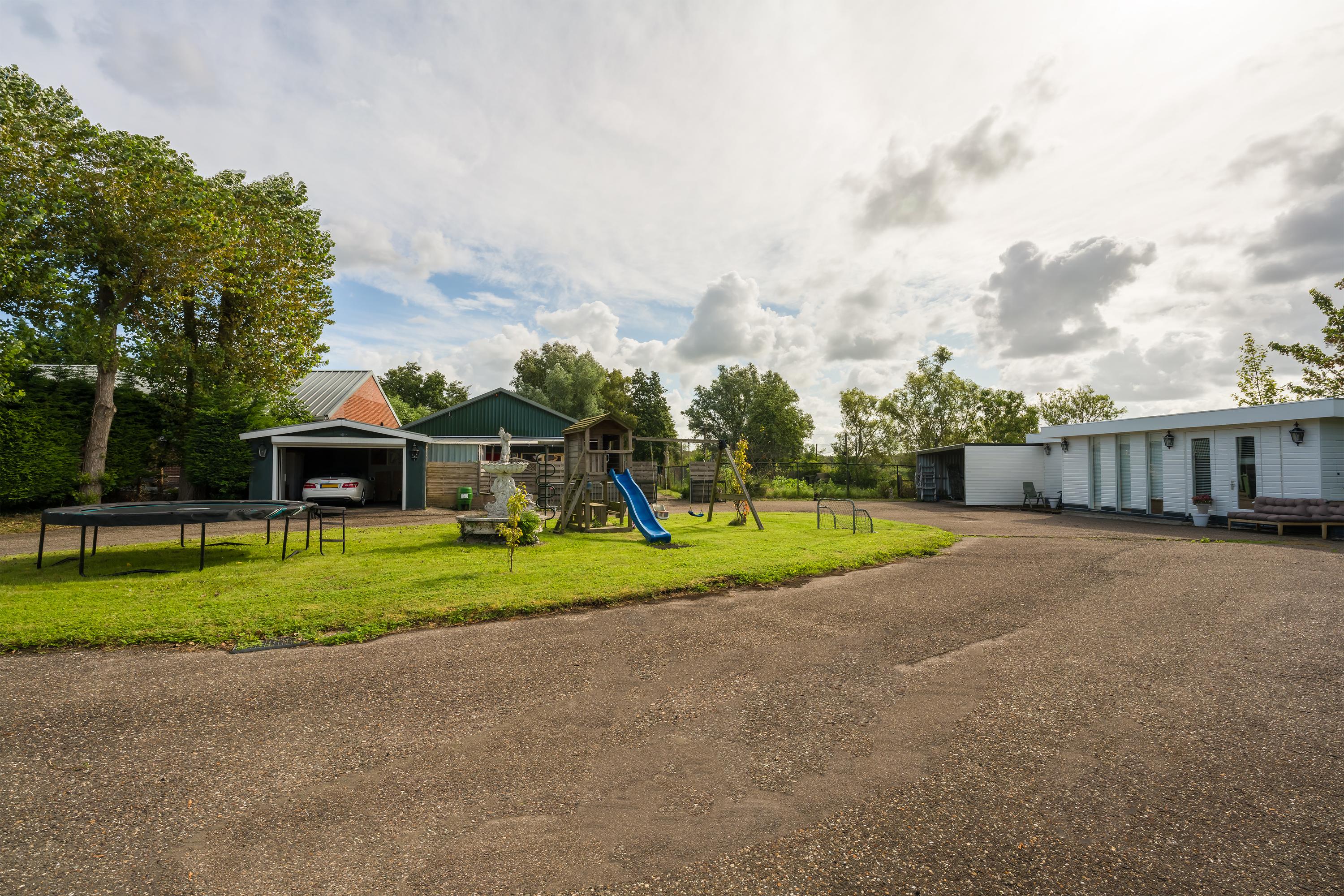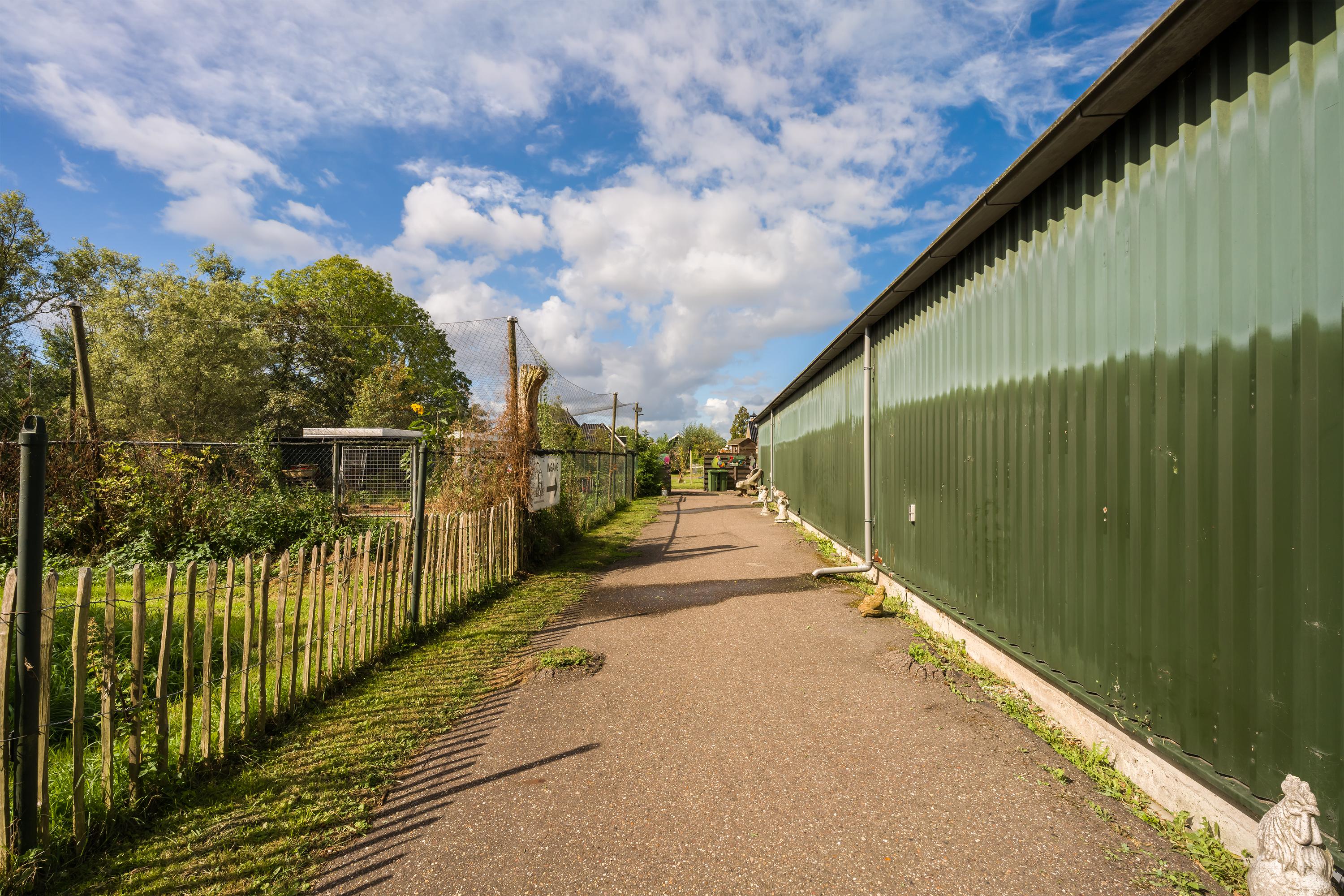 Een prachtig afgesloten privé domein ligt verscholen achter deze -slim op de kavel gesitueerde - vrijstaande woning met guesthouse. Het geheel geeft een grootse vibe, zodra je komt aanrijden. Je oog valt op de witte ijzeren hekken die het groene perceel accentueren, als je de poort benadert. Je reis vervolgt over de asfalt oprit, om achter op het erf te draaien en te parkeren op de rotonde. Vanaf hier kijk je naar de Amerikaans aandoende bungalow met onderheid terras, naar het ruime guesthouse, naar de bedrijfsruimte en de dierenverblijven, waar ooit flamingo's het Noord Hollandse landschap sierden.