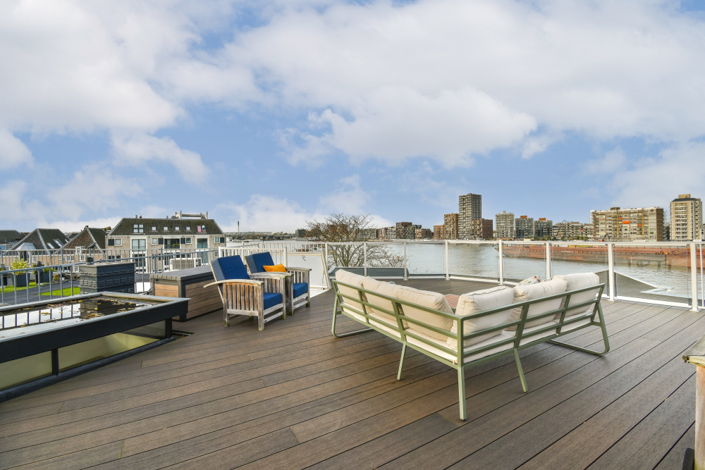 Op één van de mooiste locaties aan de rivier en bij de ingang van de Nieuwe Haven ligt dit luxe en volledig gemoderniseerde/gerenoveerde appartement, verdeeld over twee woonlagen met de entree op de begane grond en een fenomenaal dakterras van circa 68 m2 op de topverdieping. Naast een smaakvolle inrichting en afwerking beschikt dit Gemeentelijk monument over energielabel A. Op de 1e verdieping bevinden zich de riante woonkamer met aan de voorzijde een schitterend uitzicht op de rivier, de luxe open keuken en een heerlijk ochtendterras aan de achterzijde. Op de 2e verdieping bevinden zich de luxe en complete badkamer, 3 slaapkamers en 2 inloopkasten en leidt een vaste trap naar een dakterras met een formaat en uitzicht zoals u dit zelden tegenkomt.
