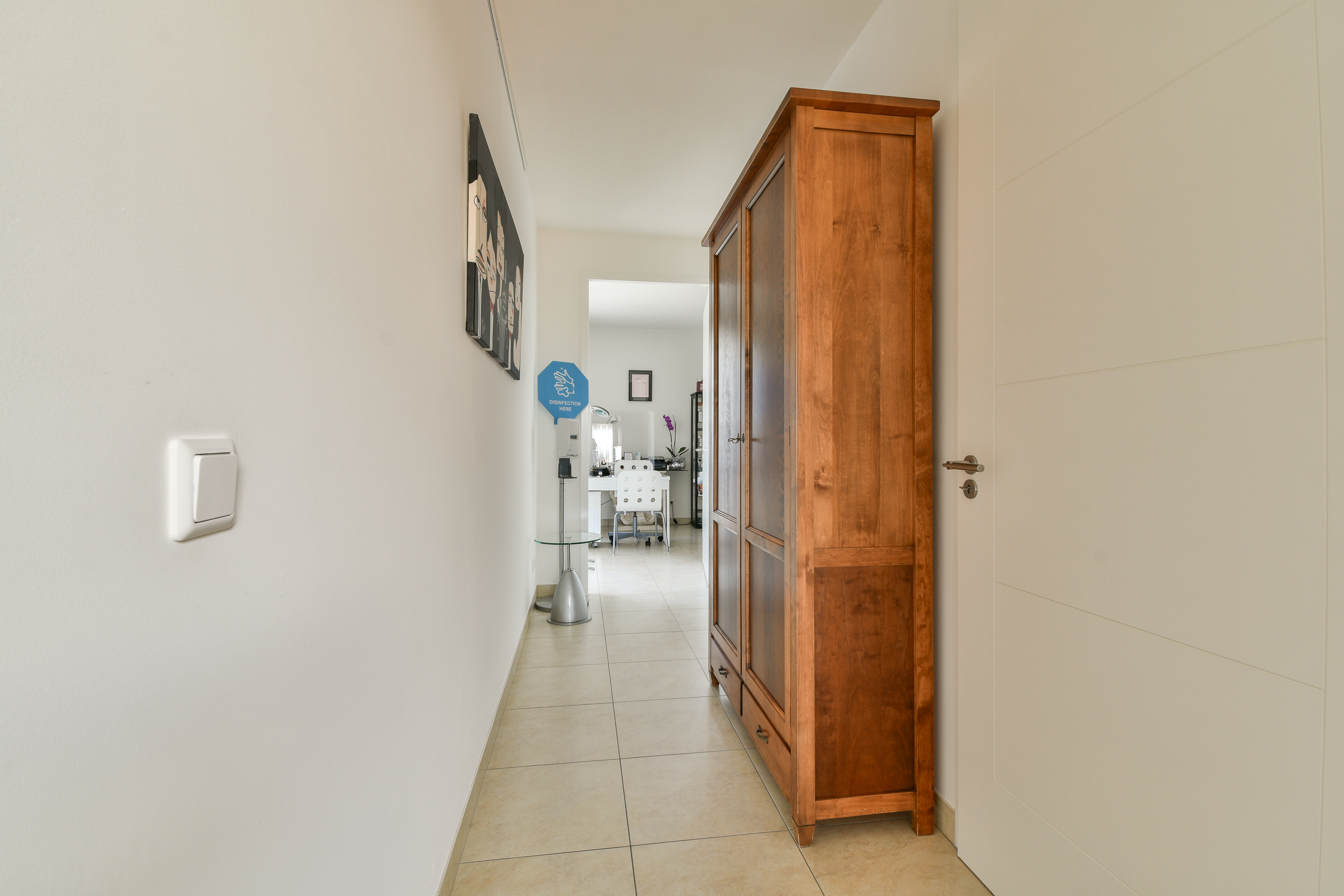 Via de stijlvolle entree met hoge raampartijen betreedt u de opvallend goed onderhouden woning. De ontvangsthal is ruim en licht en biedt toegang tot een luxe toiletruimte, een praktische garderobekast, de meterkast (met 14 groepen en 4 aardlekschakelaars) en een moderne trapopgang naar de verdiepingen.