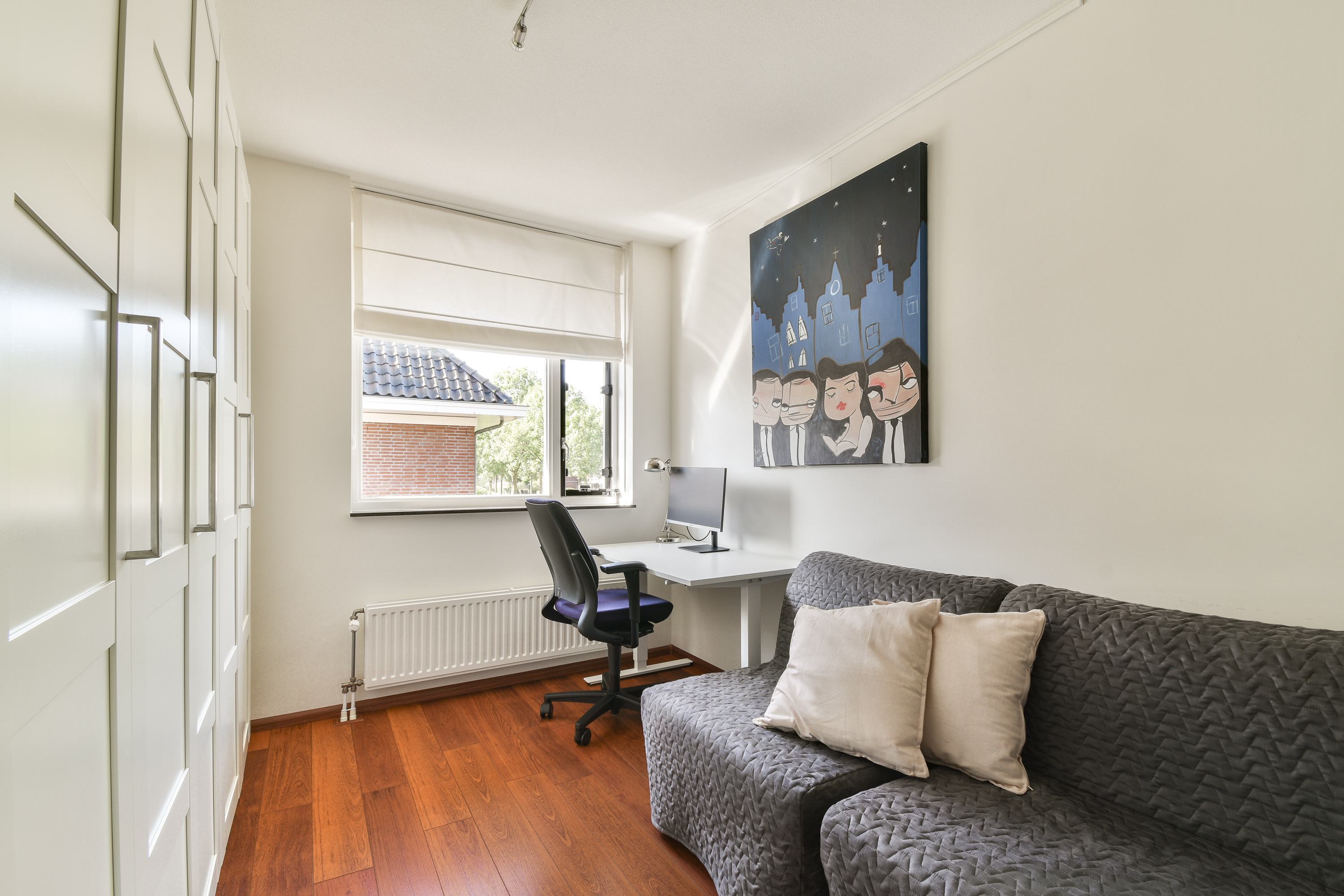 Deze slaapkamer is op dit moment in gebruik als luxe werkruimte met dakkapel en een dakvenster.