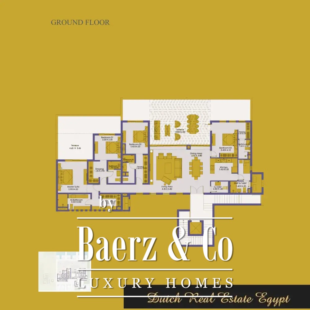 Villa El Gouna biedt een zeldzame combinatie van privacy en verfijnd comfort en belichaamt de essentie van hedendaags wonen aan de Egyptische Rode Zeekust. Deze woning beschikt over 4 slaapkamers en 6 badkamers, verdeeld over 240 m² woonoppervlakte, waarbij elke ruimte is ontworpen voor zowel gezinsleven als rustige afzondering.