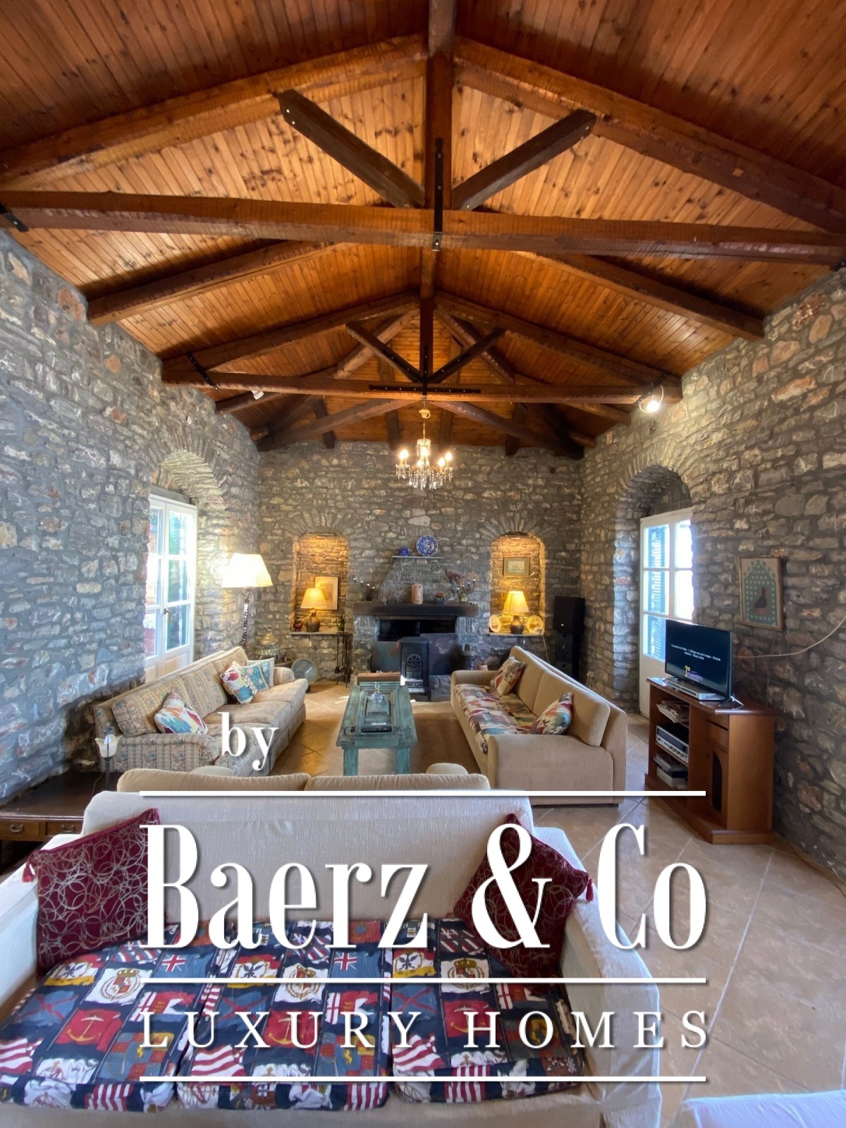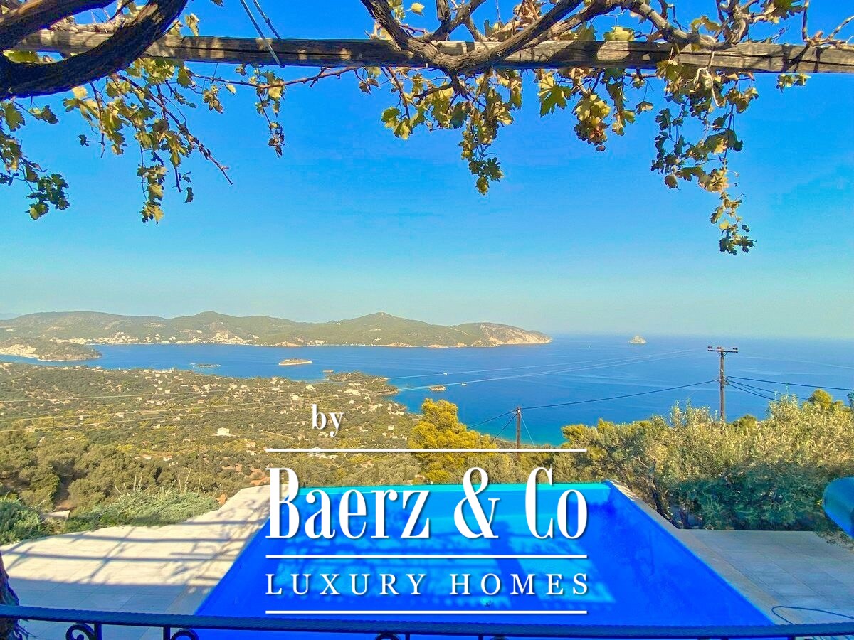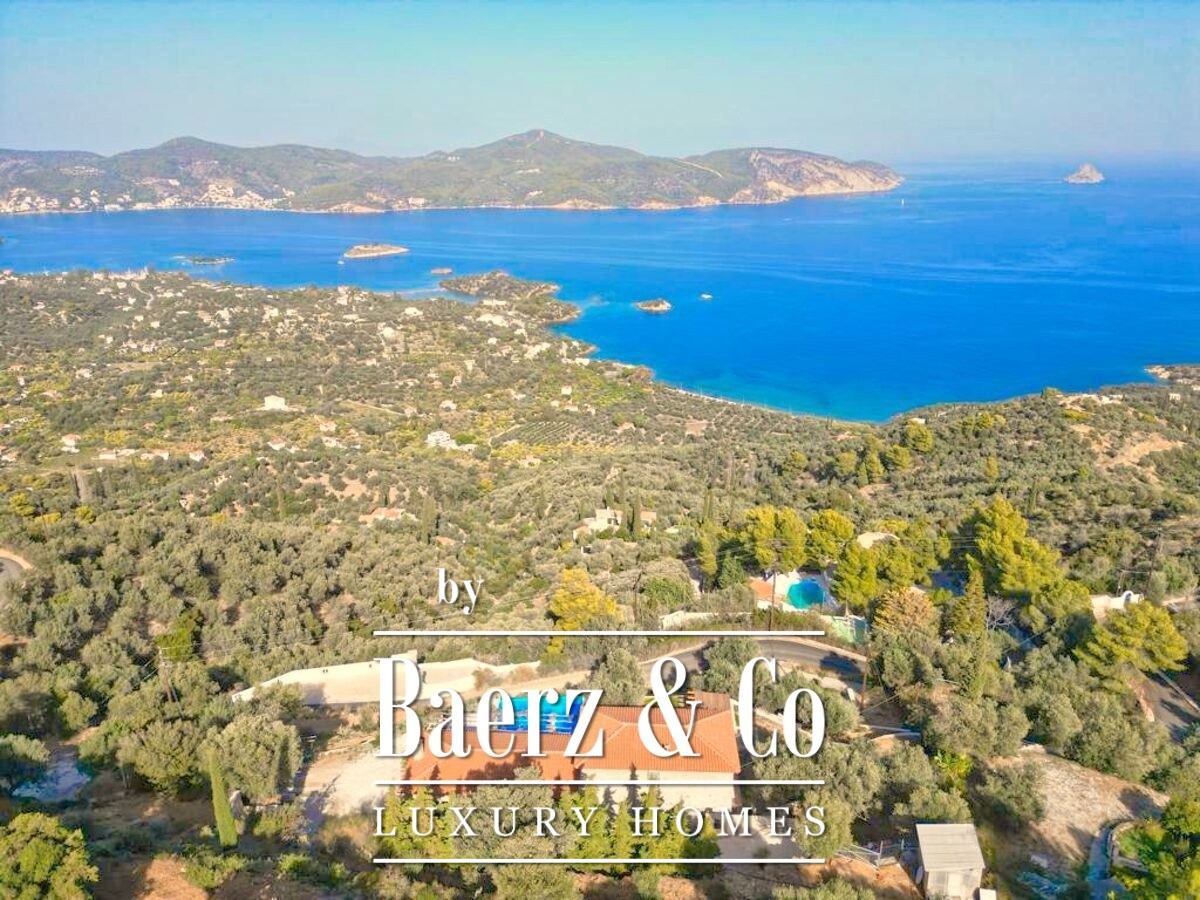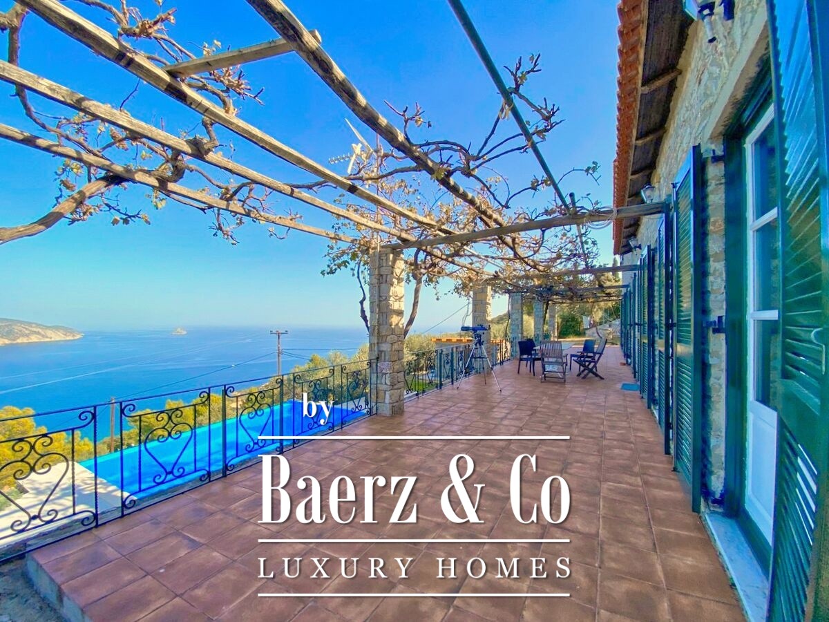 De stenen villa Galatas bevindt zich op een rustige heuvel en biedt panoramisch uitzicht over zee, waar traditionele Griekse architectuur samenkomt met subtiel modern comfort. De riante en lichte kamers in het 180 m² tellende interieur profiteren optimaal van het daglicht, met een centrale living die wordt gekenmerkt door een indrukwekkende stenen open haard. Elke ruimte, van de aparte keuken tot de drie slaapkamers en twee badkamers, is ontworpen met oog voor functionaliteit en ingetogen luxe.