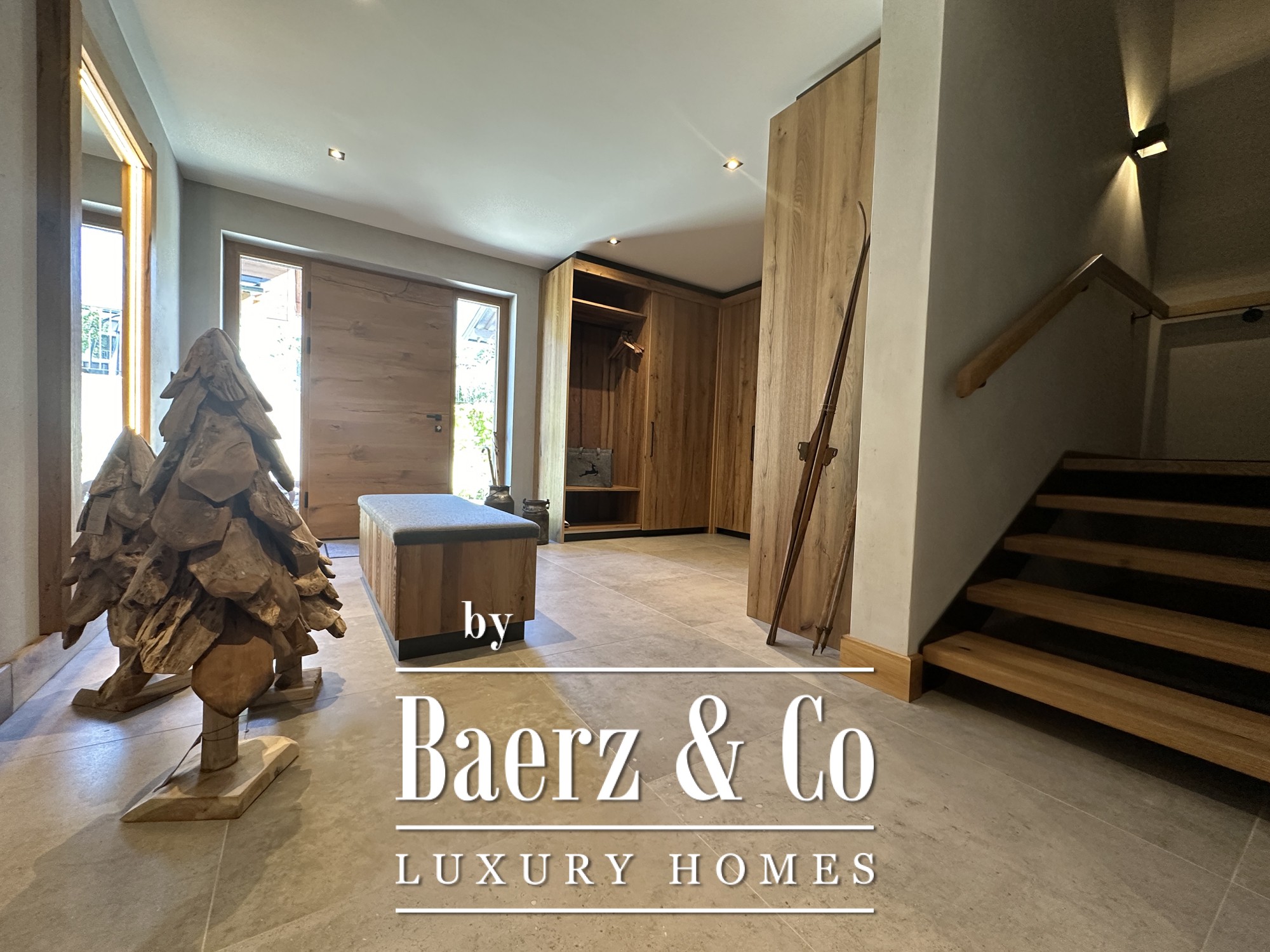 De entree bevindt zich op de onderste verdieping, waar een royale garderobe, dubbele garage en ruime bergruimte inspelen op het alpine leven. De wellnessruimte met sauna, fitnessgedeelte, douche en technische voorzieningen benadrukt het comfort van het chalet. Alle verdiepingen zijn verbonden via een lift, wat voor een zorgeloze doorstroom zorgt.