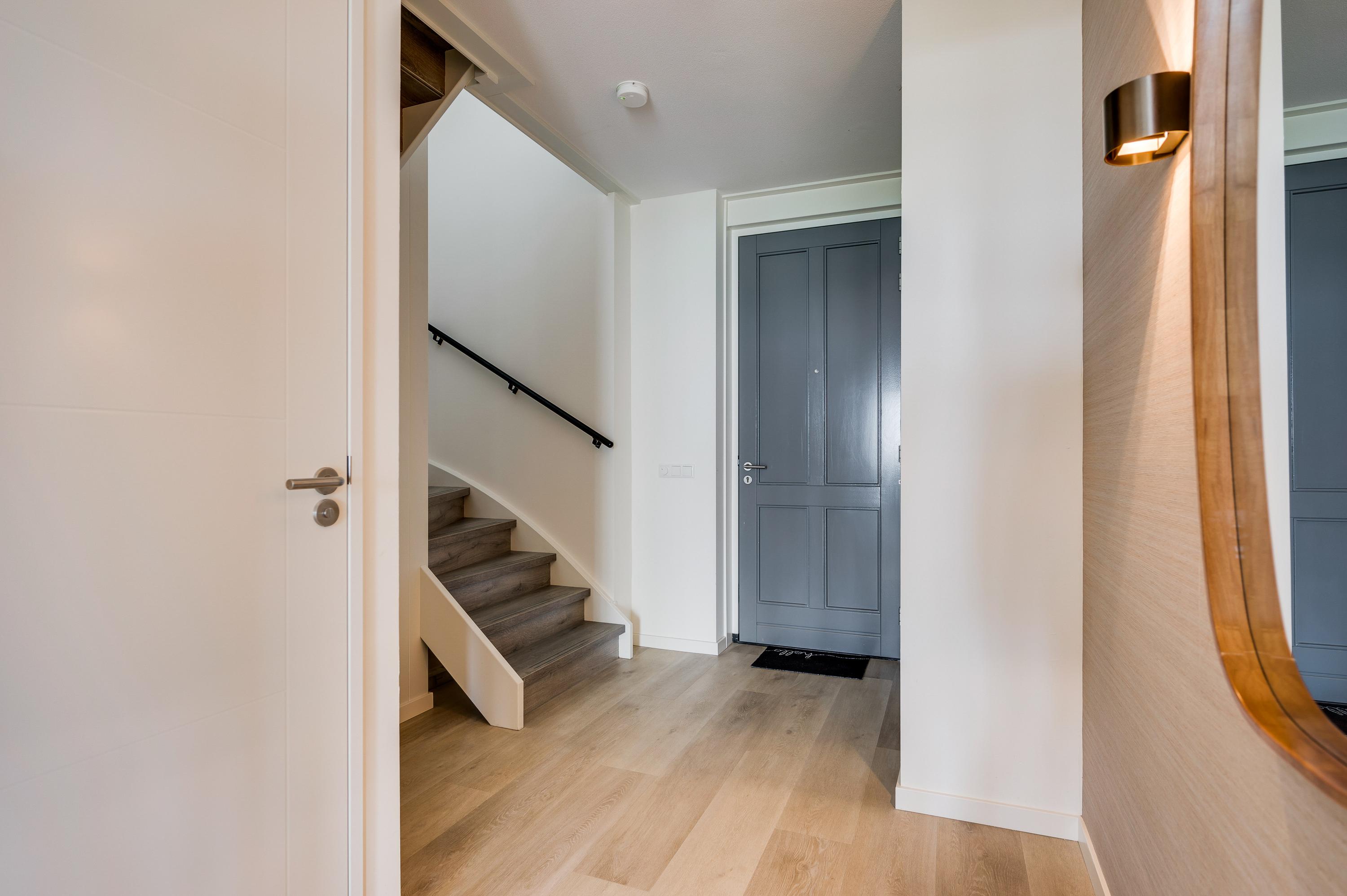 Welkom thuis! Treedt de woning binnen in de ontvangsthal waar zich de meterkast, het royale toilet, de trapopgang naar de eerste verdieping en de doorloop naar de living bevindt.