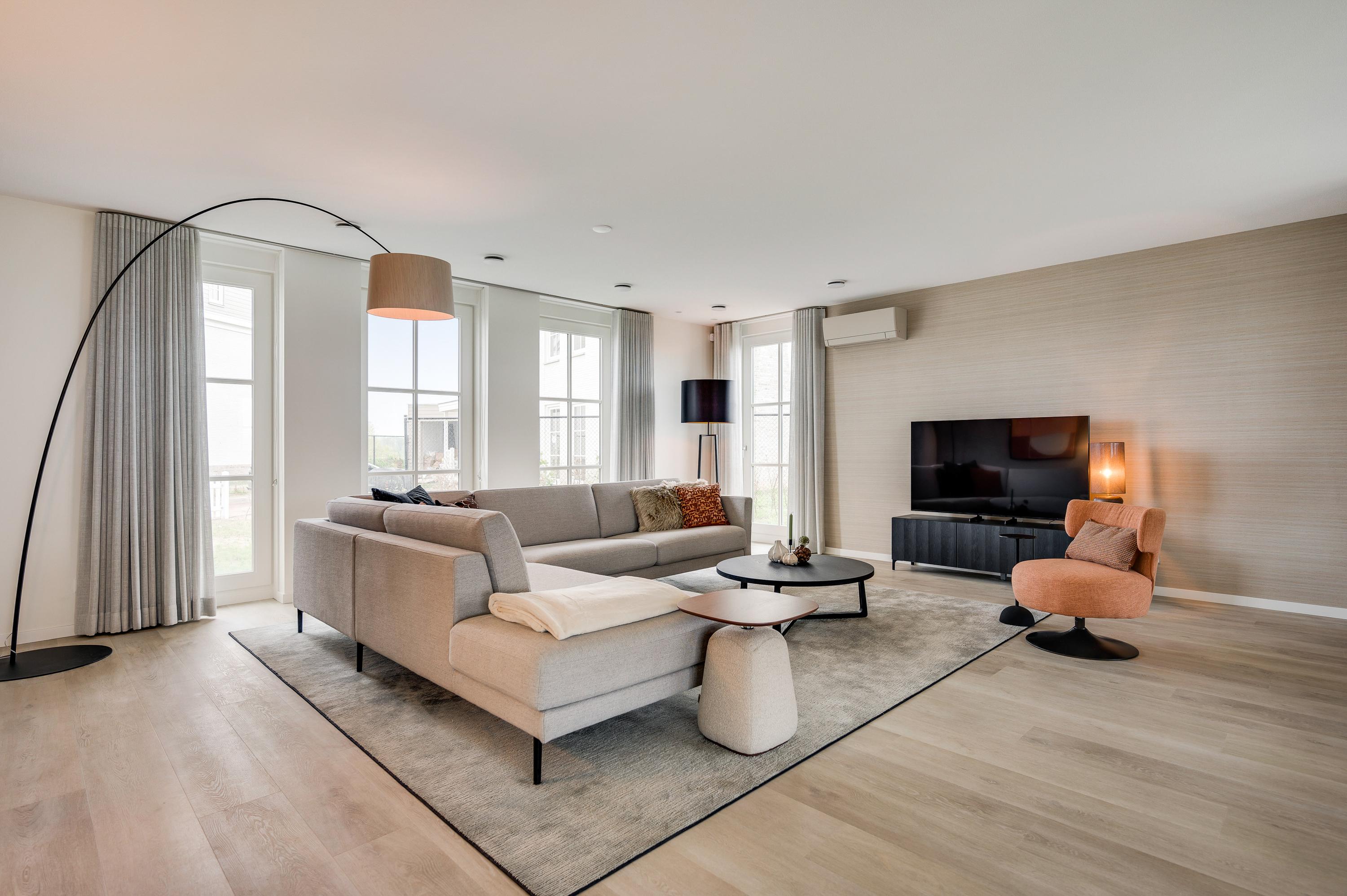 De hele benedenverdieping is voorzien van een elegante PVC vloer met vloerverwarming die per ruimte in te stellen is. Tevens tref je beneden op verschillende plekken een Sonos muziekinstallatie.