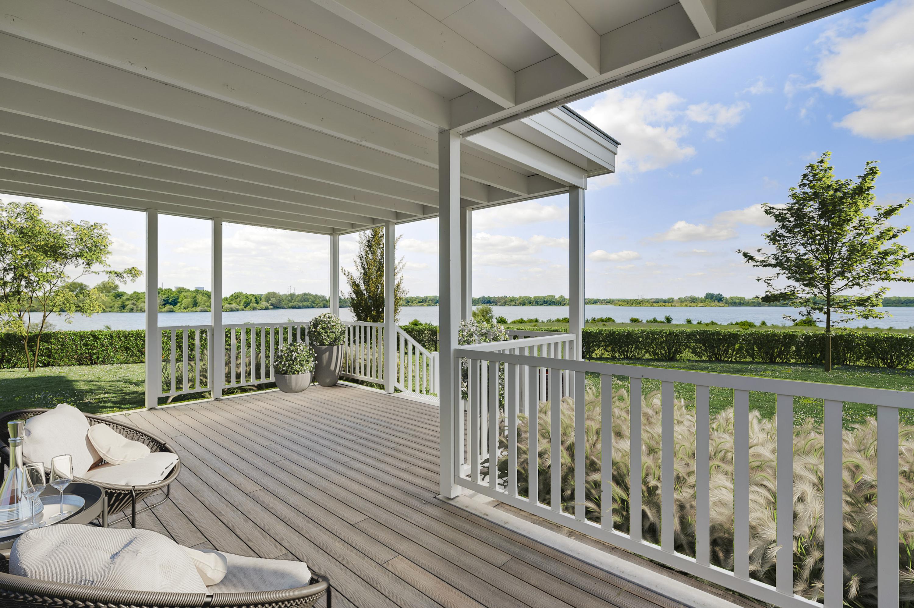 Vanuit de veranda loop je zo de (aan te leggen) tuin in. Ervaar hier een echt vakantiegevoel door het adembenemende uitzicht. Kies zelf voor een tuinontwerp en maak het plaatje compleet!