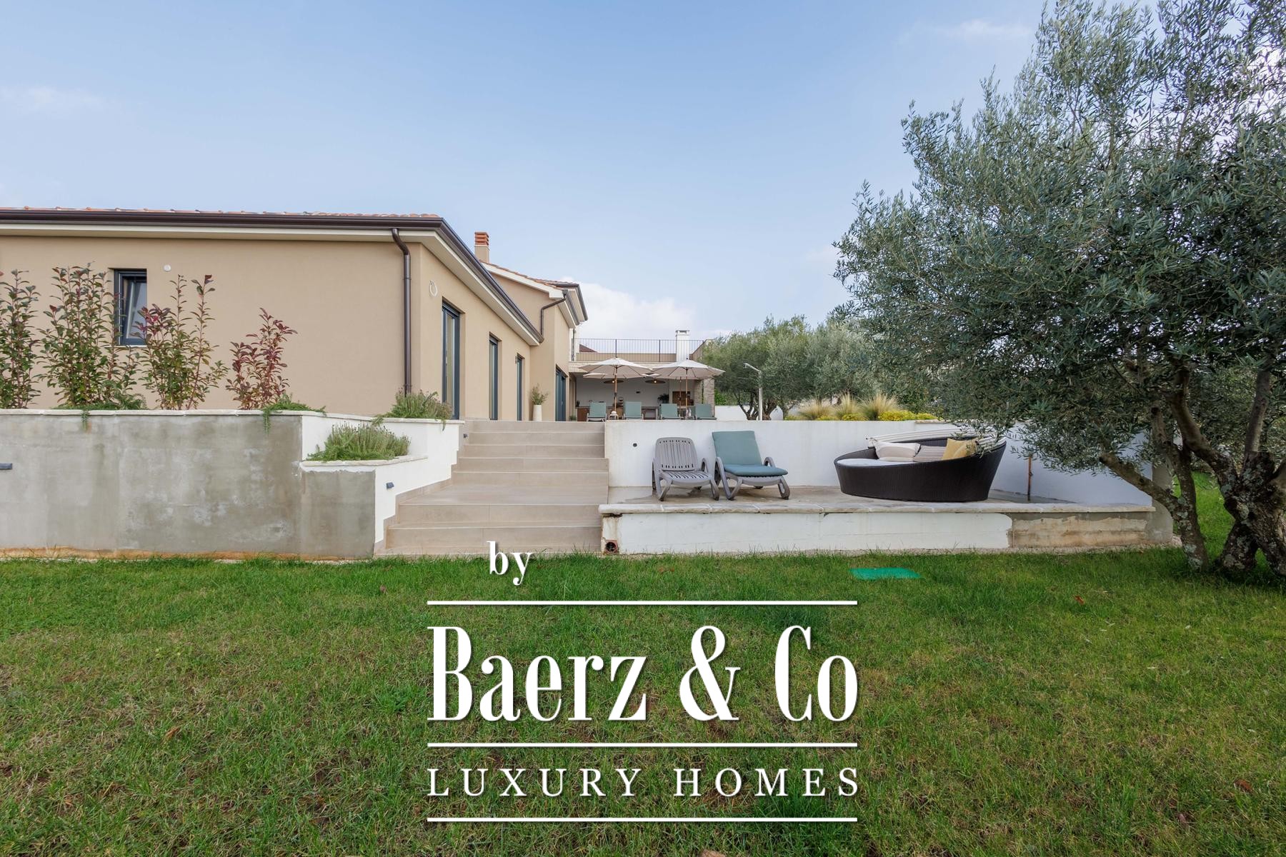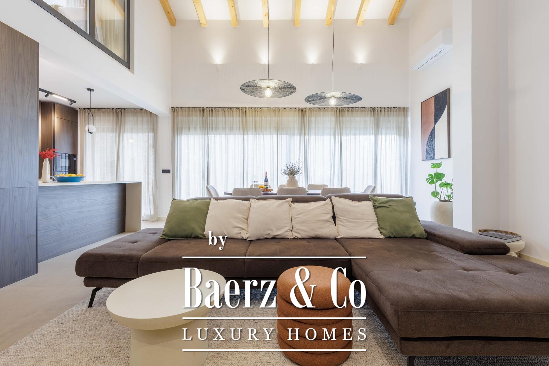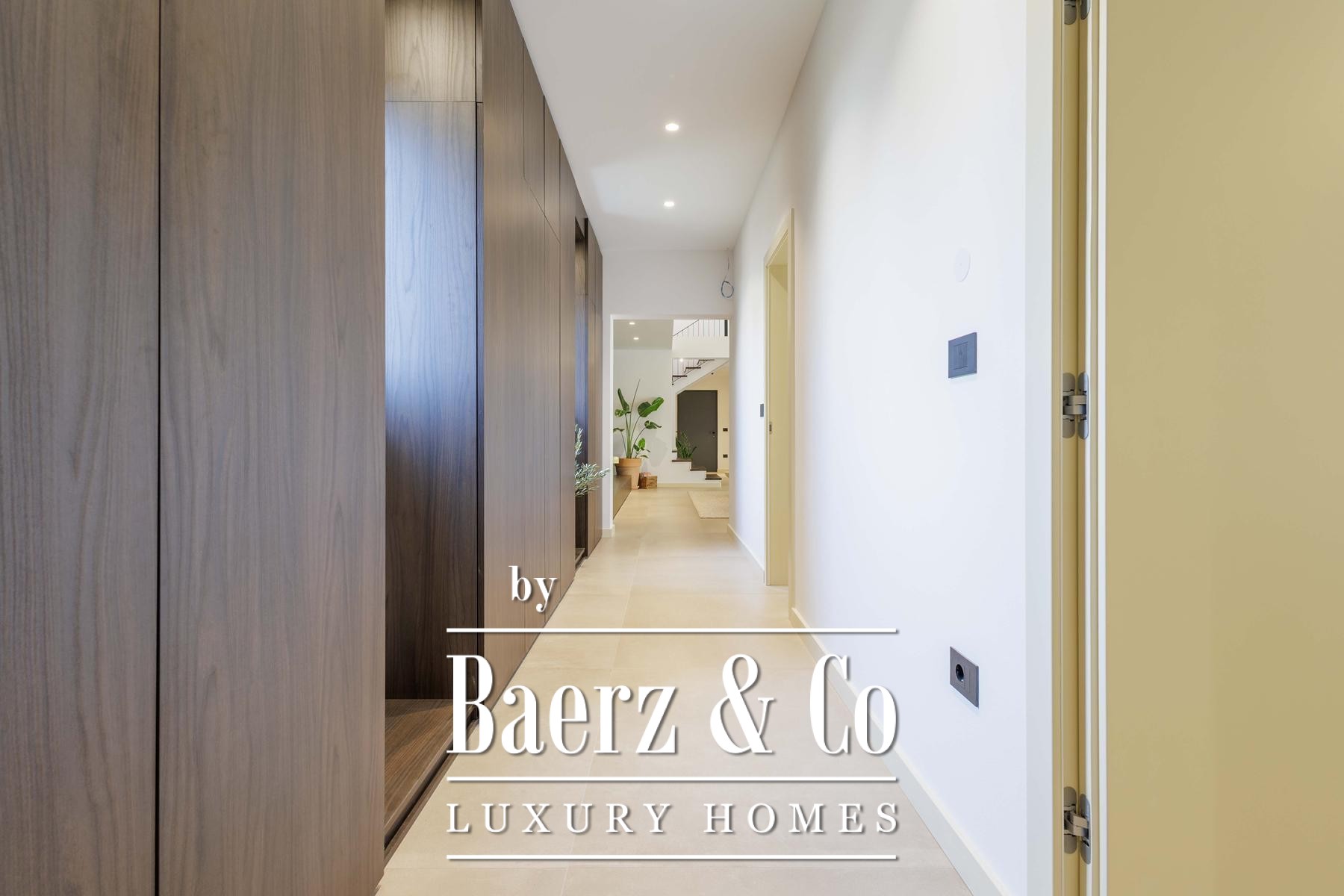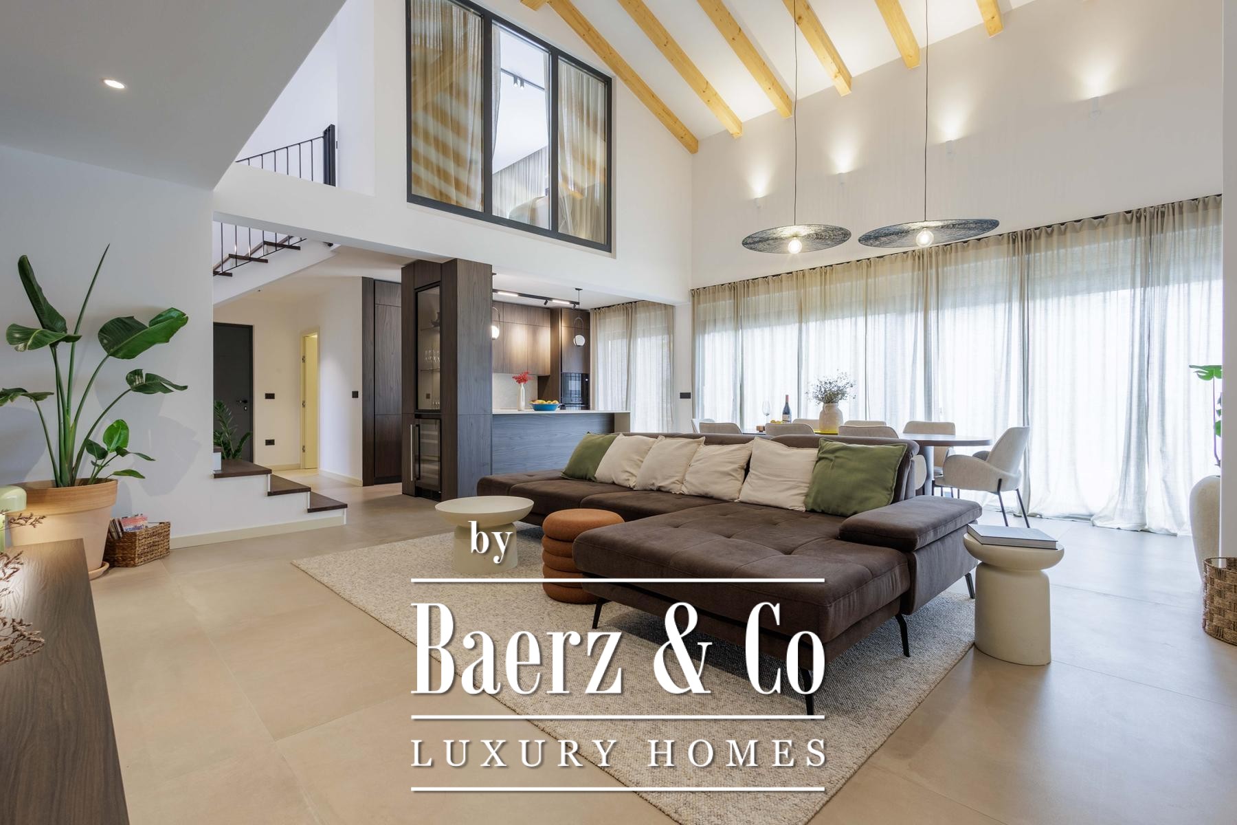 Deze villa, gebouwd volgens hoge standaarden en met een laag energieverbruik, is voorzien van vloerverwarming op basis van een warmtepomp en doorlopende airconditioning. Ook buiten zet het praktische ontwerp zich voort, want de vloerverwarming loopt door tot in de buitenkeuken. De indeling bevat verder twee aparte gastentoiletten voor extra gemak. Het perceel van 1.000 m² biedt optimale privacy dankzij een weelderig gazon, zes olijfbomen en een geautomatiseerd irrigatiesysteem voor eenvoudig onderhoud.