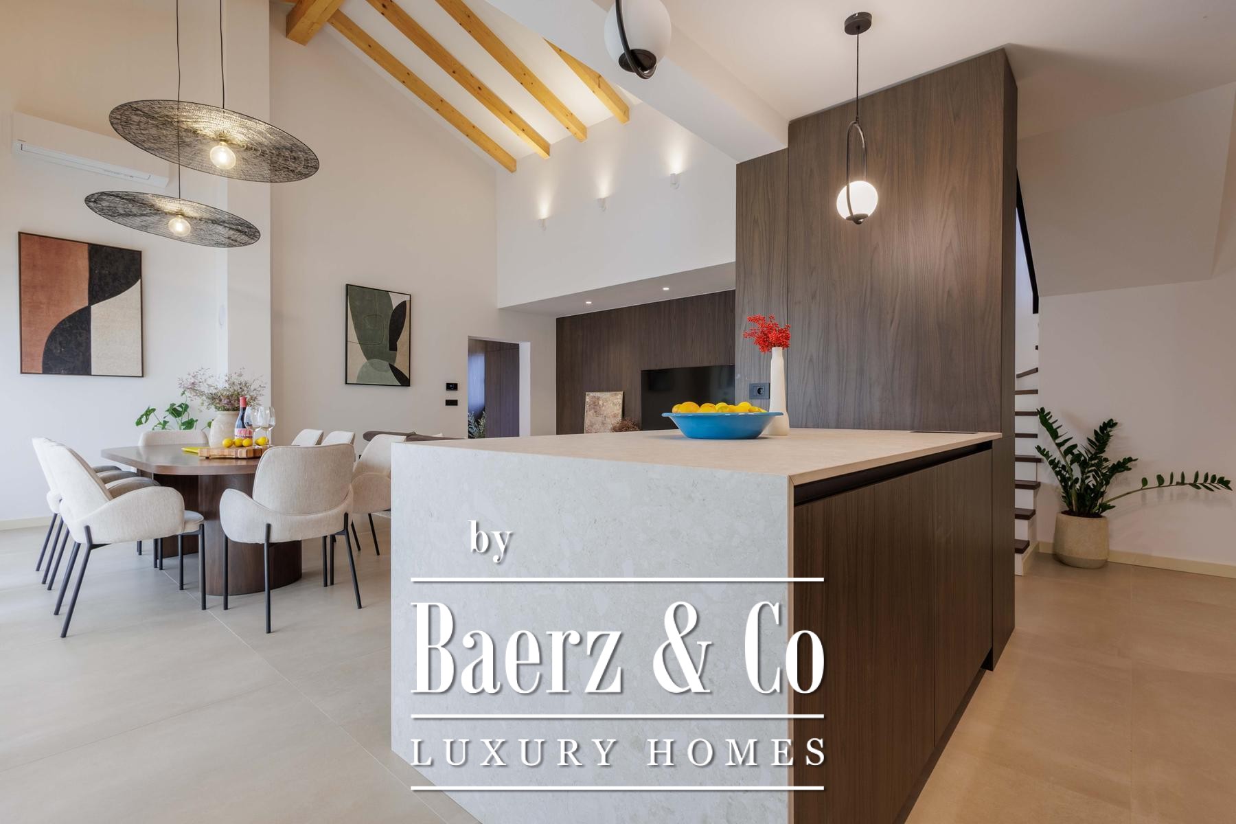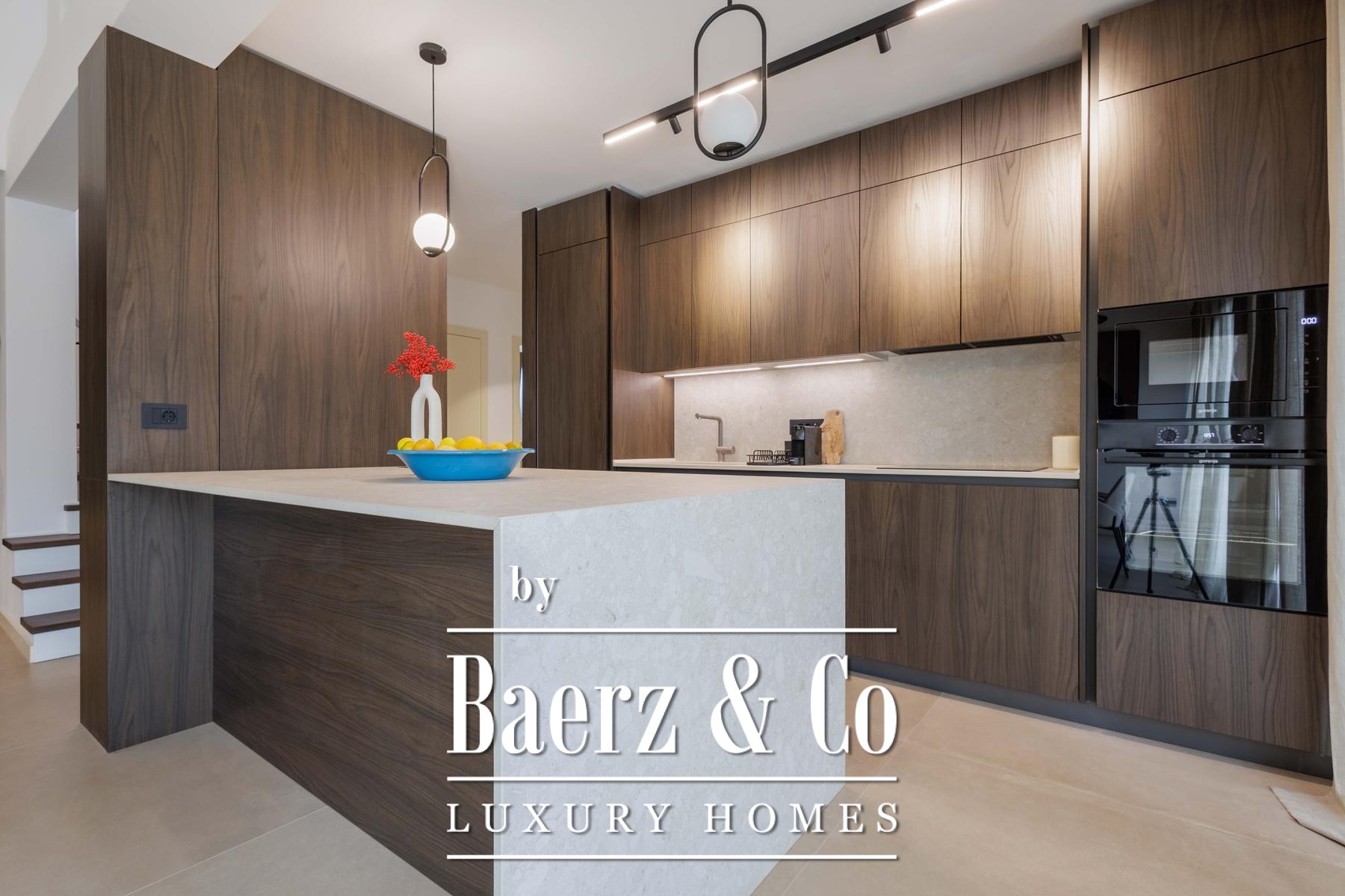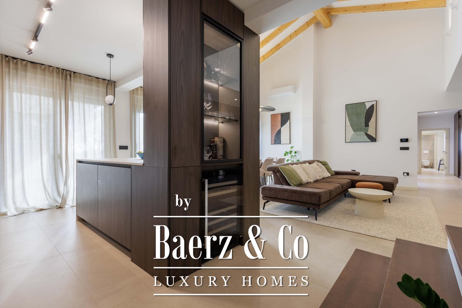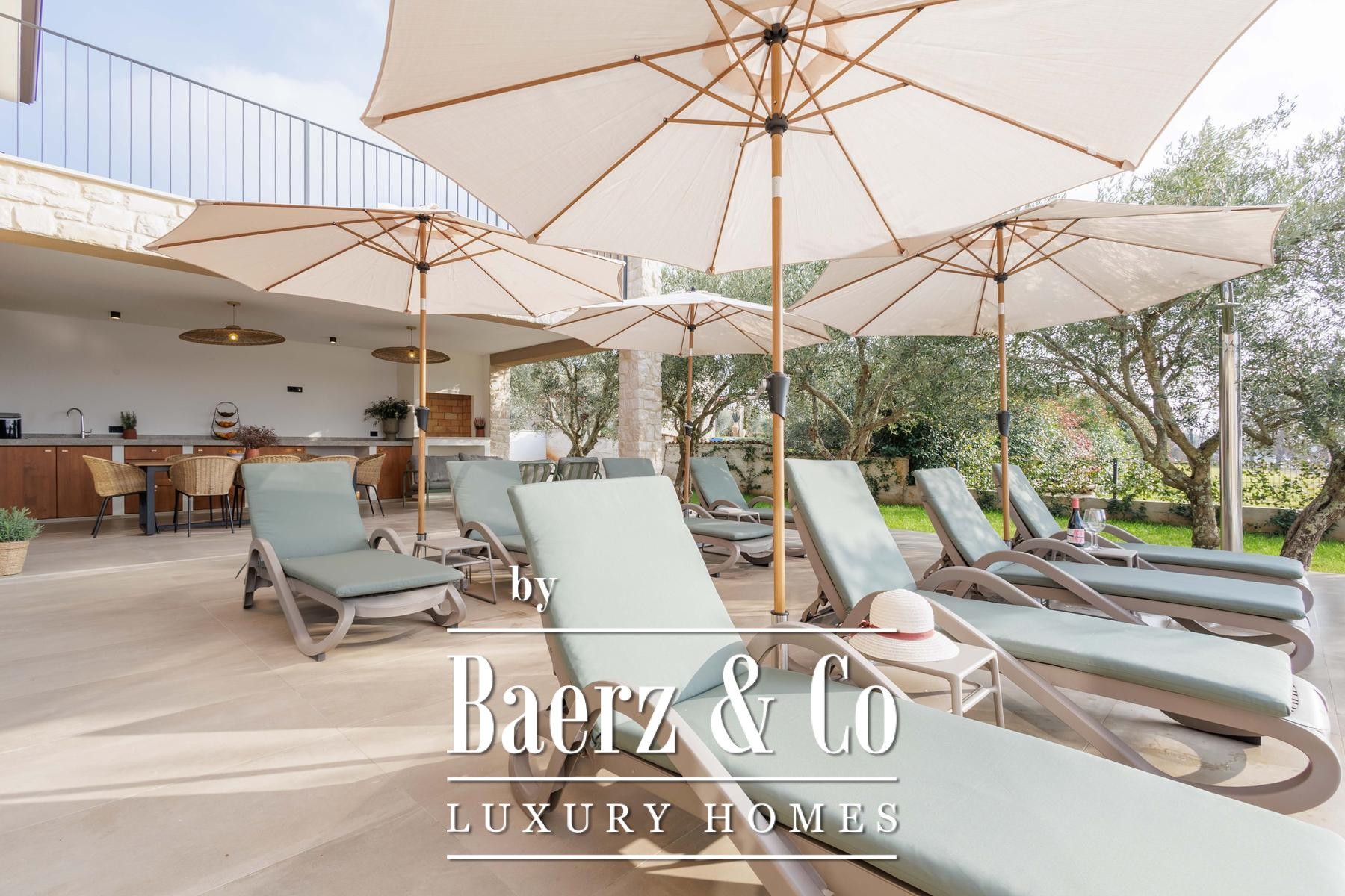 Deze villa, gebouwd volgens hoge standaarden en met een laag energieverbruik, is voorzien van vloerverwarming op basis van een warmtepomp en doorlopende airconditioning. Ook buiten zet het praktische ontwerp zich voort, want de vloerverwarming loopt door tot in de buitenkeuken. De indeling bevat verder twee aparte gastentoiletten voor extra gemak. Het perceel van 1.000 m² biedt optimale privacy dankzij een weelderig gazon, zes olijfbomen en een geautomatiseerd irrigatiesysteem voor eenvoudig onderhoud.