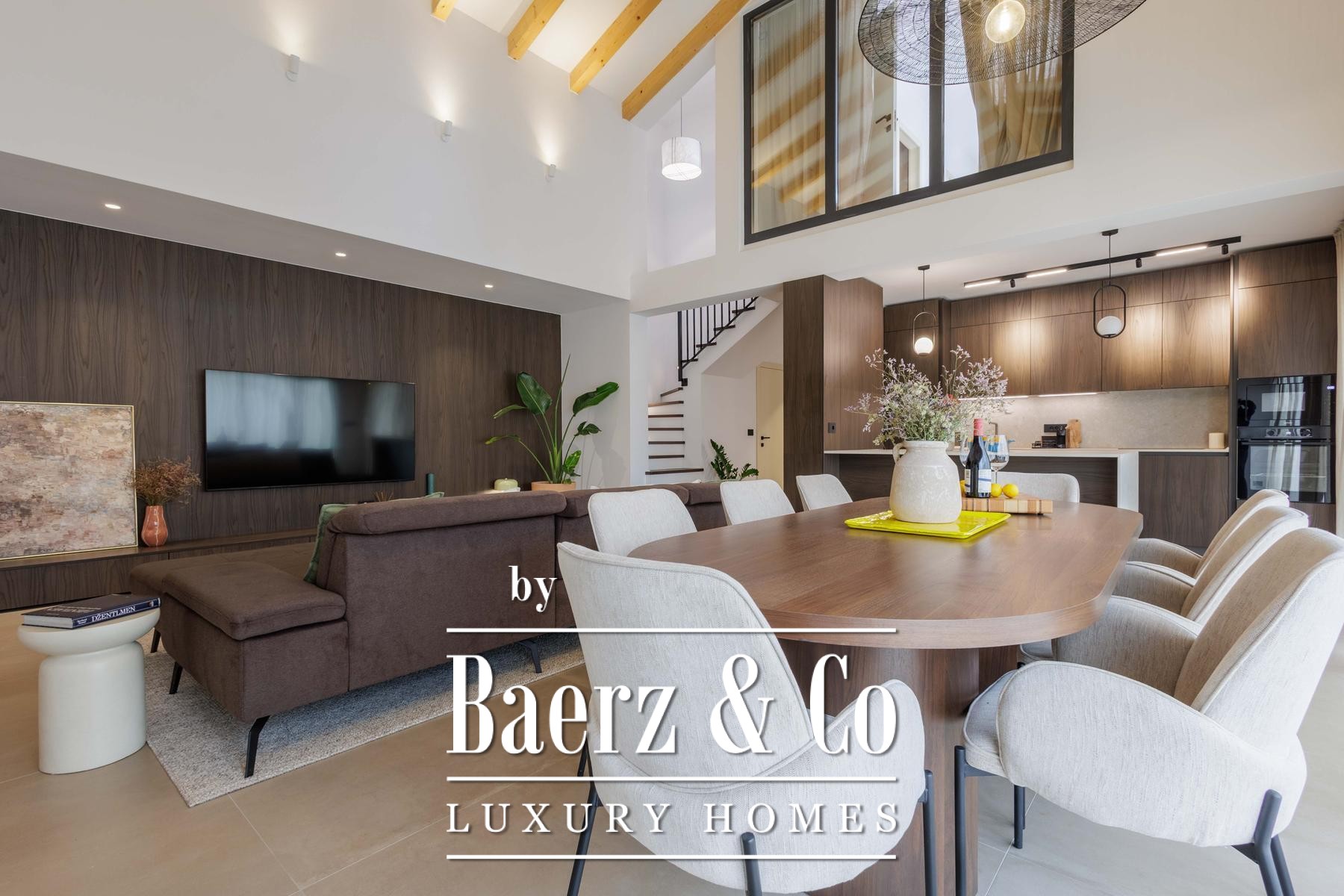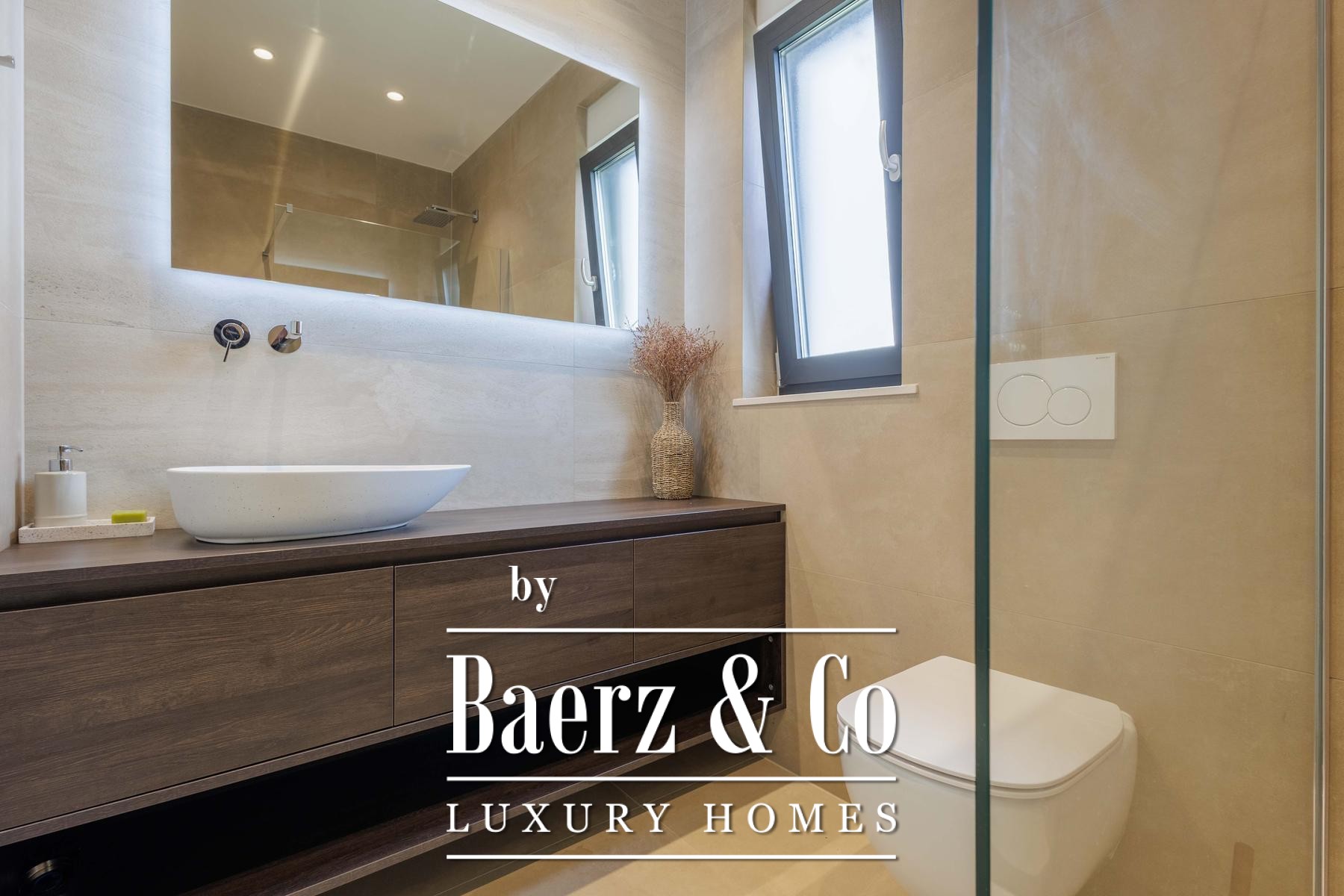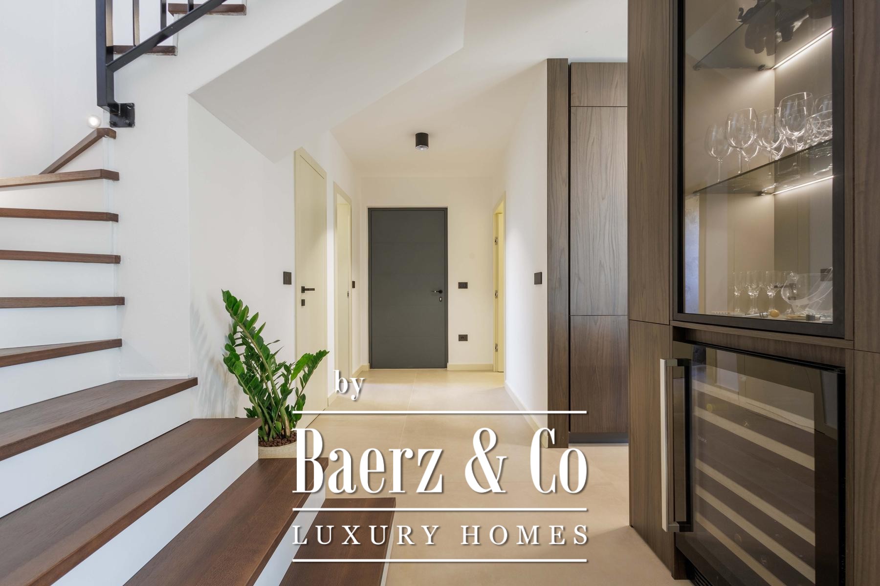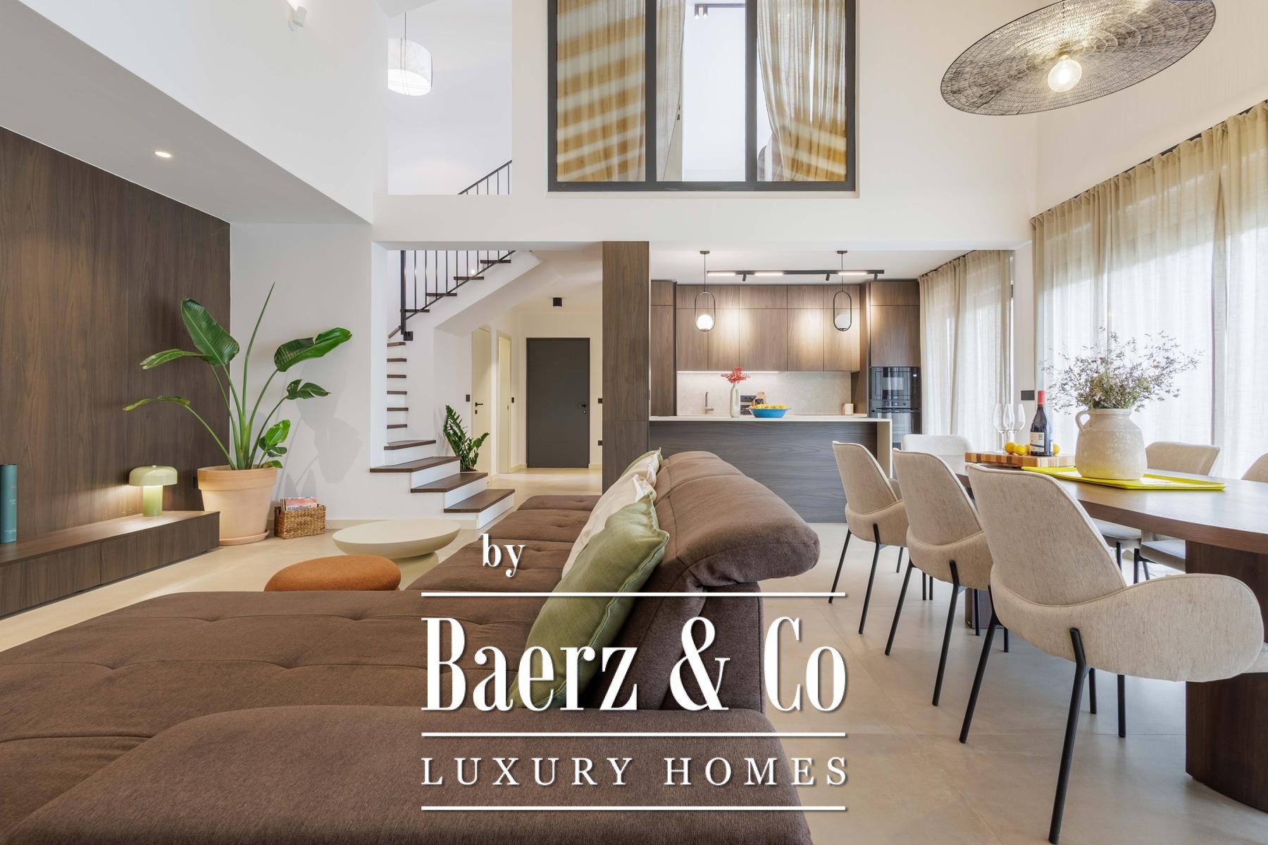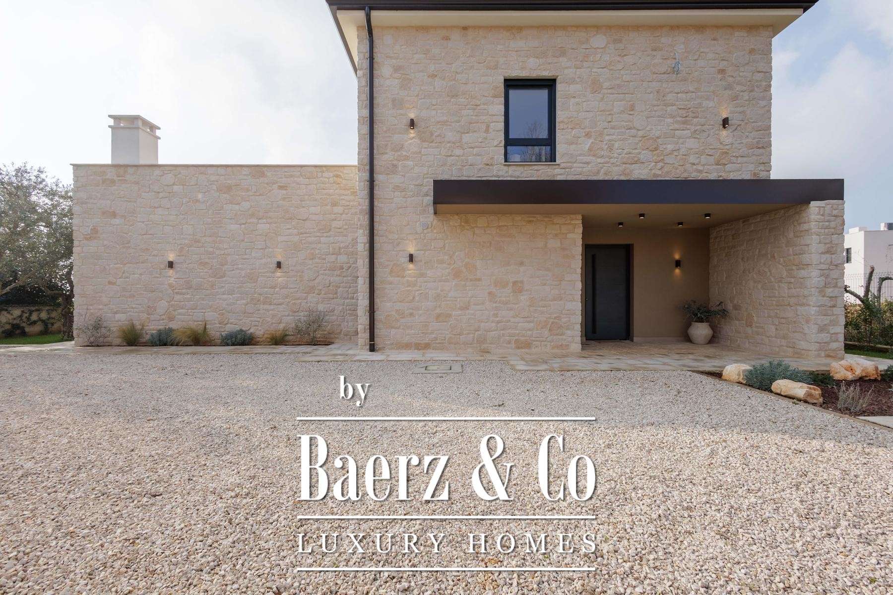 Deze villa, gebouwd volgens hoge standaarden en met een laag energieverbruik, is voorzien van vloerverwarming op basis van een warmtepomp en doorlopende airconditioning. Ook buiten zet het praktische ontwerp zich voort, want de vloerverwarming loopt door tot in de buitenkeuken. De indeling bevat verder twee aparte gastentoiletten voor extra gemak. Het perceel van 1.000 m² biedt optimale privacy dankzij een weelderig gazon, zes olijfbomen en een geautomatiseerd irrigatiesysteem voor eenvoudig onderhoud.