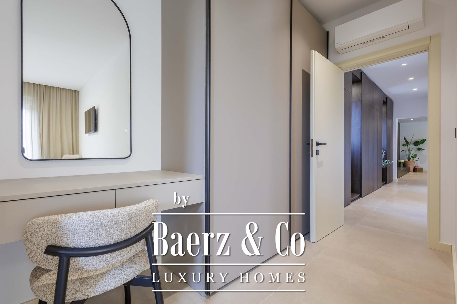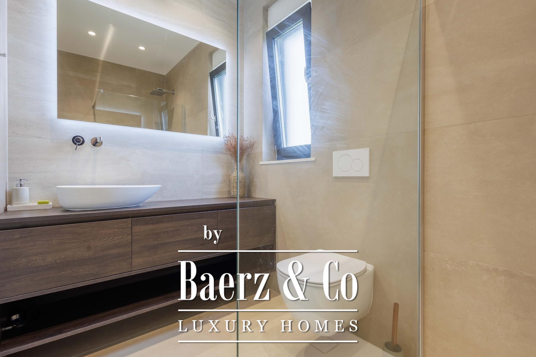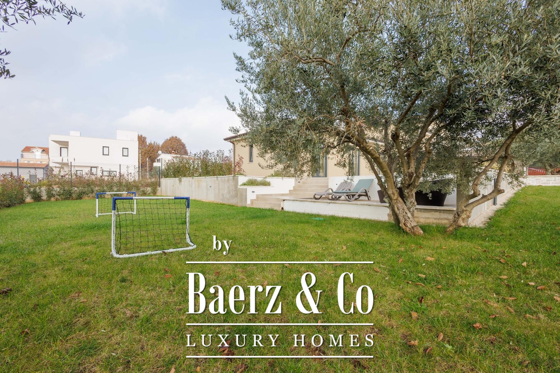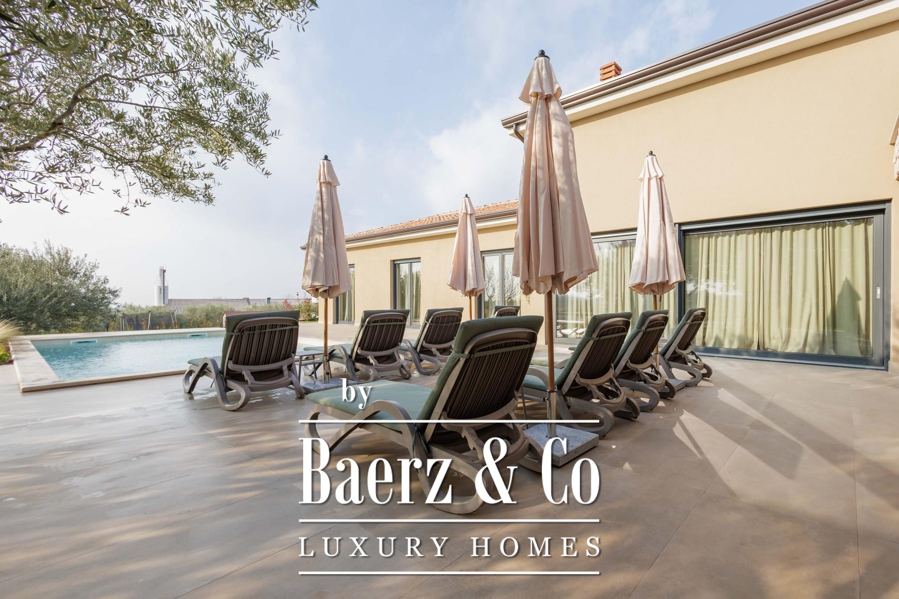 Deze villa, gebouwd volgens hoge standaarden en met een laag energieverbruik, is voorzien van vloerverwarming op basis van een warmtepomp en doorlopende airconditioning. Ook buiten zet het praktische ontwerp zich voort, want de vloerverwarming loopt door tot in de buitenkeuken. De indeling bevat verder twee aparte gastentoiletten voor extra gemak. Het perceel van 1.000 m² biedt optimale privacy dankzij een weelderig gazon, zes olijfbomen en een geautomatiseerd irrigatiesysteem voor eenvoudig onderhoud.