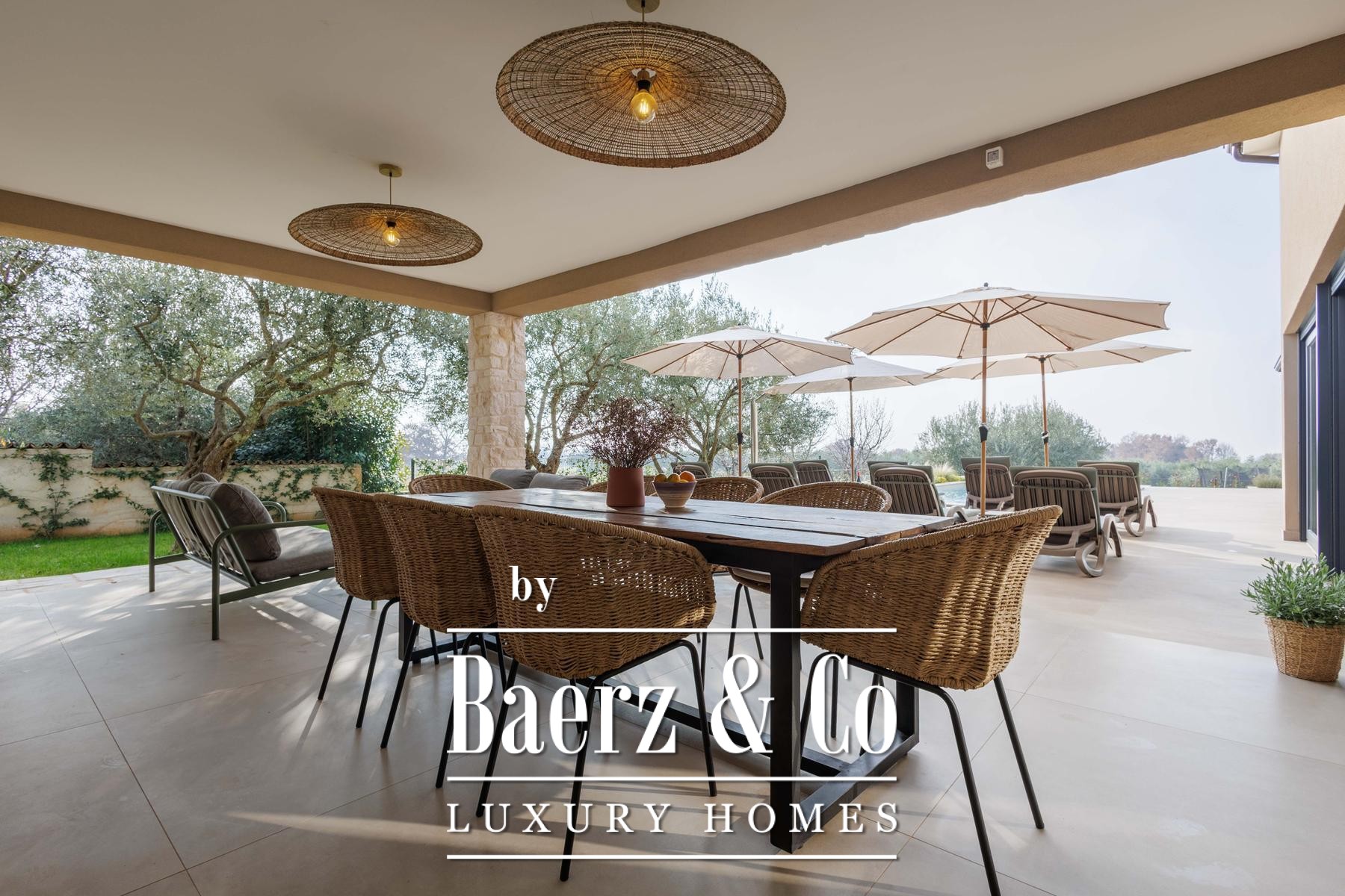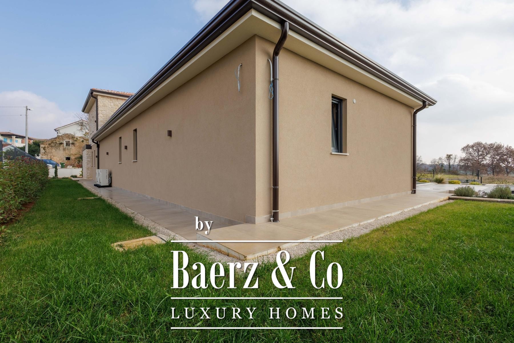 Villa Kaštelir-Labinci verankert hedendaags design in de authentieke Istrische traditie. Deze villa in Kaštelir-Labinci biedt een ingetogen mix van regionale eigenheid en modern comfort, gelegen in een van de meest begeerde locaties van West-Istrië. De woning beschikt over maar liefst 221 m² aan binnenruimte, verdeeld over twee verdiepingen, met vier slaapkamers die elk over een eigen badkamer beschikken. Drie slaapkamers zijn gesitueerd op de begane grond, wat een soepele interne doorstroming garandeert, terwijl de master bedroom het gehele bovenverdieping beslaat, inclusief een privébadkamer, inloopkast en een royaal terras met panoramisch uitzicht op zee en het groene landschap.