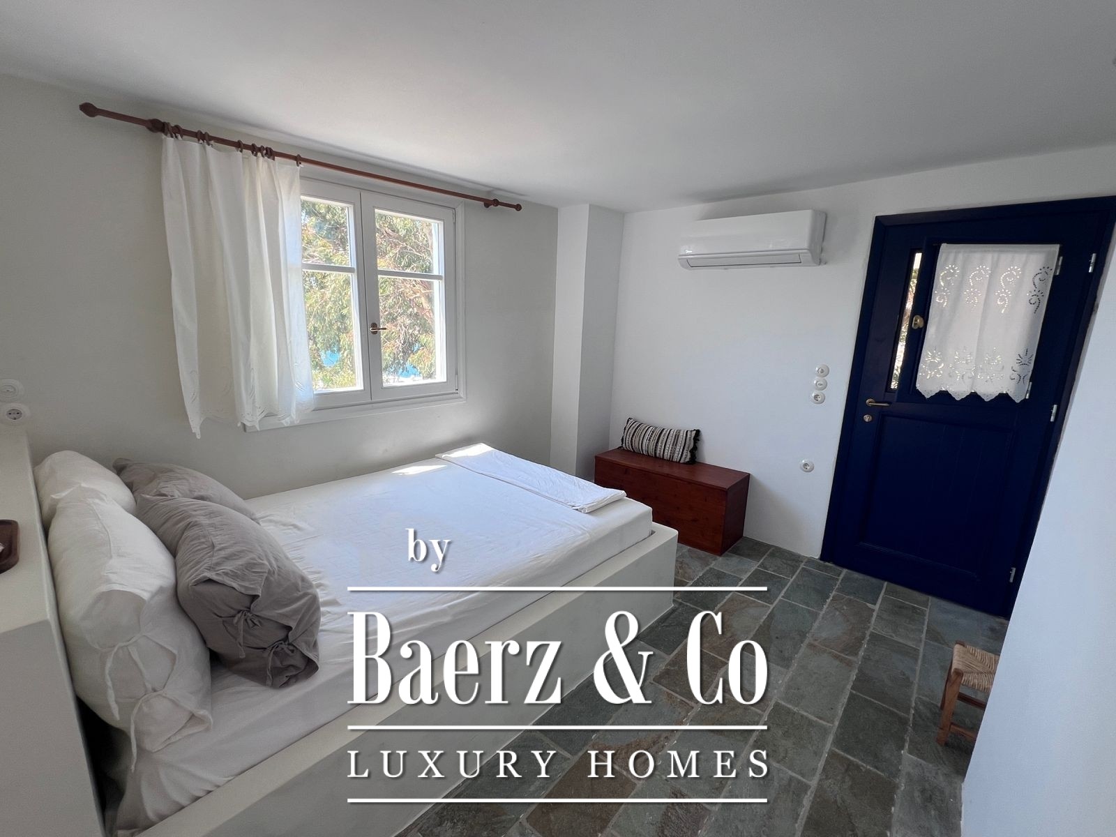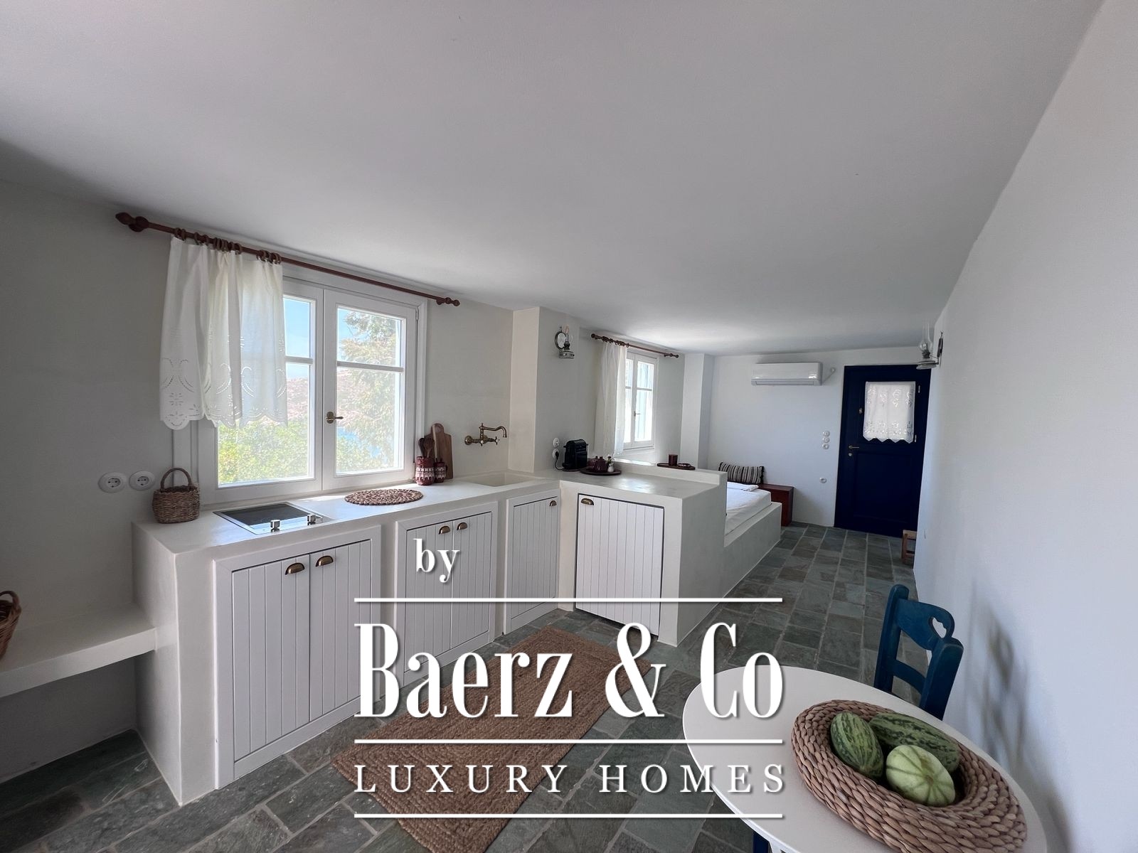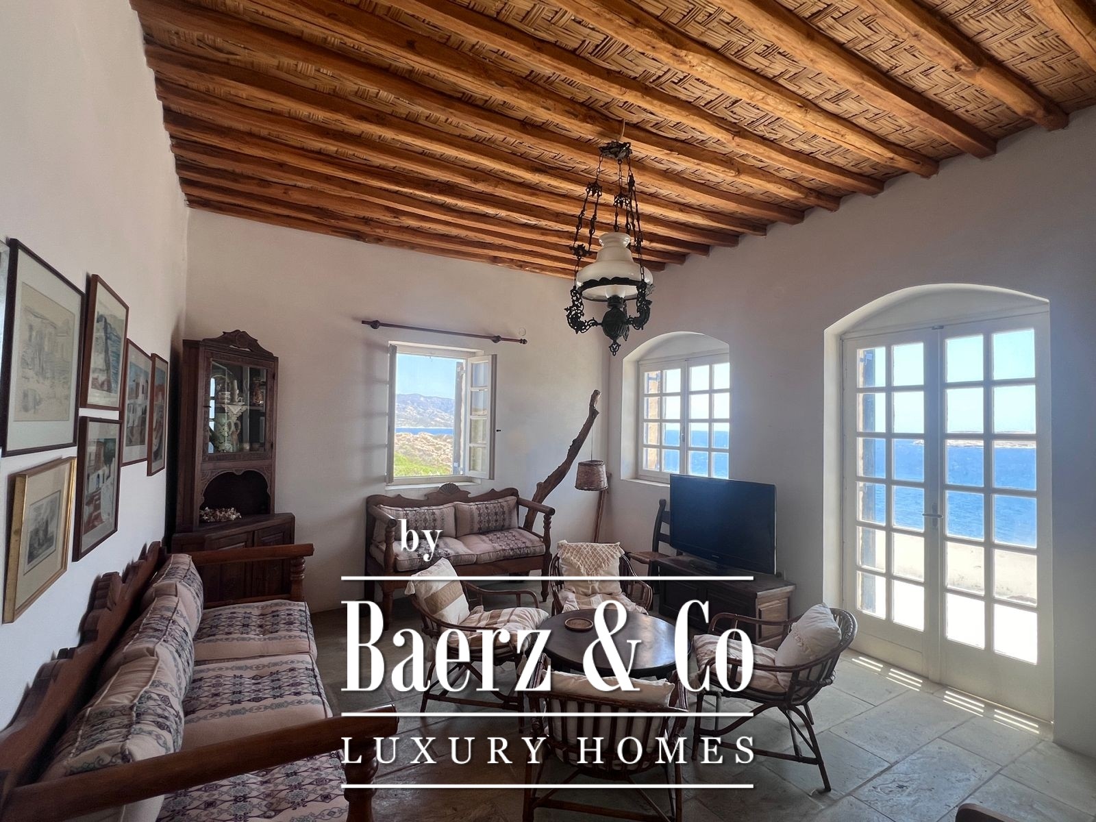 Momenteel ondergaat de woning een grondige renovatie met respect voor haar historische identiteit. De woning wordt voorzien van op maat gemaakte houten ramen en deuren, geavanceerde energie-efficiënte beglazing en maritieme bouwmaterialen van hoge kwaliteit, die duurzaamheid garanderen tegen het Egeïsche klimaat terwijl het authentieke karakter behouden blijft.