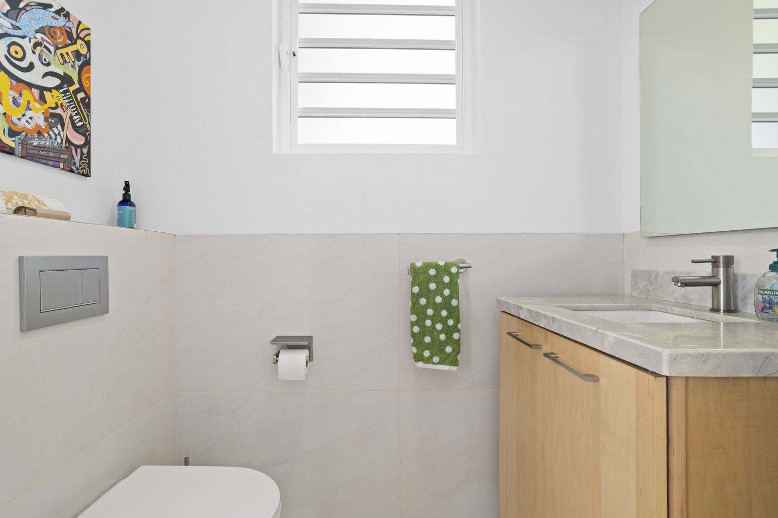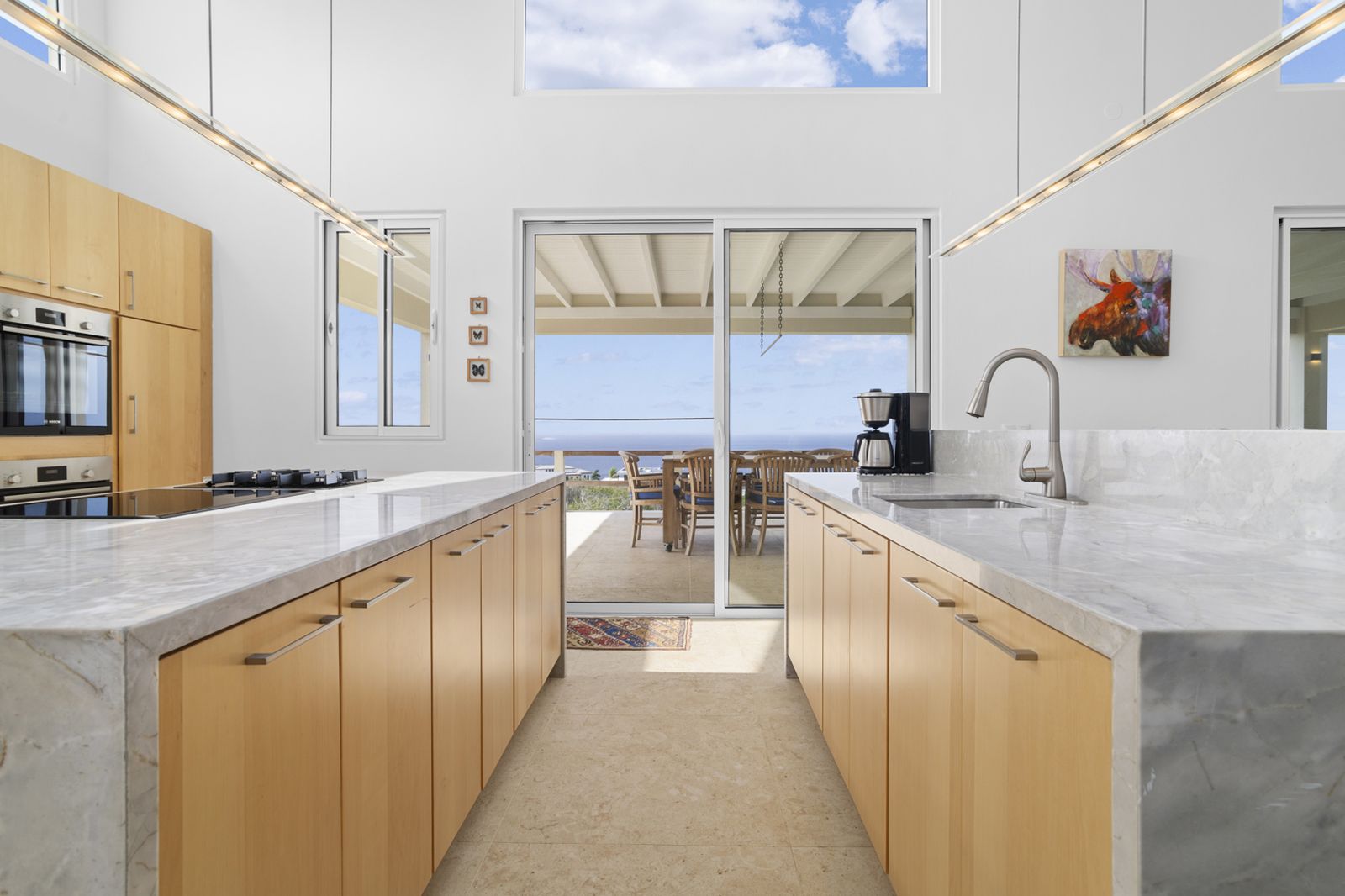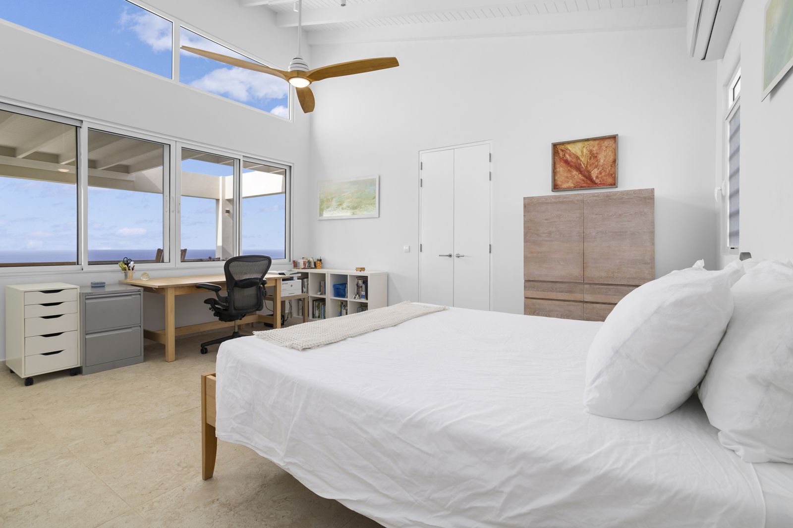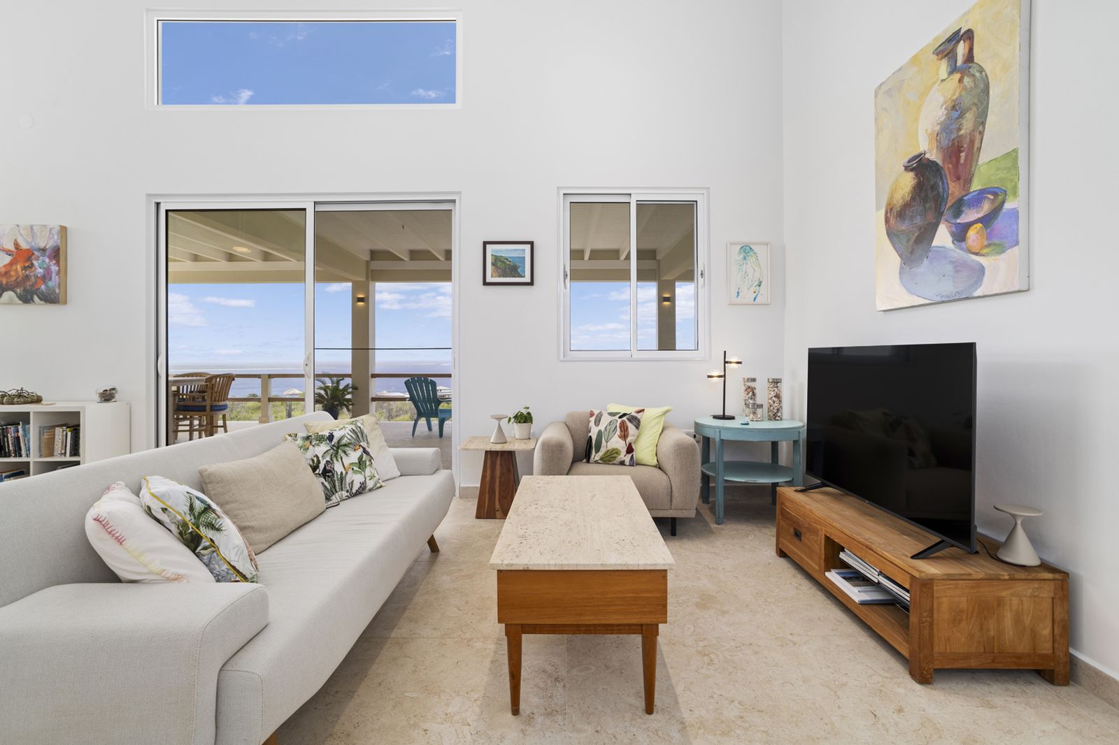 De woonkamer voelt open en luchtig aan en is uitgerust met airconditioning en plafondventilatoren voor optimaal comfort gedurende het hele jaar. De elegante slaapkamer beschikt over grote ramen met uitzicht op het terras en de oceaan, evenals een eigen badkamer met dubbele wastafel en douche.