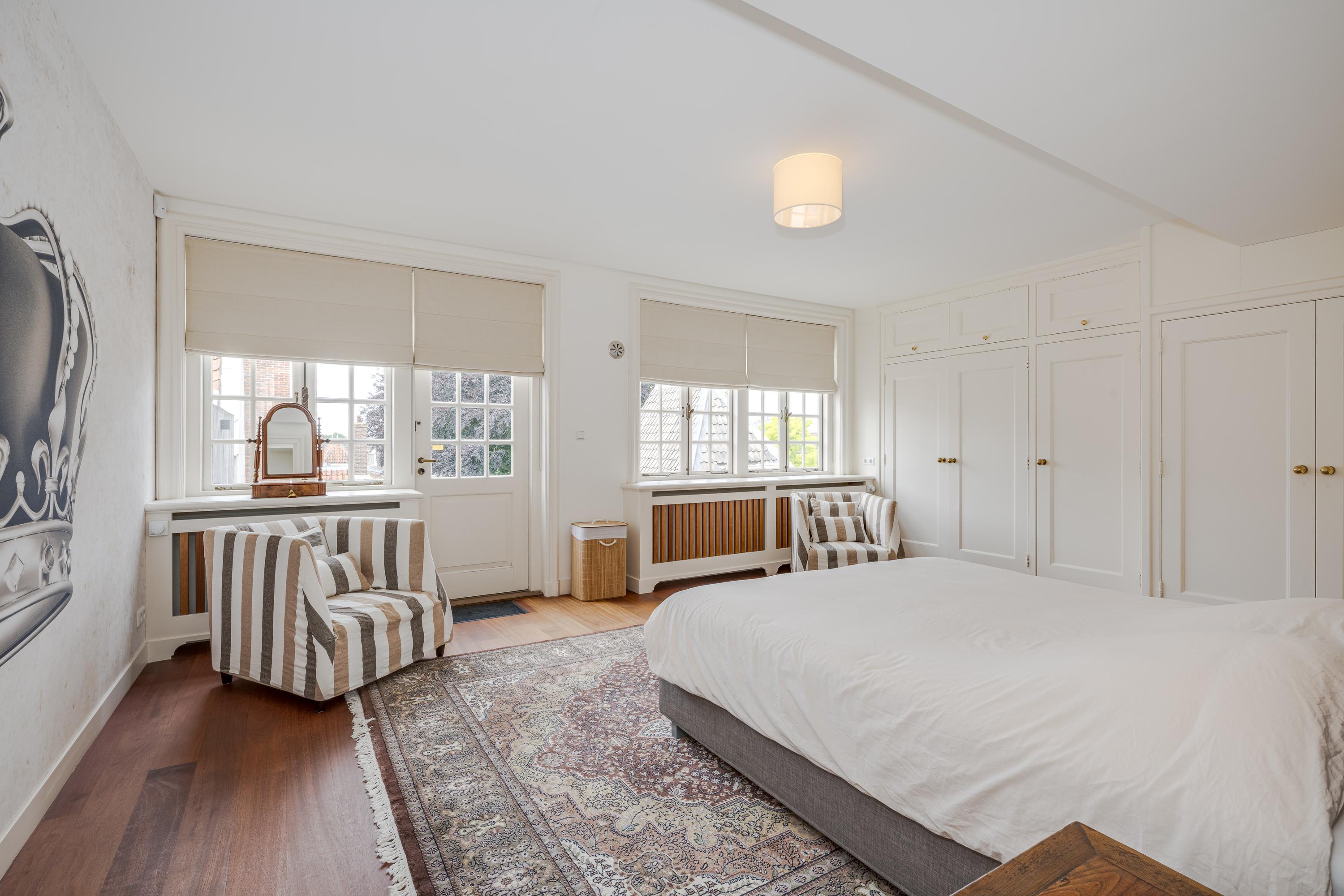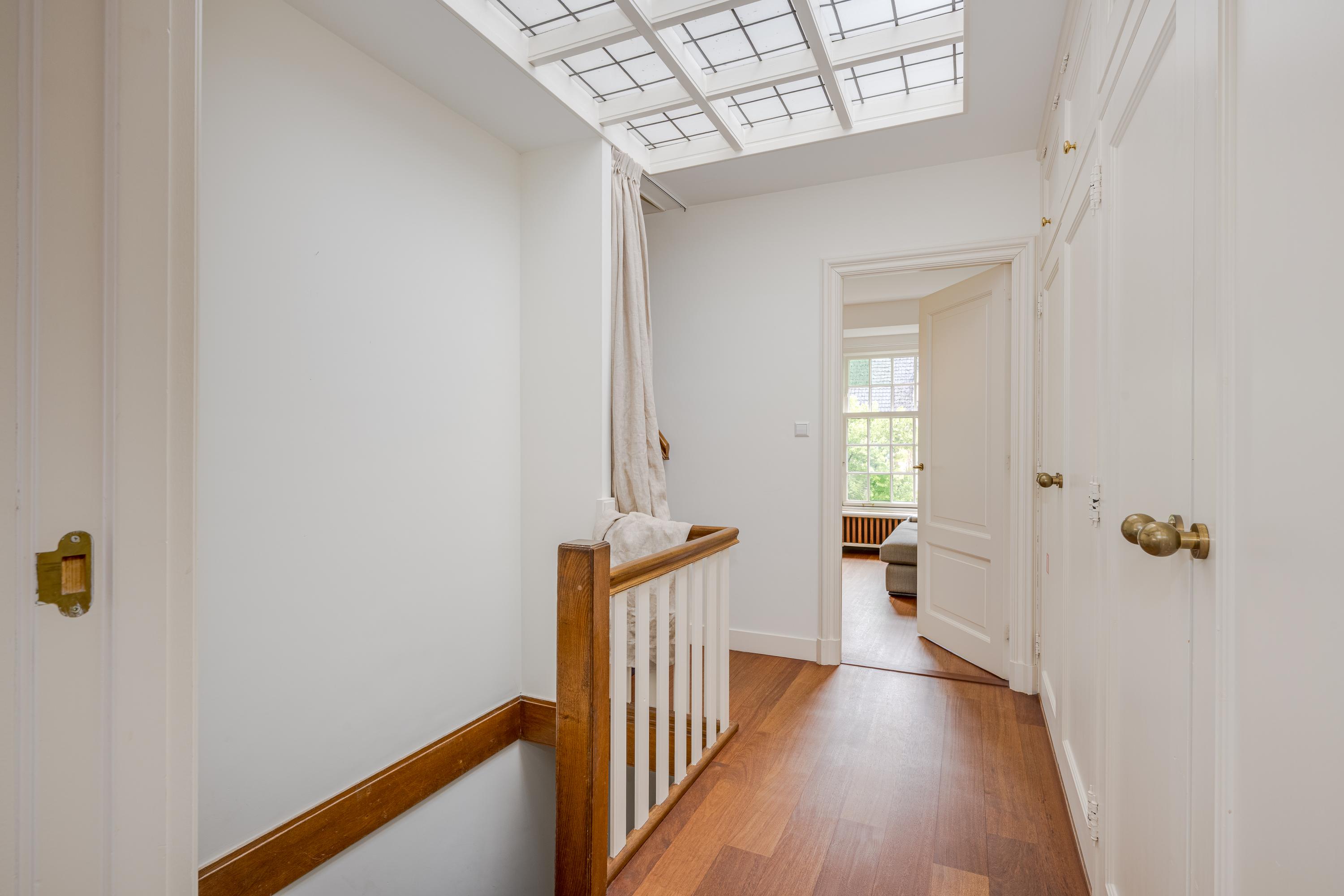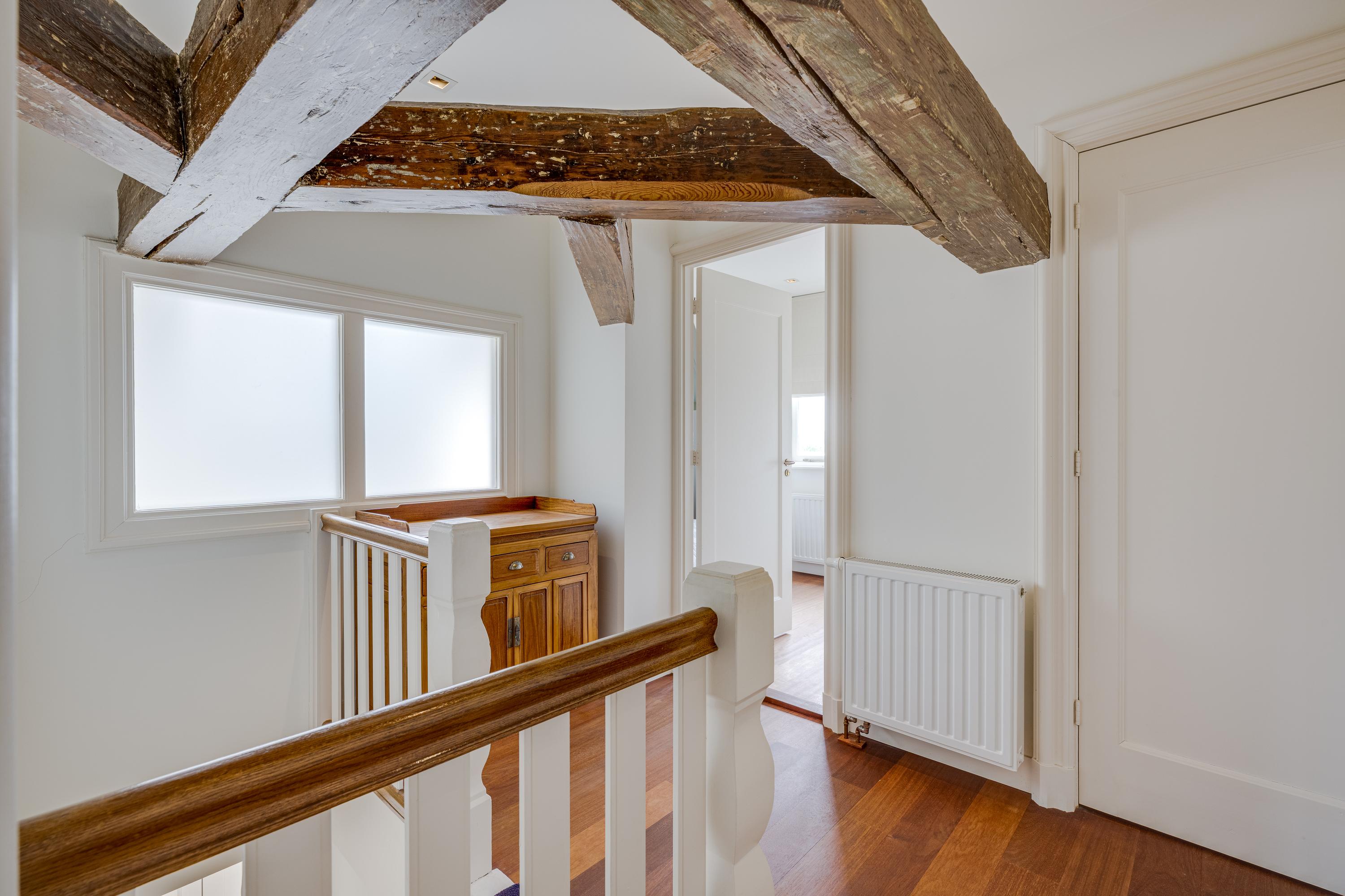 Overloop met kastenwand. Aan de achterzijde de zeer ruime ouderslaapkamer met eigen dakterras, kastenwand en badkamer en suite. Deze badkamer staat ook in verbinding met de ruime kamer aan de voorzijde. Deze is thans in gebruik als werkkamer maar, is ook uitermate geschikt als slaapkamer.