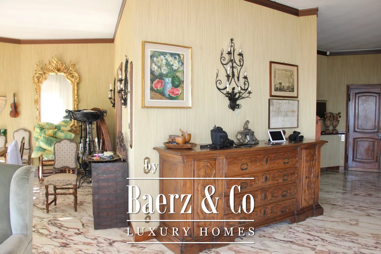 De eetkamer en dinette, verbonden met de keuken, bieden een warme en gezellige omgeving, perfect voor momenten van samenzijn. Het slaapgedeelte, gelegen op dezelfde verdieping, herbergt vier slaapkamers, waarvan drie met een spectaculair uitzicht op het meer, en twee badkamers. Fijne details, zoals de parketvloeren en het Calacatta marmer in de hal en woonkamer, versterken dit verblijf met tijdloze charme nog meer.