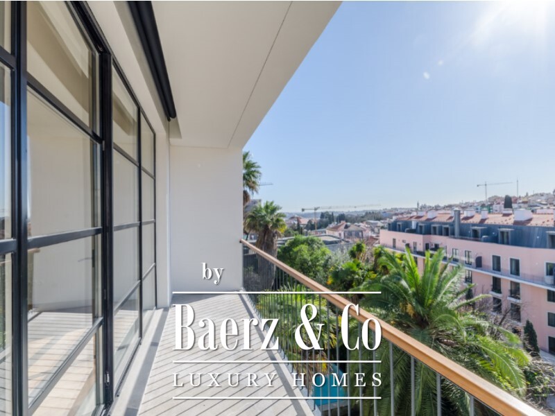 Beide slaapkamers beschikken over een eigen badkamer, wat comfort en zelfstandigheid garandeert. Een gastenbadkamer voegt extra verfijning toe. Het kroonjuweel van deze woning is het privé penthouse-dakterras van 120 m² met zwembad en panoramisch uitzicht over Lissabon. Zacht stadlicht strijkt over de horizon en creëert een uitzonderlijke oase boven het ritme van de stad. Eén parkeerplaats benadrukt het stedelijke gebruiksgemak van dit pand.