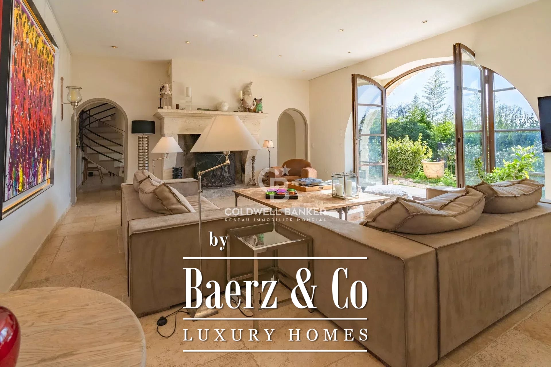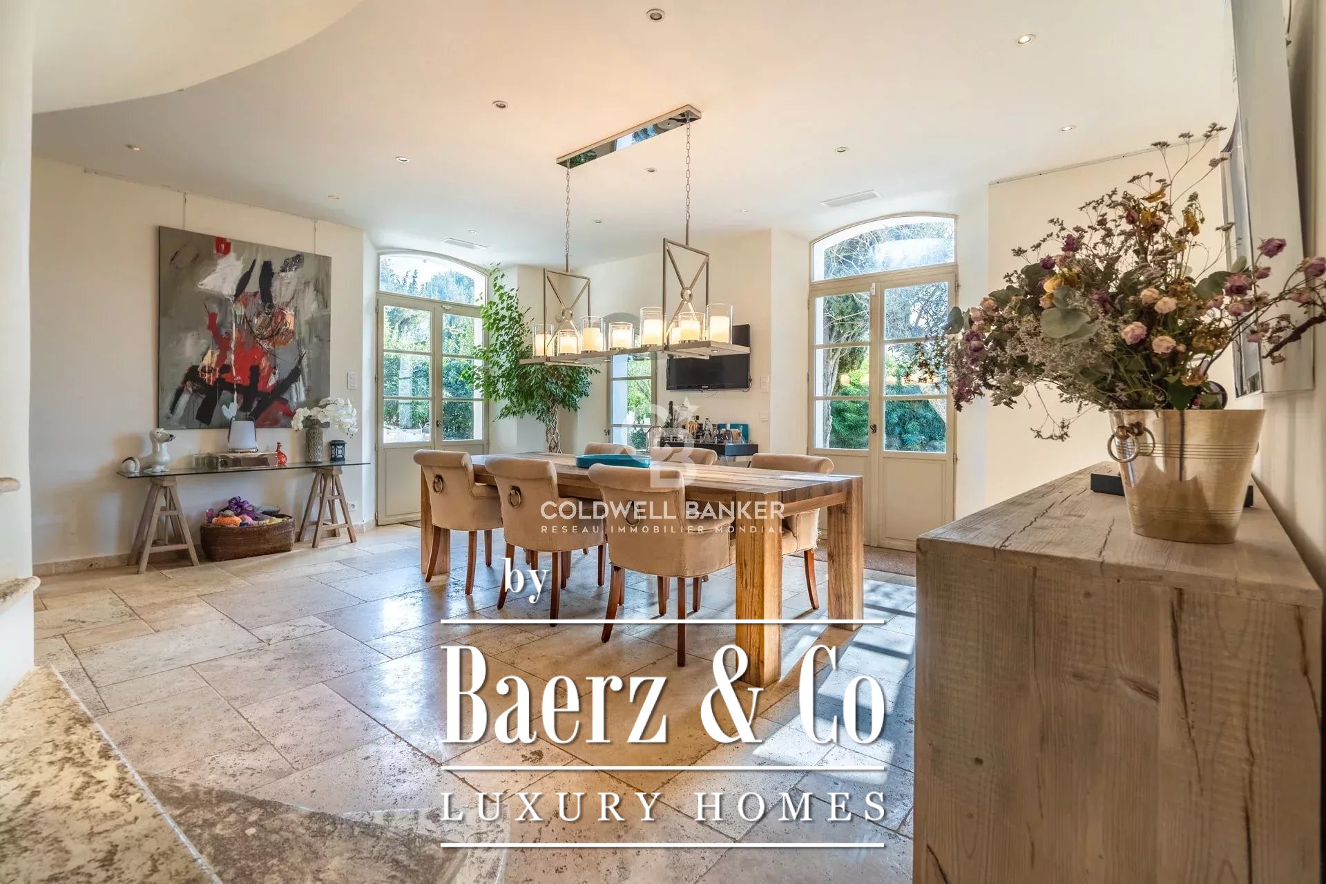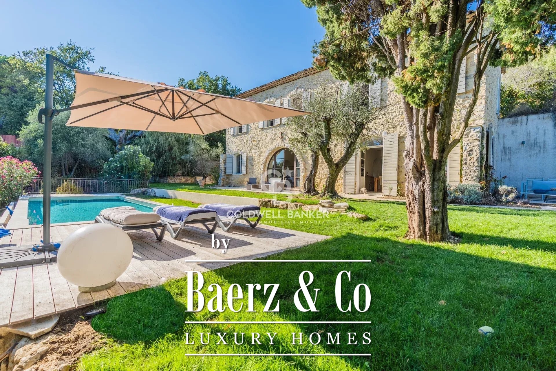 De stenen bastide in Mougins bevindt zich in de gewaardeerde wijk Les Colles, waar een zorgvuldige renovatie nieuw leven blaast in deze woning van 200 m². Deze residentie verenigt het klassieke Provençaalse karakter met doordachte modernisering en ligt in een aangelegde tuin van 1.950 m² met vrij uitzicht op het historische dorp Mougins.