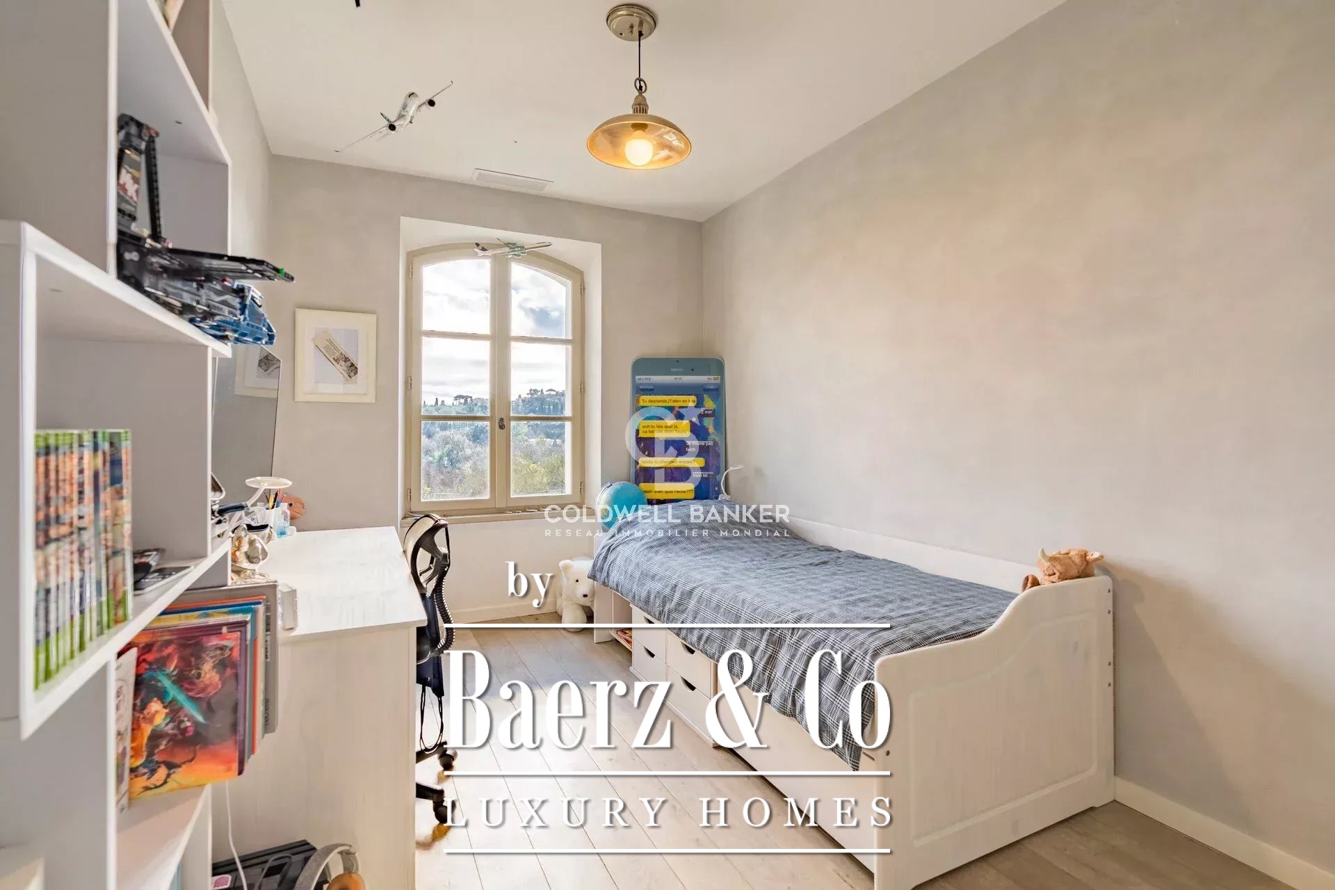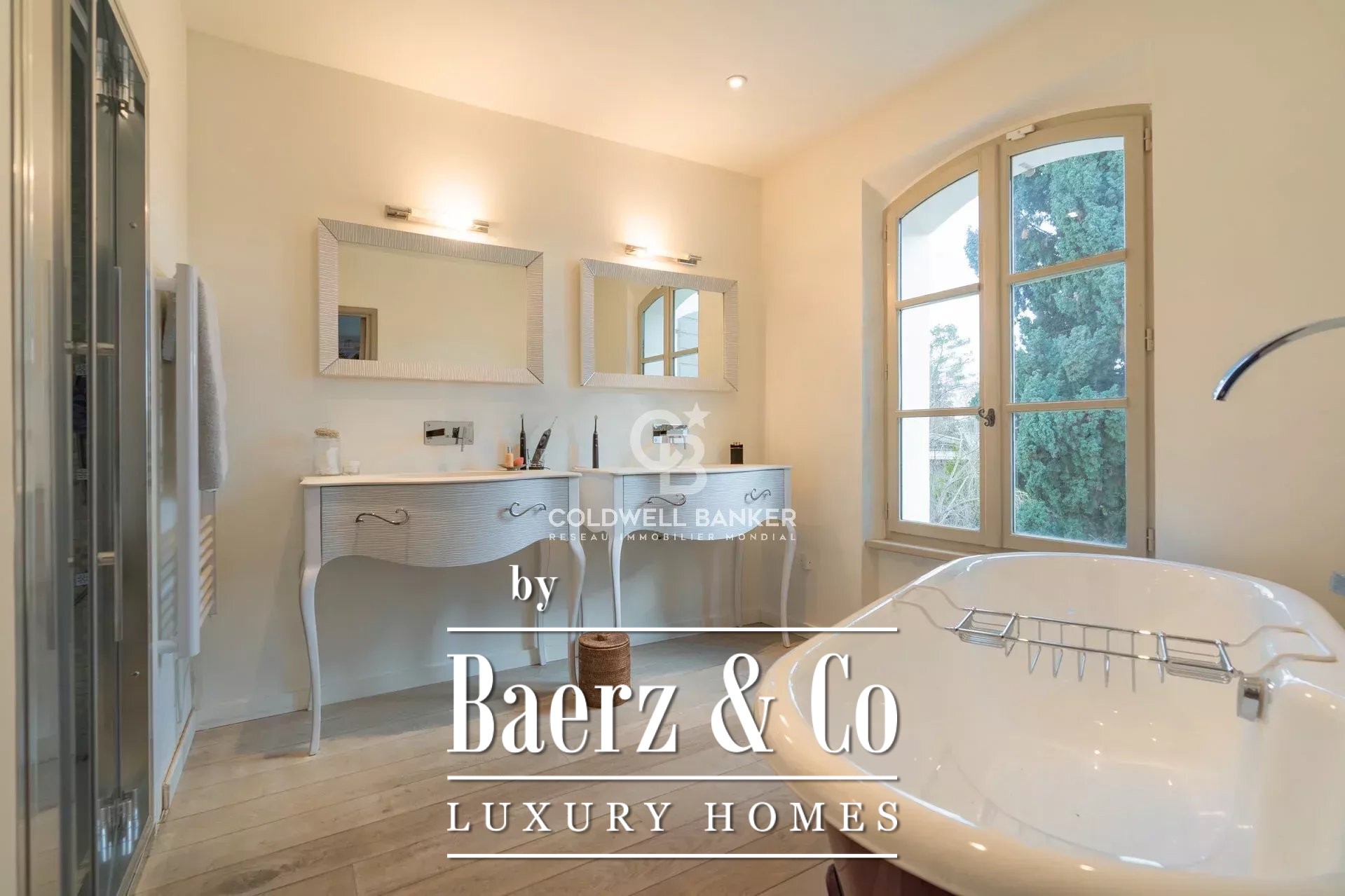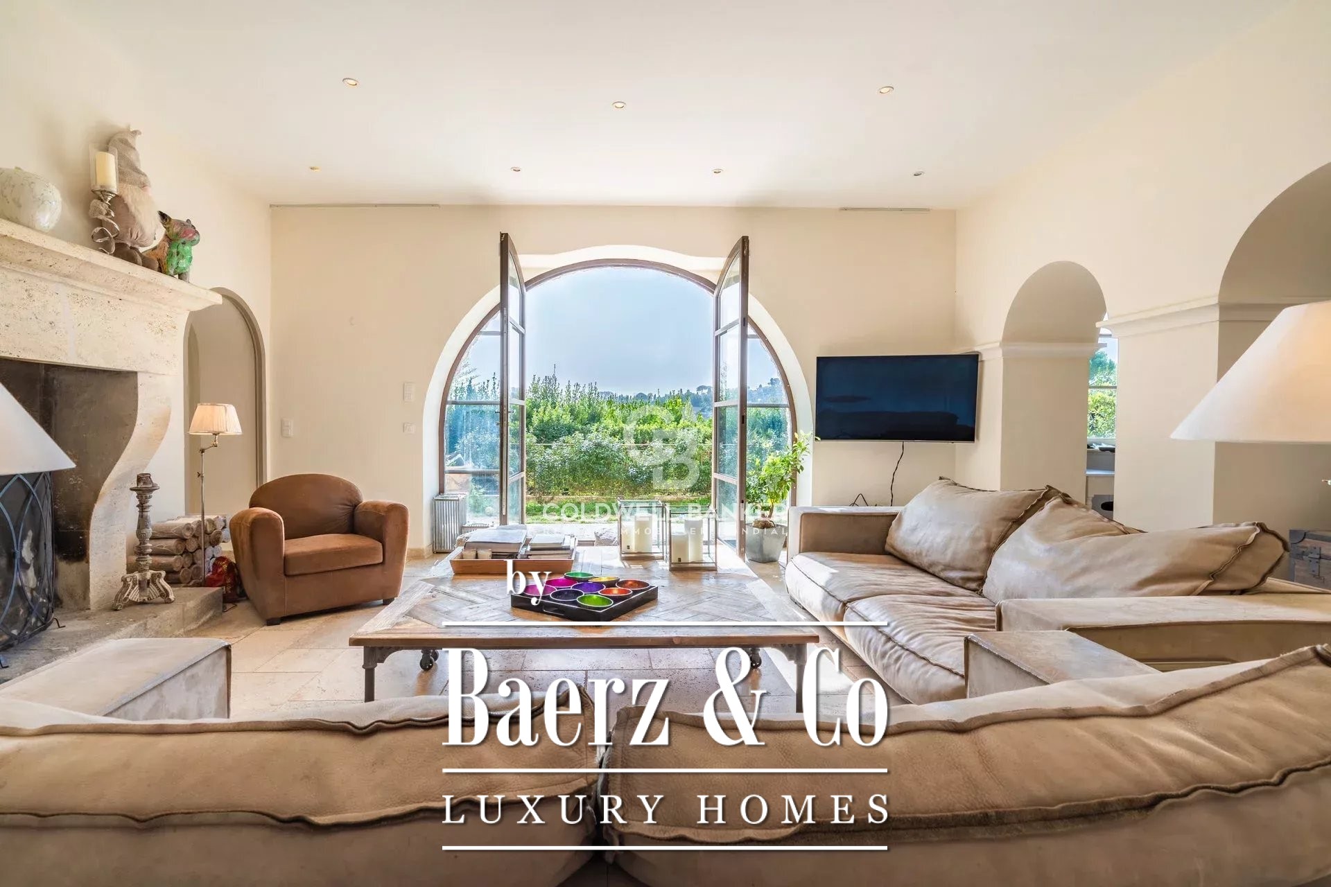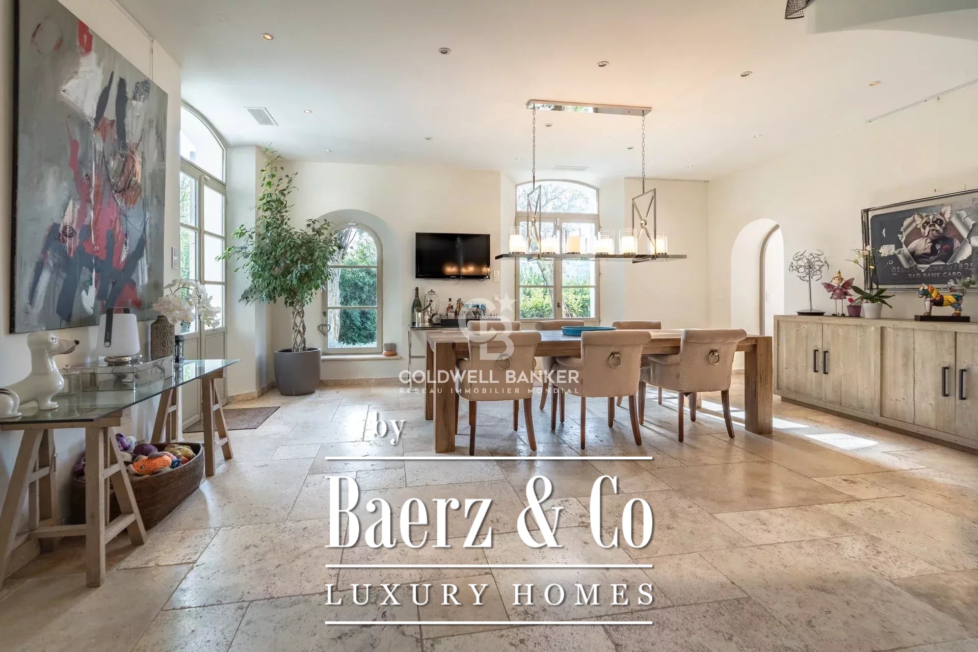 De stenen bastide in Mougins bevindt zich in de gewaardeerde wijk Les Colles, waar een zorgvuldige renovatie nieuw leven blaast in deze woning van 200 m². Deze residentie verenigt het klassieke Provençaalse karakter met doordachte modernisering en ligt in een aangelegde tuin van 1.950 m² met vrij uitzicht op het historische dorp Mougins.