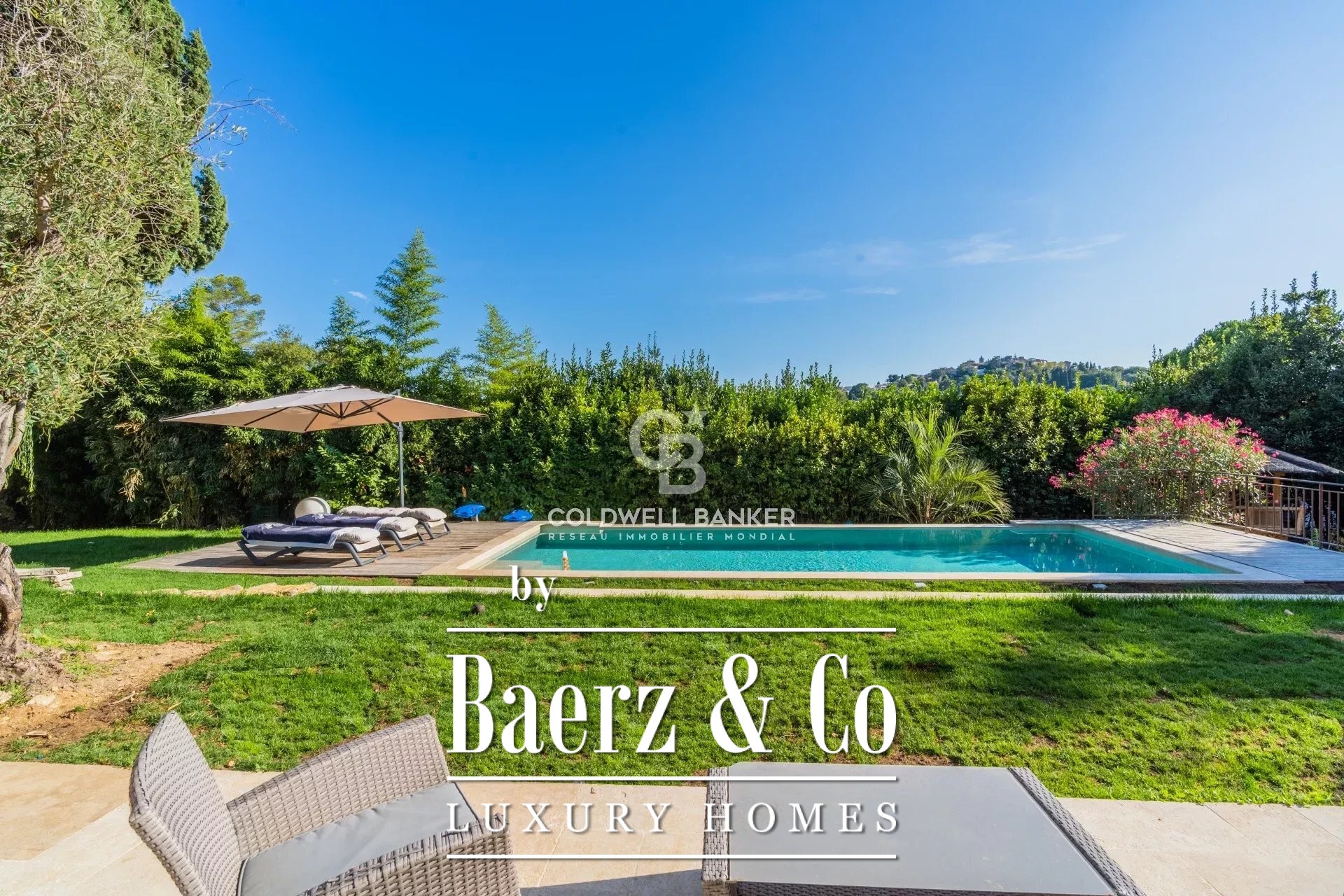 De tuin, overwegend gazon, is ontworpen voor lange ontspannen middagen en beschikt over een nieuw zwembad van 10 bij 4 meter, omgeven door houten zonneterrassen. Praktische voorzieningen als dubbele beglazing, airconditioning, alarmsysteem en een elektrisch toegangshek zorgen voor zowel discretie als comfort. Privéparkeerplaatsen bieden ruimte aan meerdere auto’s. De stenen bastide van Mougins is per eind december beschikbaar en biedt een harmonieus evenwicht tussen rust en verbondenheid met het dorp.
