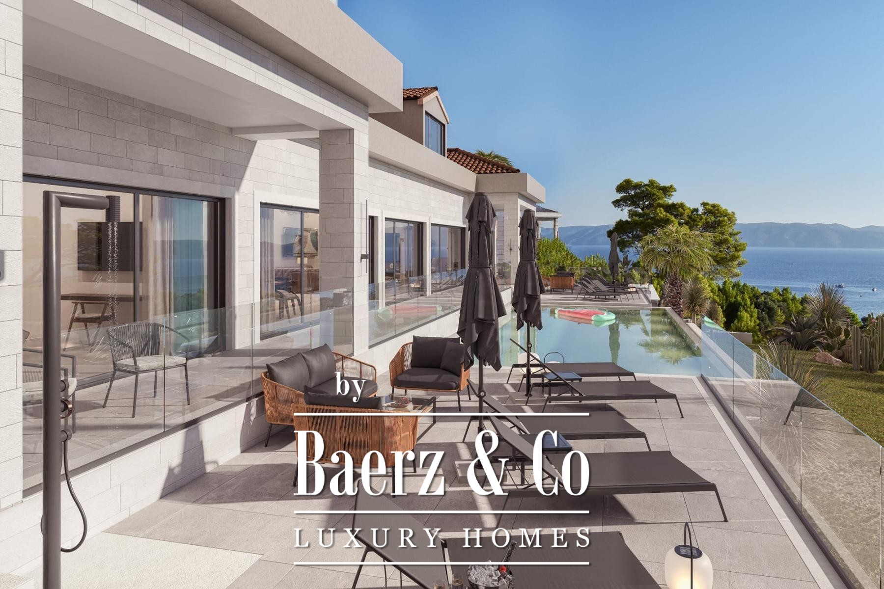 De hoofdresidentie beschikt over zes slaapkamers en zes badkamers, een doordacht ingedeelde keuken, een eetruimte en een stijlvolle woonkamer. Natuurlijke ruimtelijkheid en comfort komen overal in het huis tot uiting, versterkt door een zolderruimte van 250 m² voor extra flexibiliteit. Buiten kijkt een verwarmd infinity zwembad van 50 m² uit over de Adriatische Zee, terwijl een binnenbad van gelijke grootte, sauna, jacuzzi en gym alle seizoenen ontspanning bieden. Een garage, speelkamer en wasruimte benadrukken het doordachte luxegevoel.