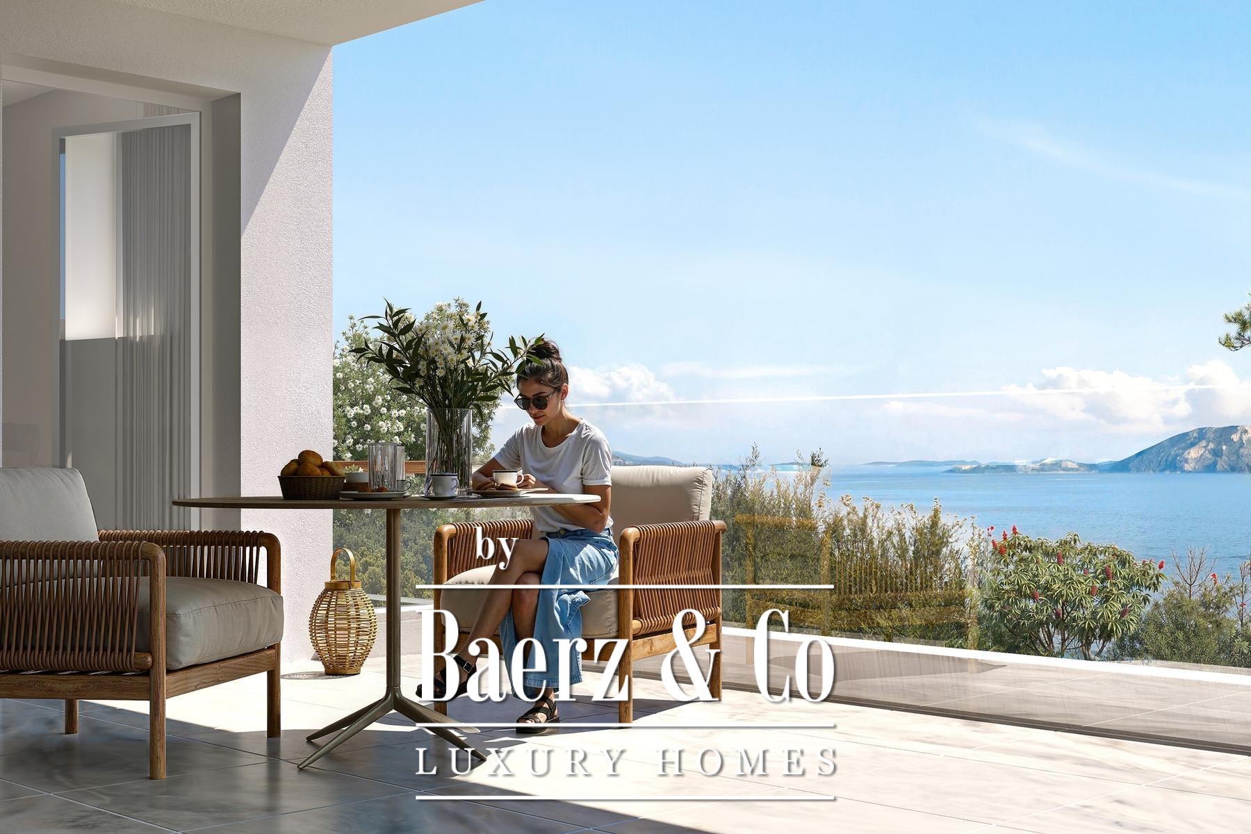 two separate balconies each measuring 14.38 m² and a terrace of 11.76 m² ideal for relaxing and enjoying the sea view, additional guest toilet 2.02 m² and a storage room 3.73 m².