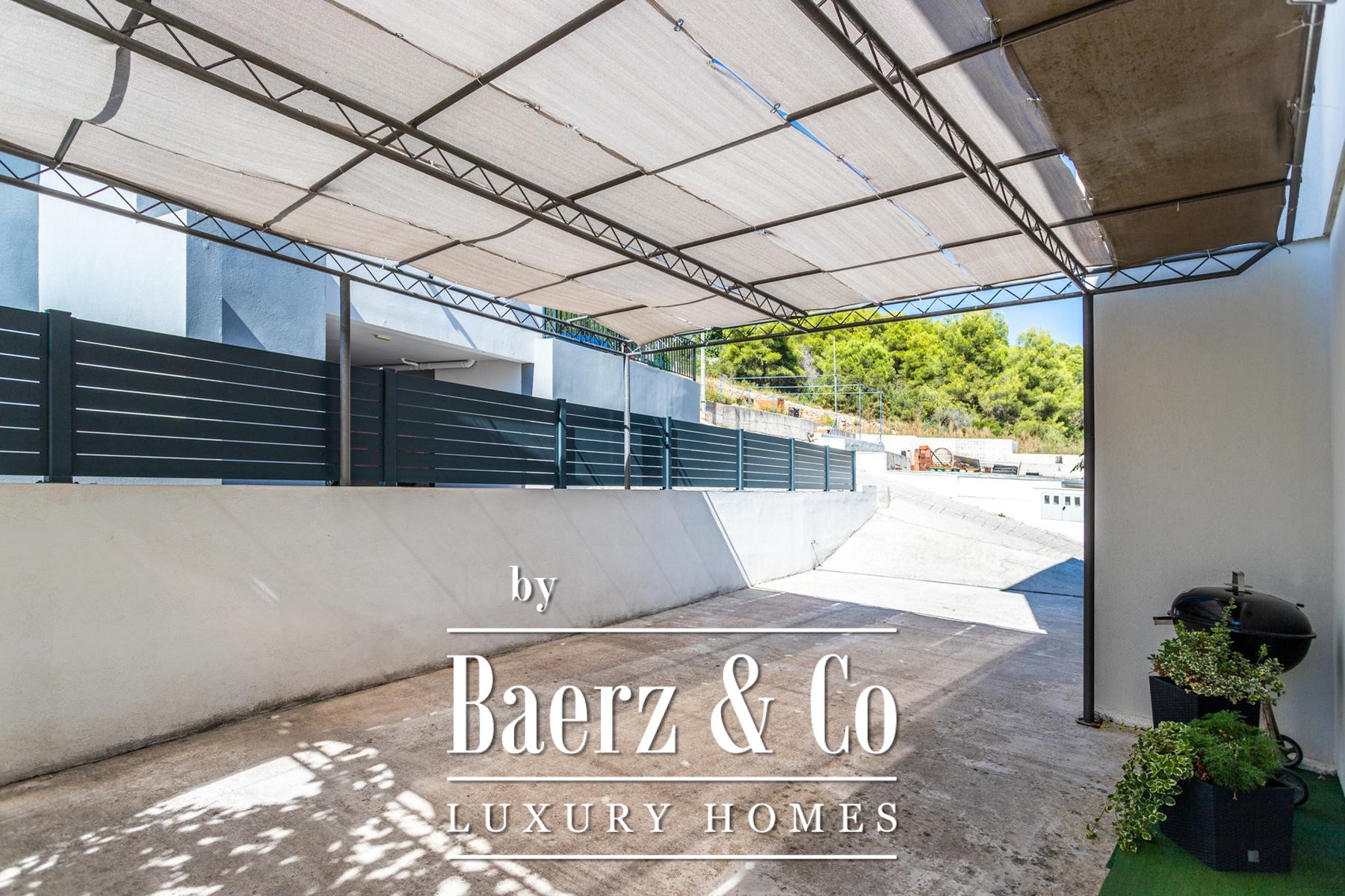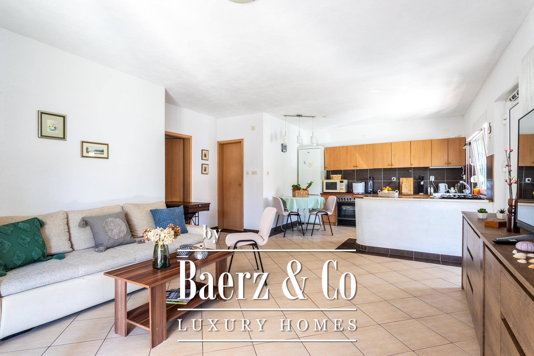 • Outdoor space features a well-maintained Mediterranean garden with olive trees, rosemary, grapevines, palms, and a variety of flowers, creating an ideal setting for relaxation. There is also an outdoor kitchen equipped with a fireplace, sink, and oven - perfect for gatherings in the shade of the grapevine.The apartments face east, south, and west, ensuring plenty of sunlight throughout the day, while the higher floors offer beautiful sea views.Five parking spaces are available directly next to the house.Further information available upon request.
