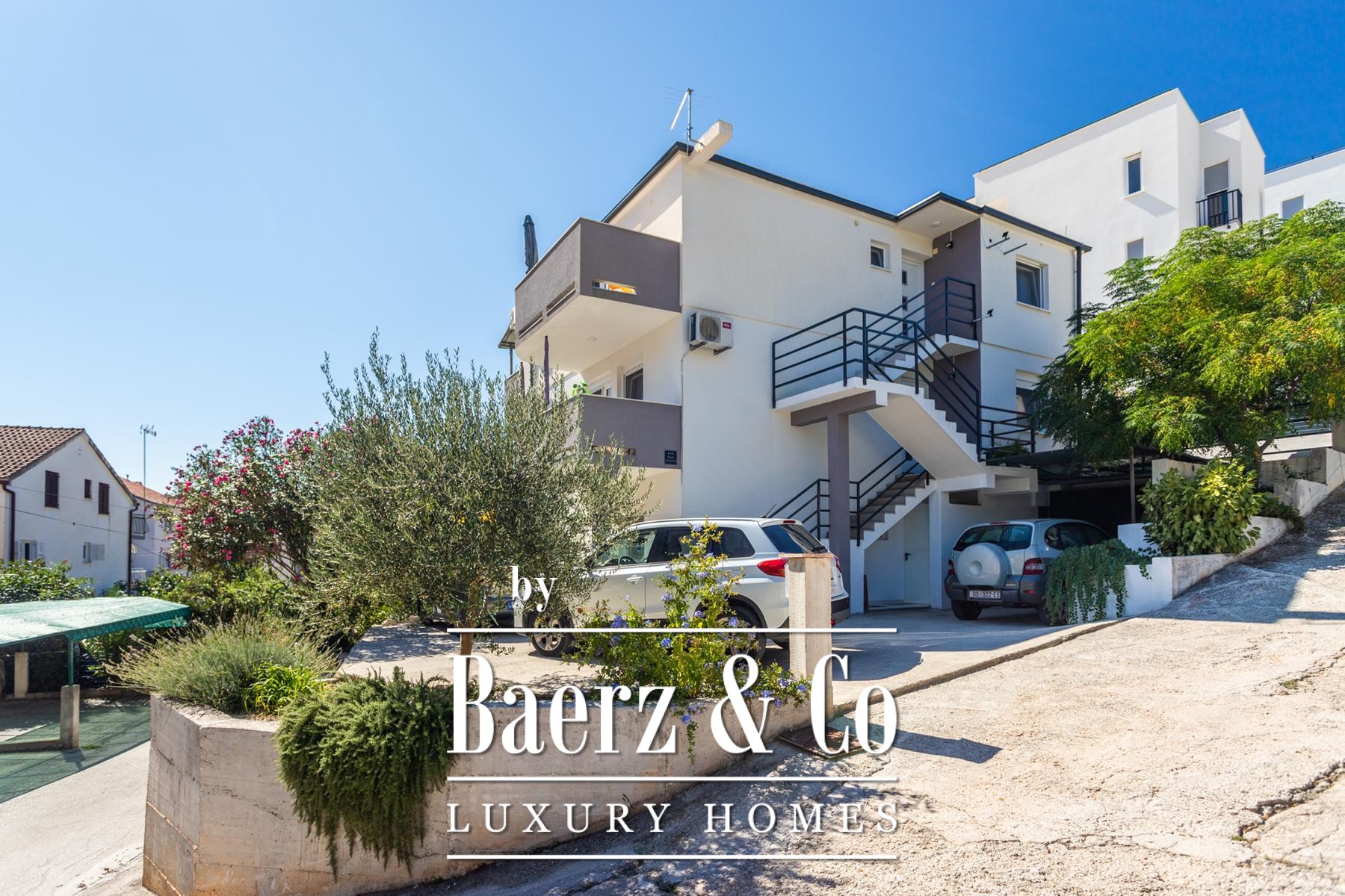 Čiovo, Okrug Gornji - apartment house located on a plot of land measuring 420 m², only 80 m from the sea.It is divided into four fully equipped apartments, which allows the continuation of the already established and profitable tourist rental.Layout: