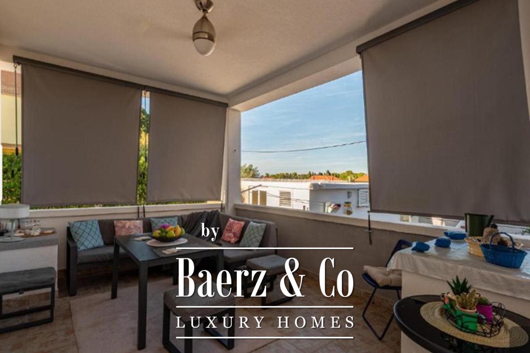 De begane grond bestaat uit een open woon-, eet- en keukengedeelte, drie slaapkamers, een badkamer, een gastentoilet en een royaal terras dat zich uitstekend leent voor buiten dineren. Het appartement op de eerste verdieping is 50 m² groot en beschikt over twee slaapkamers, een badkamer en een moderne keuken met toegang tot een overdekt terras met uitzicht op zee en Ošljak. De derde woning, een maisonette van 118 m², bevindt zich in hoogwaardige casco staat. De hoofdverdieping opent naar een balkon met zeezicht en het dakterras biedt panoramische uitzichten over het water, Ošljak en de stad Zadar.