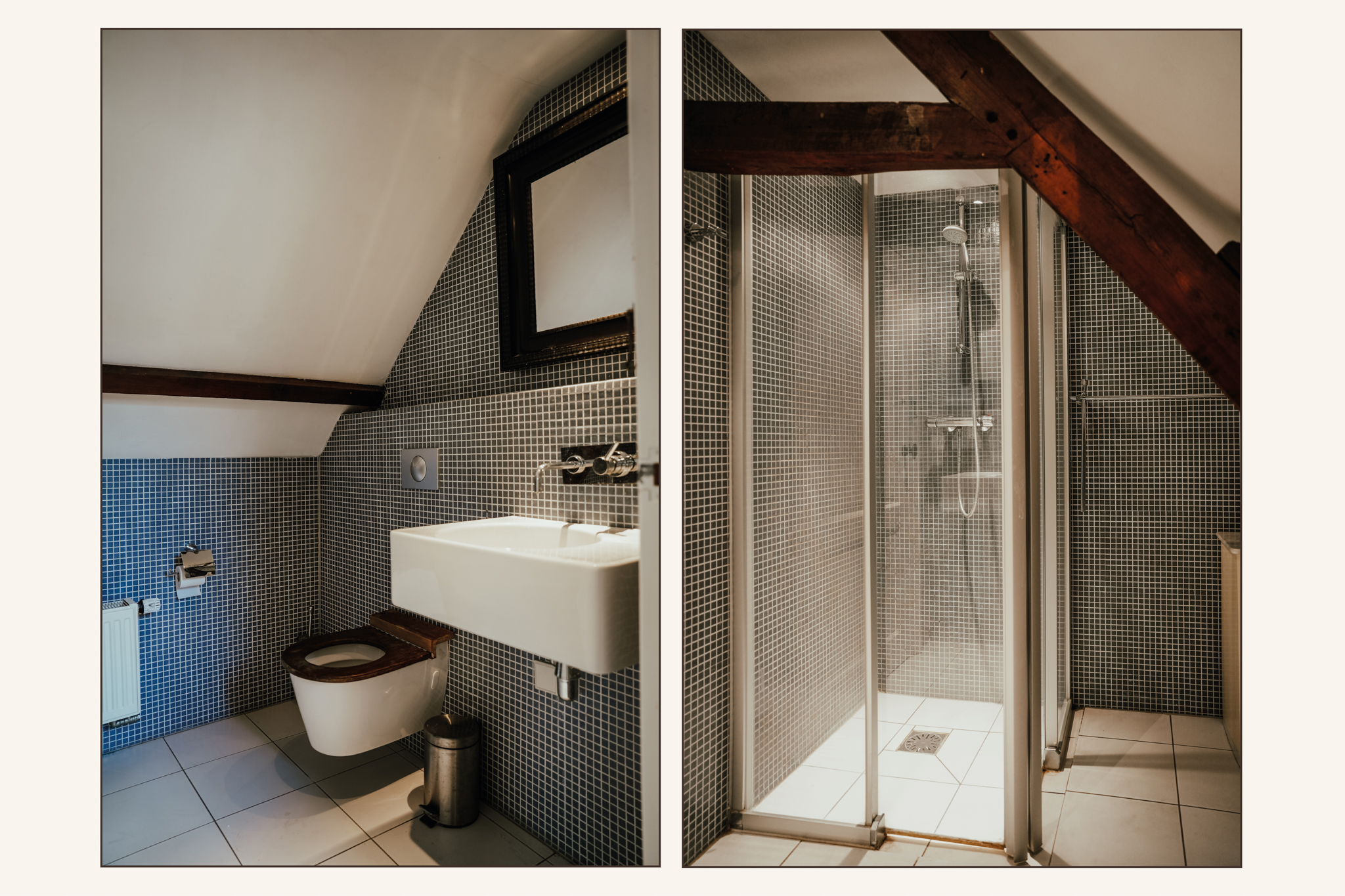 Onder de uitstekend geïsoleerde kap van het achterhuis liggen twee volwaardige slaapkamers met airco en een 4e badkamer. De slaapkamers zijn door de dakvensters en dakkapel aan de achterzijde heerlijk licht. De spantconstructie is fraai in het zicht gebleven en op verschillende plaatsen is vaste kastruimte gerealiseerd.