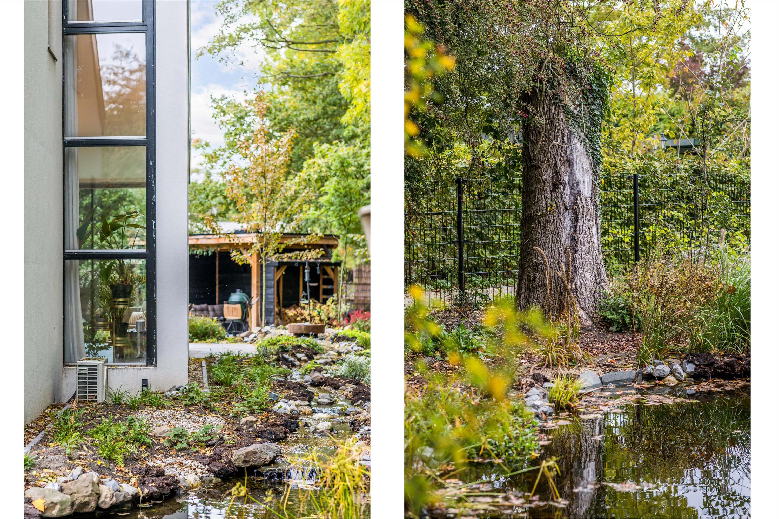 Charmante tuingerichte zitkamer met knusse open haard en leuke doorkijkjes naar zowel de voortuin als de achtertuin met beekje. Vanuit de woonkeuken is er toegang tot een ruimte tv-kamer aan de voorzijde. Eveneens vanuit de keuken is er een aparte gang met toilet voorzien van fonteintje en toegang tot de master bedroom met walk-in closet en eigen luxe badkamer met uitzicht op de tuin en voorzien van een vrijstaand ligbad, inloopdouche en wastafelmeubel. Voorts is er een ruime waskamer/mud room met veel bergruimte waar ook bijvoorbeeld een fitnesskamer van de maken is. In deze ruimte is de opstelling van de installaties, waaronder de warmtepomp, mooi weggewerkt.