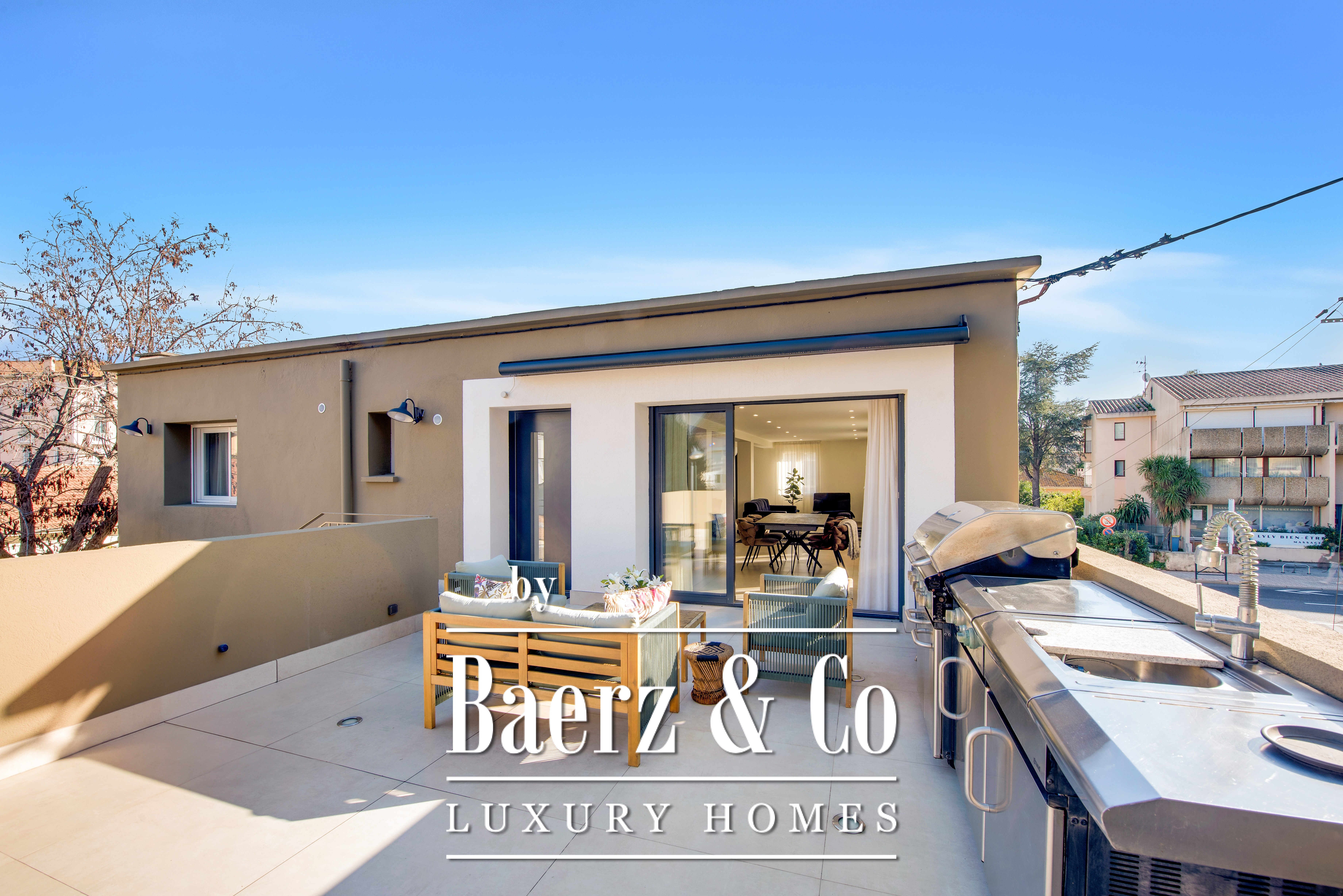 Appartement Saint-Raphaël Town Centre bevindt zich in het hart van de stad en biedt een zeldzame combinatie van karaktervolle renovatie en ruimte. Deze gerenoveerde woning beslaat 125 m² en beschikt over twee slaapkamers met en-suite badkamer, elk met een eigen doucheruimte of badkamer, tot in detail verzorgd. De woonkamer is open en licht, gericht op het zuiden voor optimaal daglicht, en ademt een sfeer die rustig mee verandert van ochtendgloren tot avondzon. Een terras van 28 m² vergroot het leefoppervlak naar buiten en vangt de zon van de Côte d’Azur, ideaal voor zowel stille momenten als gezellige bijeenkomsten.