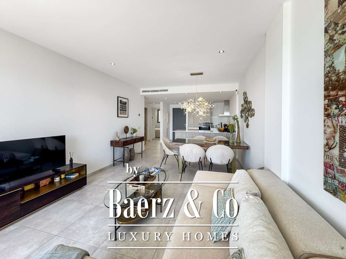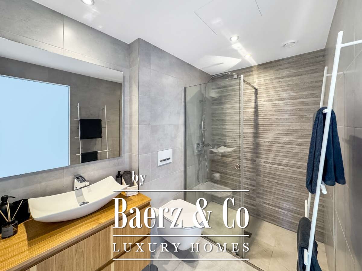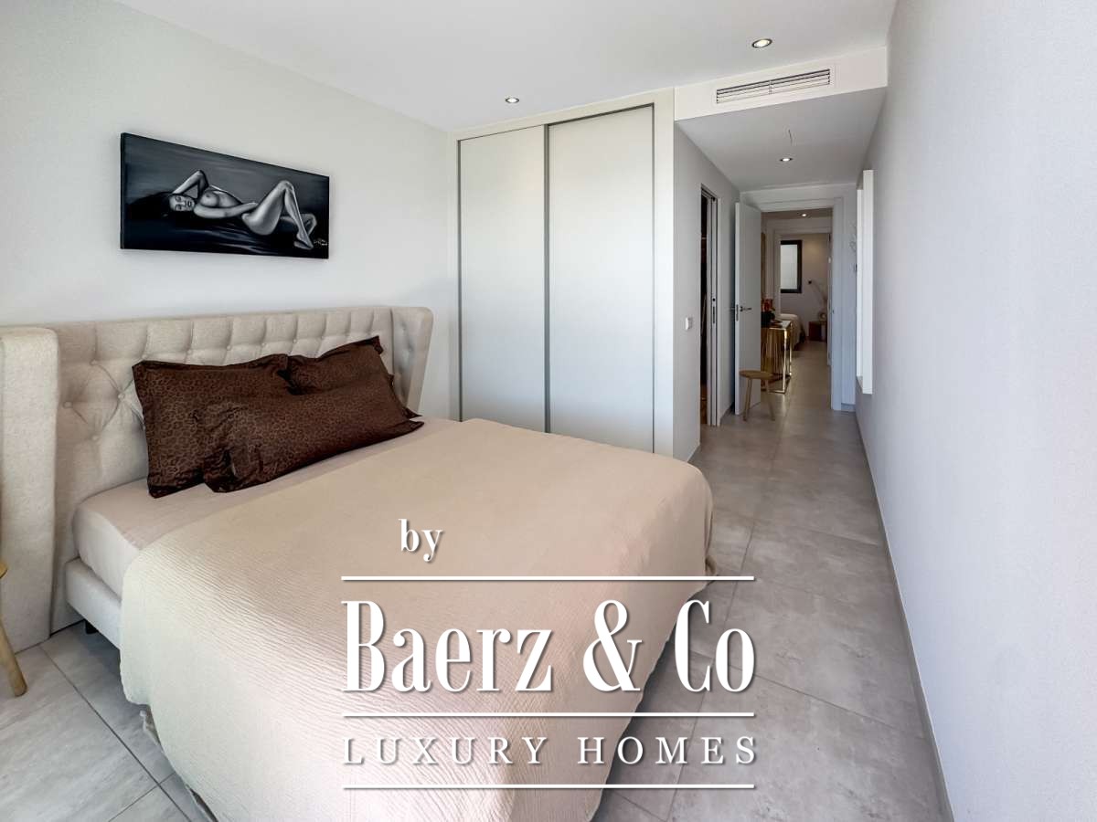 Het appartement beschikt over ongeveer 80 m² woonruimte, met twee slaapkamers en twee badkamers, ideaal voor koppels, gezinnen of gasten. De open woon- en eetruimte loopt naadloos over in het terras en de privé-tuin en biedt direct zeezicht. Het appartement wordt volledig gemeubileerd verkocht en is direct te betrekken. Een parkeerplaats in de ondergrondse garage en een berging maken het compleet.De buitenruimte en afsluiting