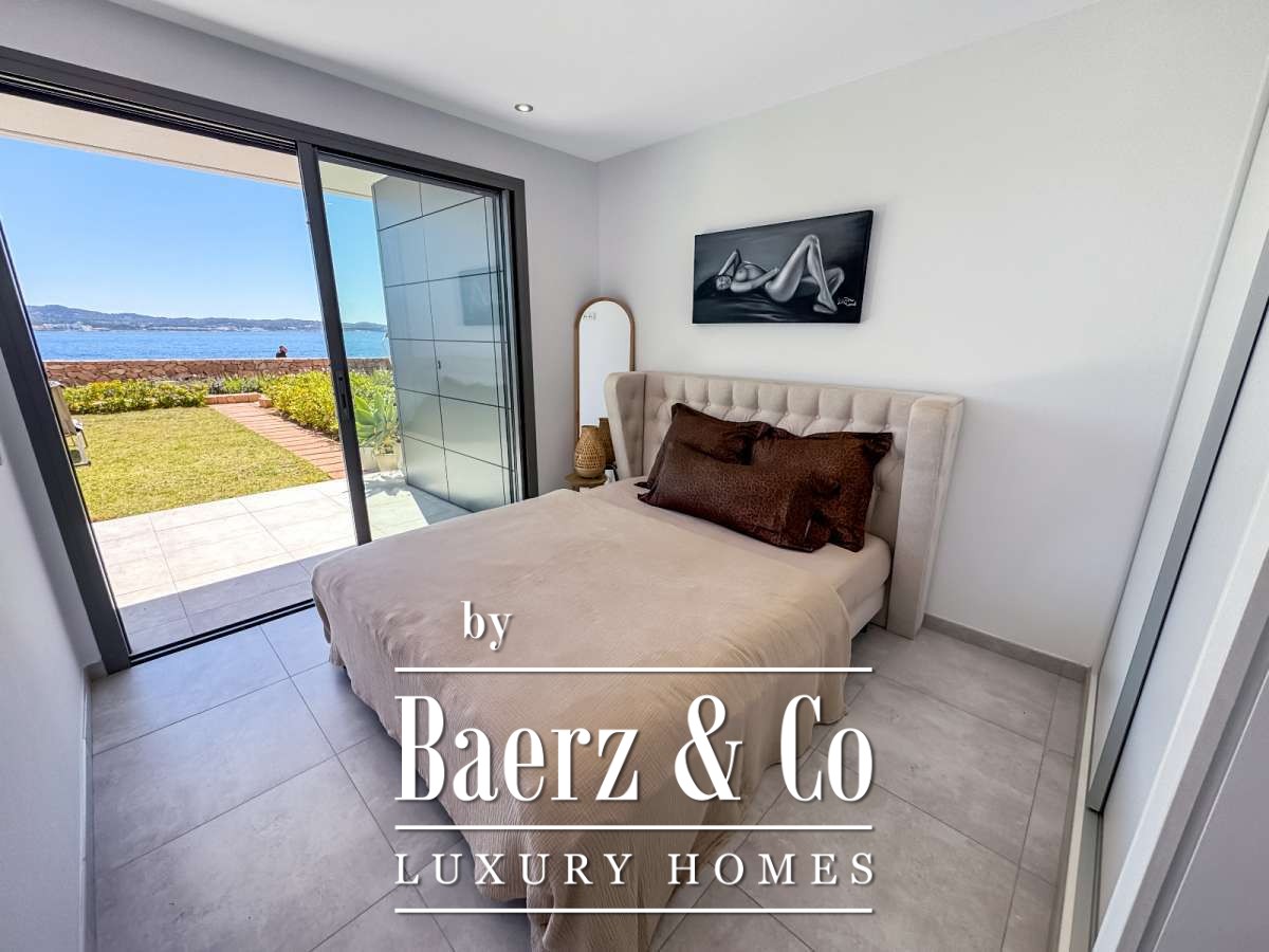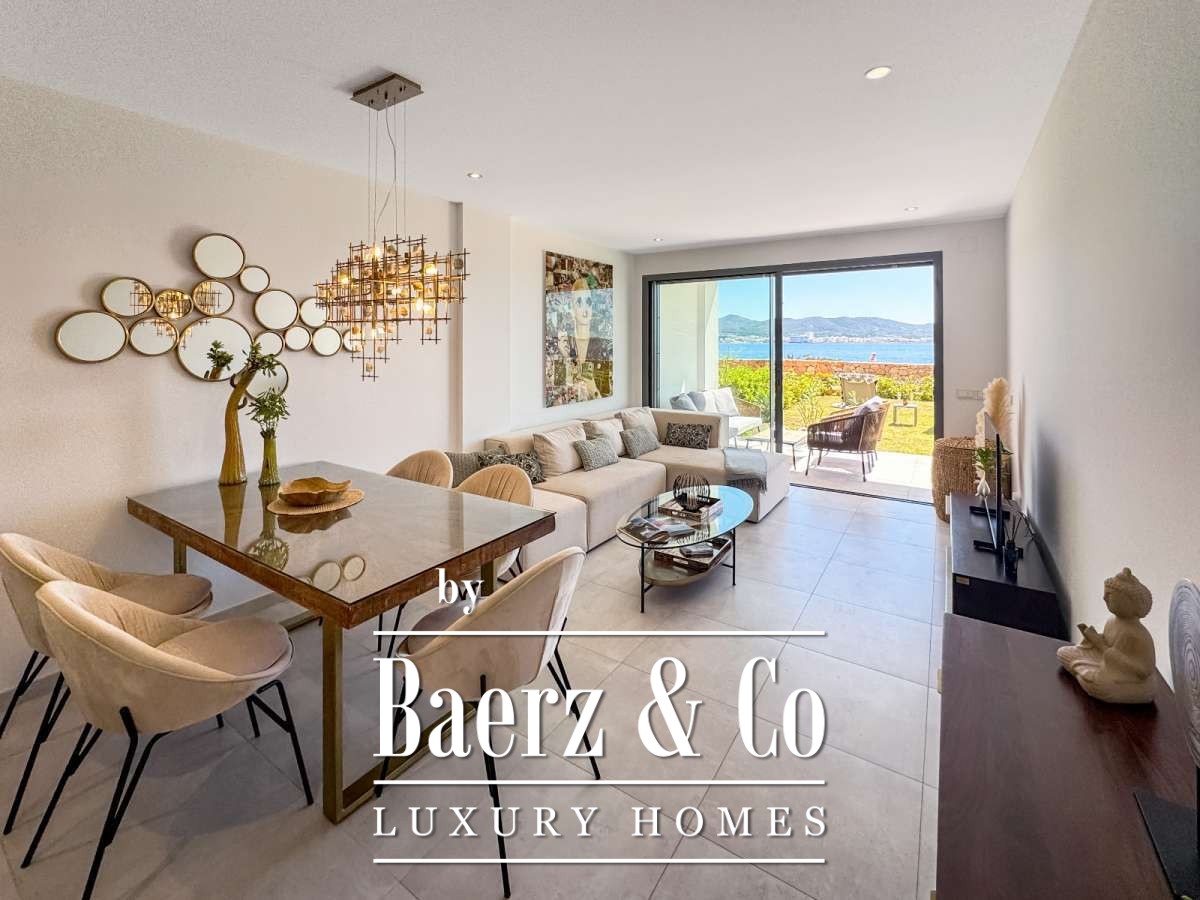 Dit uitzonderlijke appartement ligt in eerste lijn aan zee nabij de prachtige Cala Gració, bekend om haar kristalheldere water en ontspannen sfeer. Restaurants, cafés en wandelroutes langs de kust liggen op korte afstand. Het centrum van San Antonio is snel bereikbaar. Vanaf het terras en de tuin kunt u de mooiste zonsondergangen van het eiland bewonderen, die elke avond bijzonder maken.Het appartement en de indeling