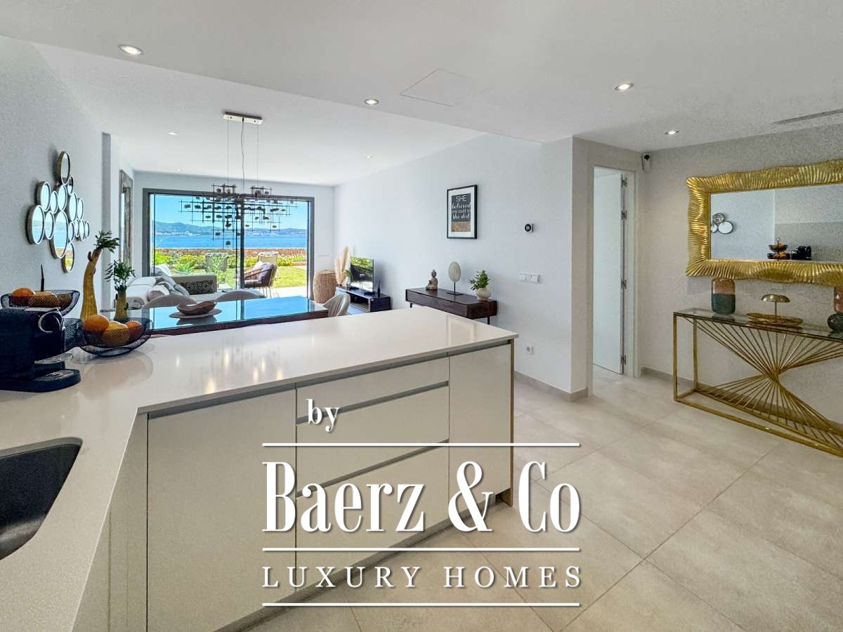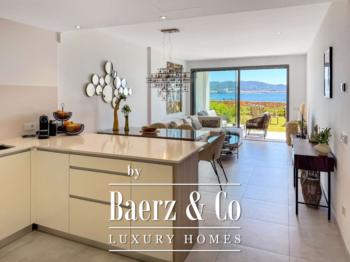 De privétuin en het terras bieden een ongehinderd uitzicht op de Middellandse Zee en zijn de perfecte plek om de meest spectaculaire zonsondergangen van Ibiza te beleven. Bovendien is er een gemeenschappelijk zwembad beschikbaar. Dit first-line appartement nabij Cala Gració is ideaal als luxe vakantiewoning, investering of permanente residentie en biedt de ultieme Ibiza-levensstijl.