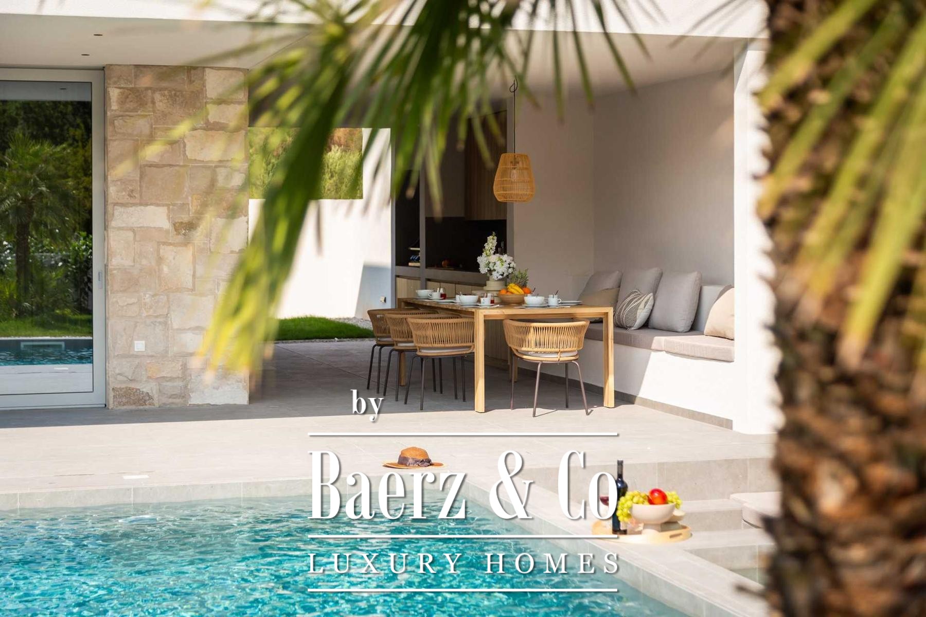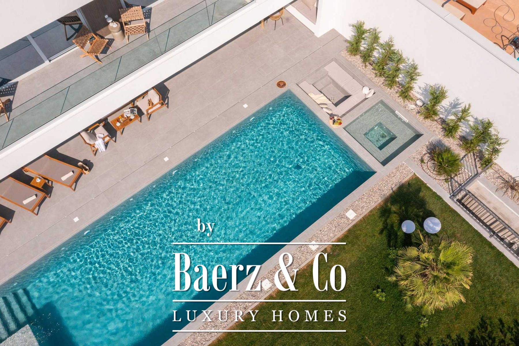 Op de eerste verdieping bieden vier slaapkamers elk een eigen en-suite badkamer, waardoor persoonlijke ruimte en rust gewaarborgd zijn. Designaccenten gaan moeiteloos samen met hoogwaardige materialen, wat zowel comfort als helderheid uitstraalt. Buiten is de tuin volledig omheind voor gemoedsrust en voorzien van een kinderspeelplaats, jeu-de-boulesbaan en privéparkeerplaats.